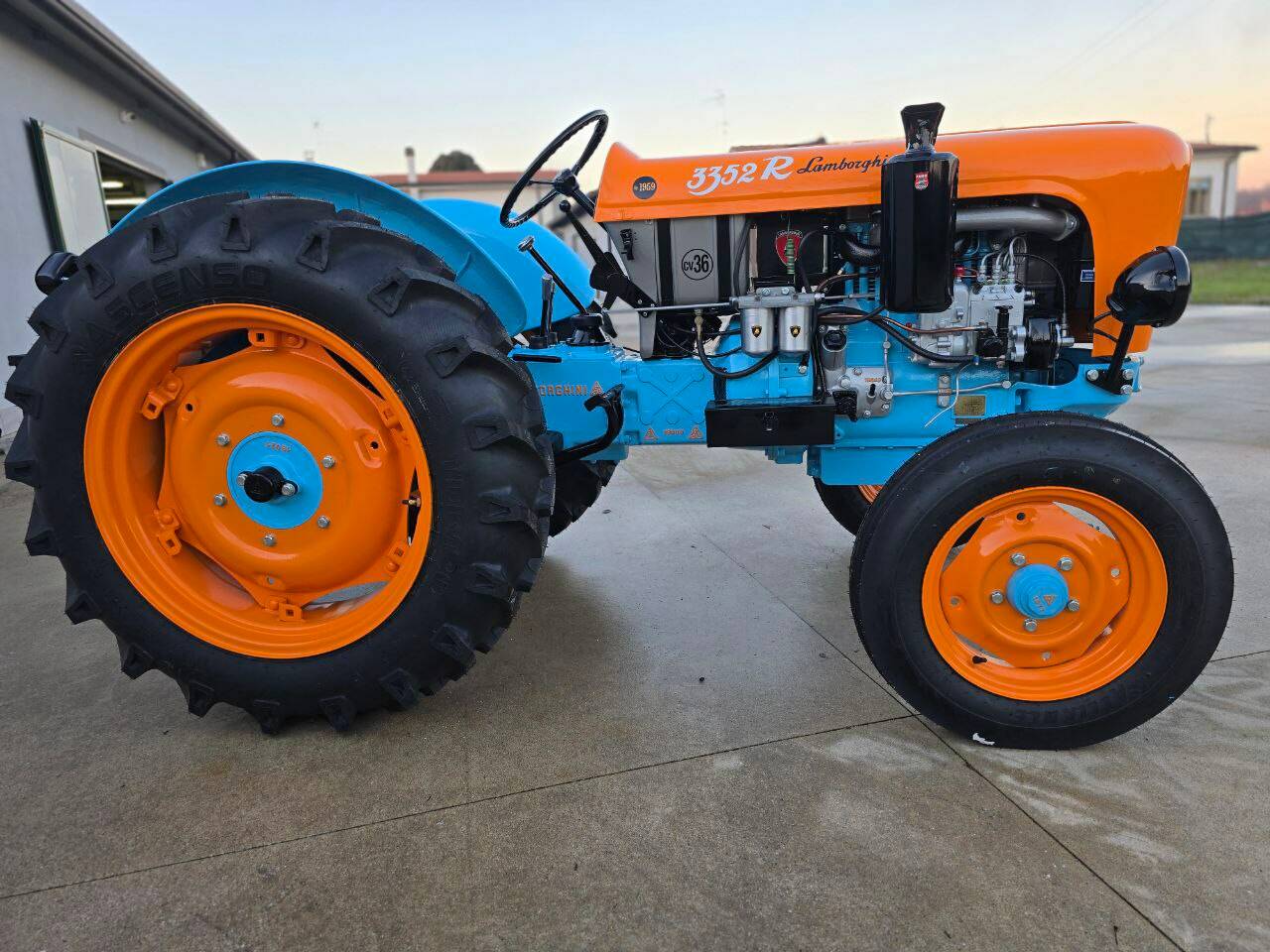 Die Geschichte der Lamborghini-Traktoren ist untrennbar mit der Person Ferruccio Lamborghini verbunden, der 1948 nach dem Krieg zunächst Landmaschinen entwickelte, bevor sein Name später zur Ikone im Sportwagenbau wurde. Noch vor Gründung von Automobili Lamborghini (1963) legte Lamborghini Trattori mit Modellen wie dem 3352 R die Basis für innovative, robuste und zugleich technisch fortschrittliche Traktoren, die Italien nach dem Krieg prägten. Laut einschlägiger Literatur wurden nur wenige Exemplare des 3352 R gebaut – der Doppelsitz war dabei eine Besonderheit, die nur in geringer Stückzahl produziert wurde. Charakteristisch für die Traktoren dieser Ära ist der eigenständige, technisch anspruchsvolle Dreizylinder-Dieselmotor mit Luftkühlung und die robuste Portalachsen-Konstruktion, die im landwirtschaftlichen Einsatz große Flexibilität bot. Die Farbkombination aus kräftigem Orange und Blau gilt als zeittypisch und verweist zugleich auf den Anspruch, Funktionalität mit Wiedererkennbarkeit zu verbinden.