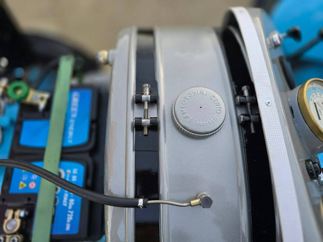 Dieses Exemplar wurde laut Angaben 2025 bei „Lamborghini Tractor Italia“ von Grund auf restauriert. Angaben zum Erstbesitz oder Vorbesitzern liegen aktuell nicht vor, das Fahrzeug wurde jedoch im Rahmen der Restaurierung umfassend dokumentiert und auf Originalität geprüft. Die geringe Produktionszahl des Typs und die originale Doppelsitzausführung unterstreichen den hohen Sammlerwert.