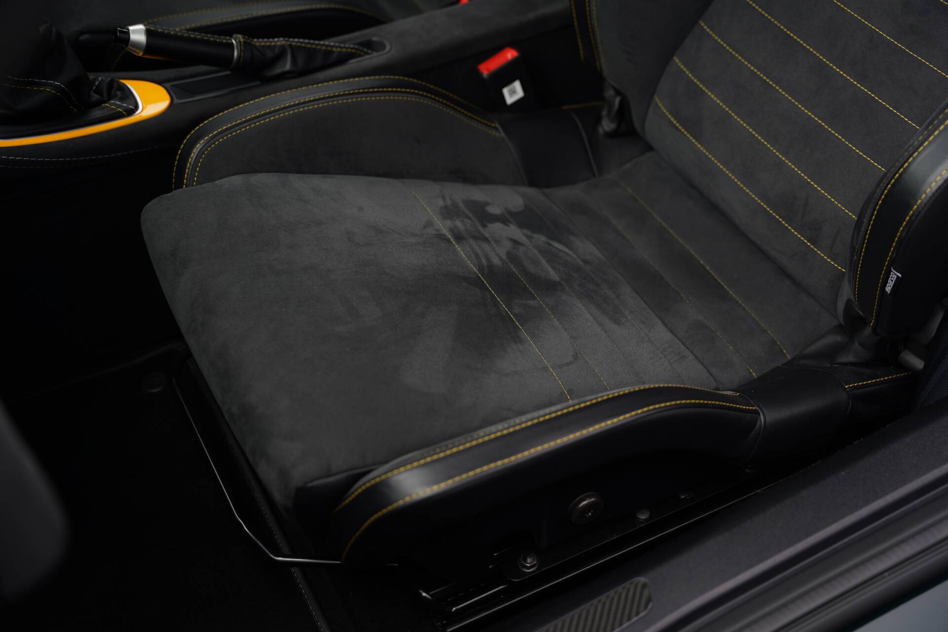 The interior is completed in black alcantara, with yellow and silver contrasting twin stitch, as well as leather bolsters to the seats. An alcantara steering wheel continues the theme. The yellow highlights continue with a full yellow interior colour pack. The seating configuration in this Evora is 2+0. Standard specification includes cruise control, heated seats, switchable exhaust valve, Sport and Race modes, Alpine touchscreen infotainment system, air conditioning and satelite navigation.