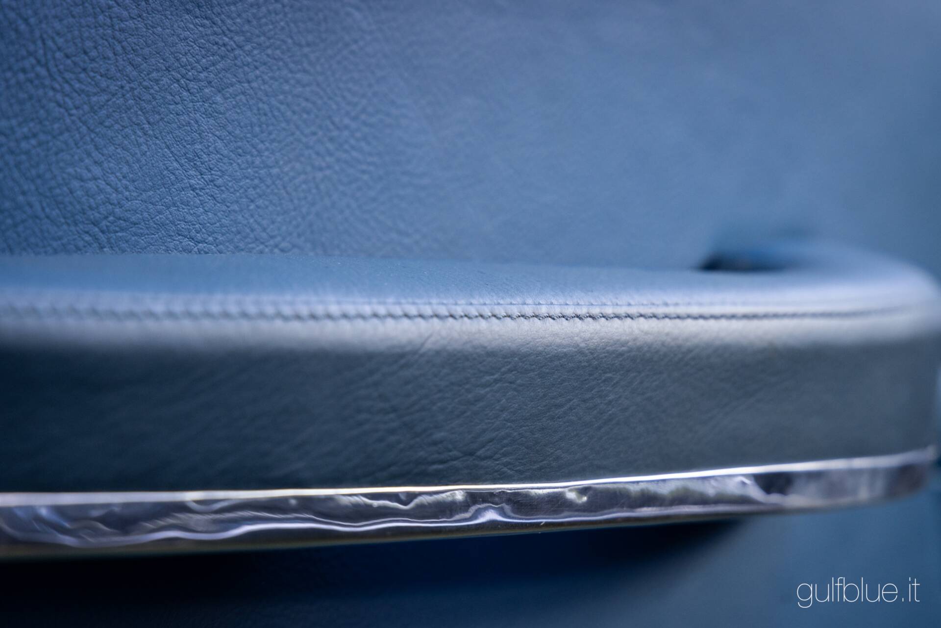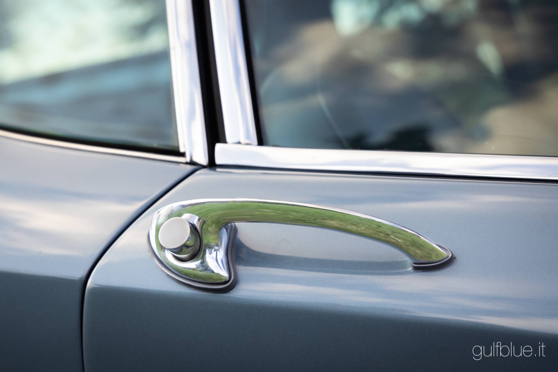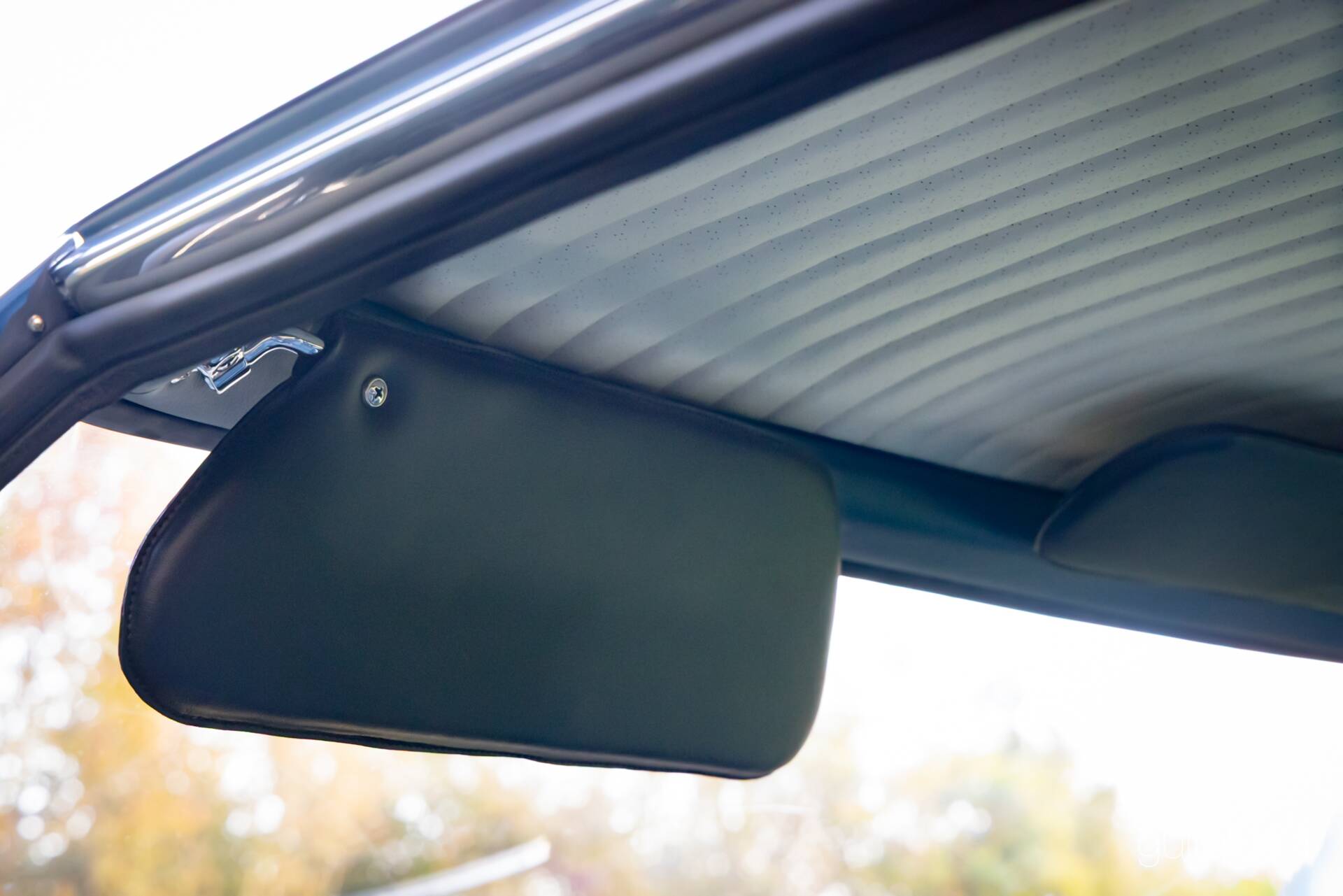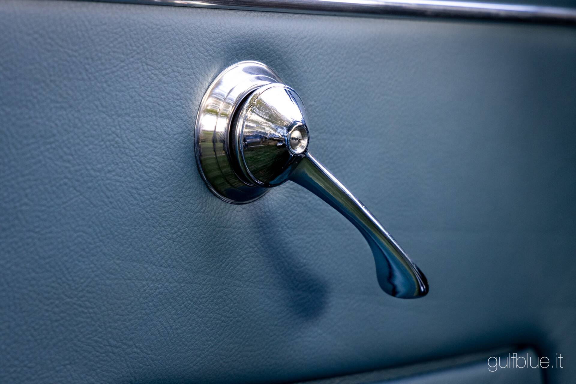 The light blue color combined with the blue leather interior is very distinctive and lends great personality to an already impressive car. Borrani spoked wheels mounted on Pirelli P400 tires frame this Mistral 4000.