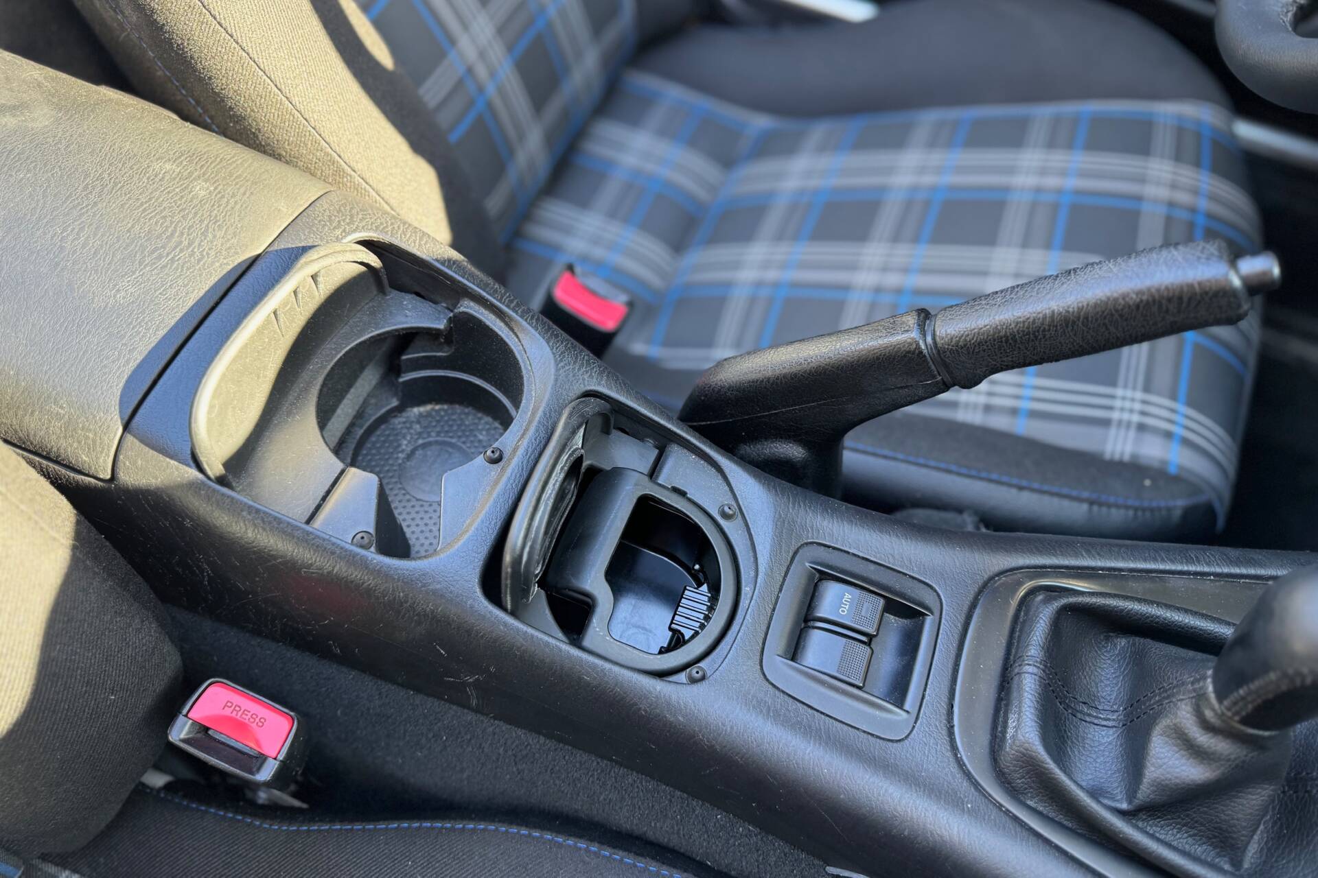 Comfortable seats with tartan upholstery.