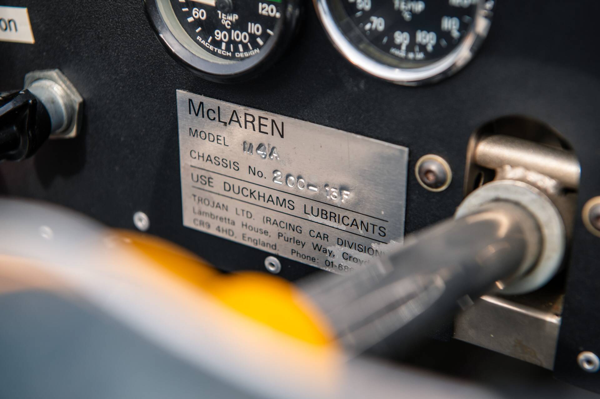 Volgens het officiële Trojan-verificatiecertificaat werd deze auto, chassis 200-13, op 17 november 1967 nieuw geleverd aan The Chequered Flag Racing Team, een van de meest actieve en gerespecteerde privéteams van Groot-Brittannië uit de jaren zestig. Er zijn maar weinig M4A's gebouwd en nog minder in deze uitzonderlijke staat overgebleven. De volledige restauratie van deze wagen is wat dit exemplaar zich echt onderscheid van de rest. Zeer weinig historische raceauto's worden tot dit niveau teruggebracht. De M4A is volgens de hoogste normen herbouwd, waarbij kosten noch moeite zijn gespaard om precisie, prestaties en betrouwbaarheid te garanderen.