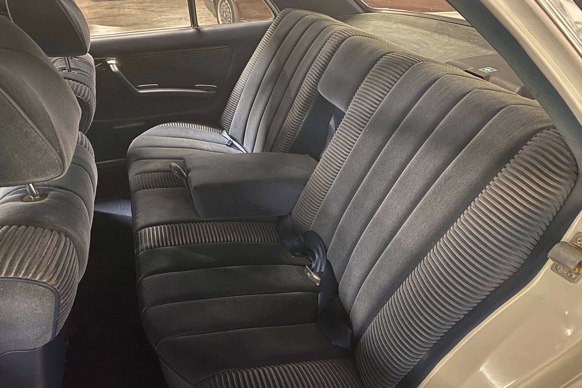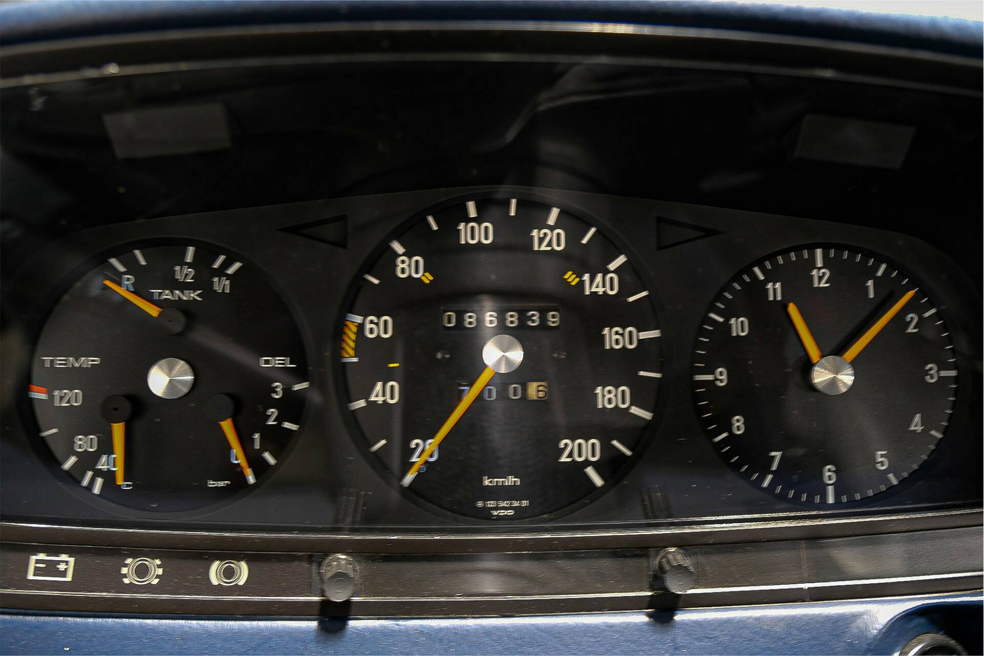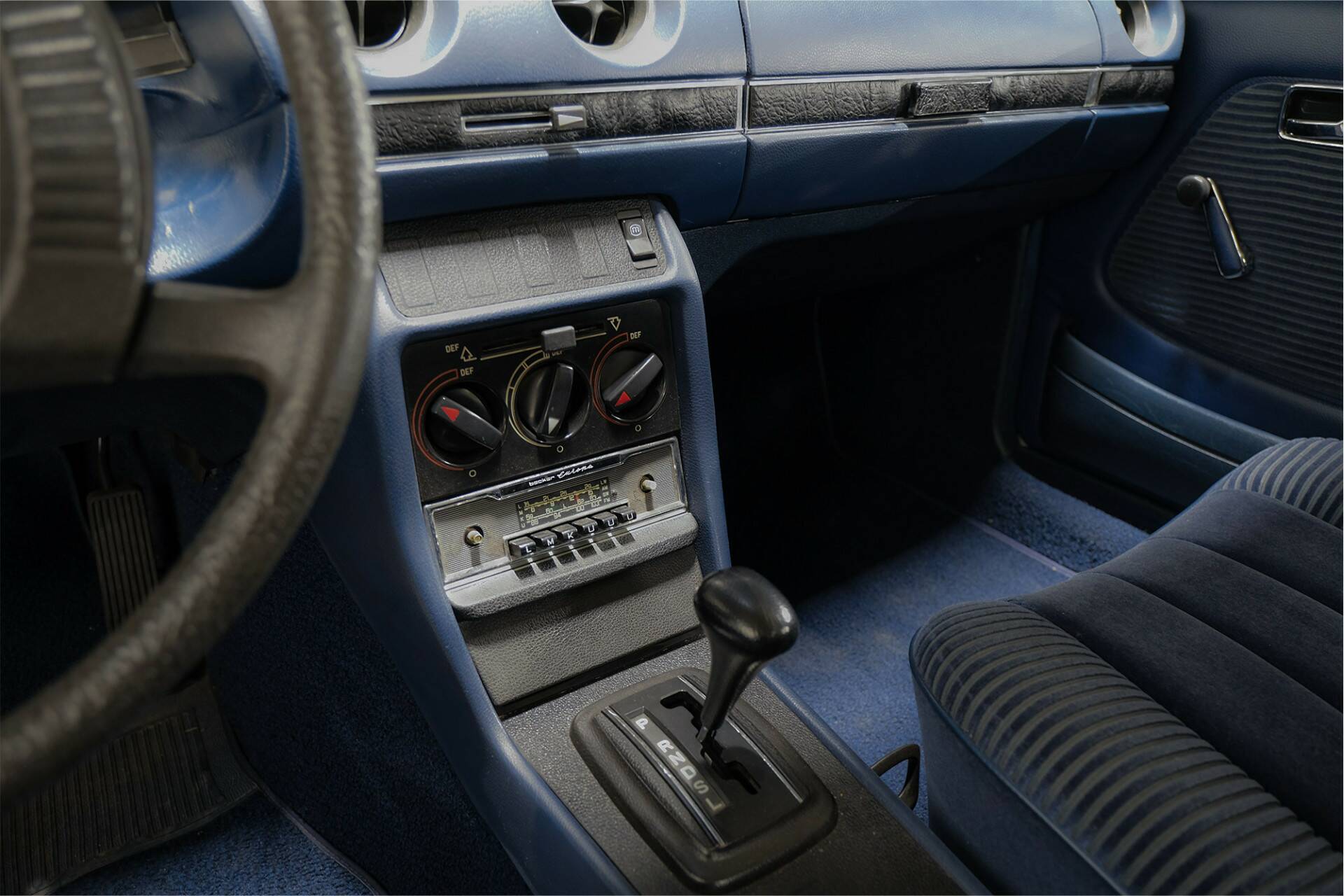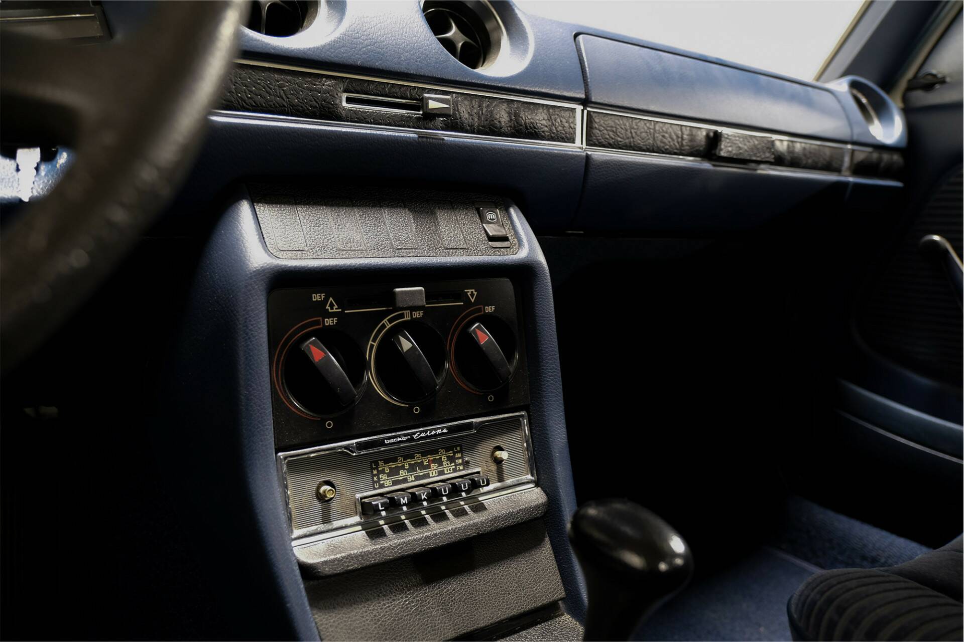 Meist noch in der ersten Farbe. Das blaue Samt-Interieur ist in einem Top-Zustand. Das Schiebedach, die Armlehnen, der rechte Außenspiegel, Leichtmetallräder und das Original Becker Audio runden die Party ab. Fährt und lenkt so, wie es sein sollte.