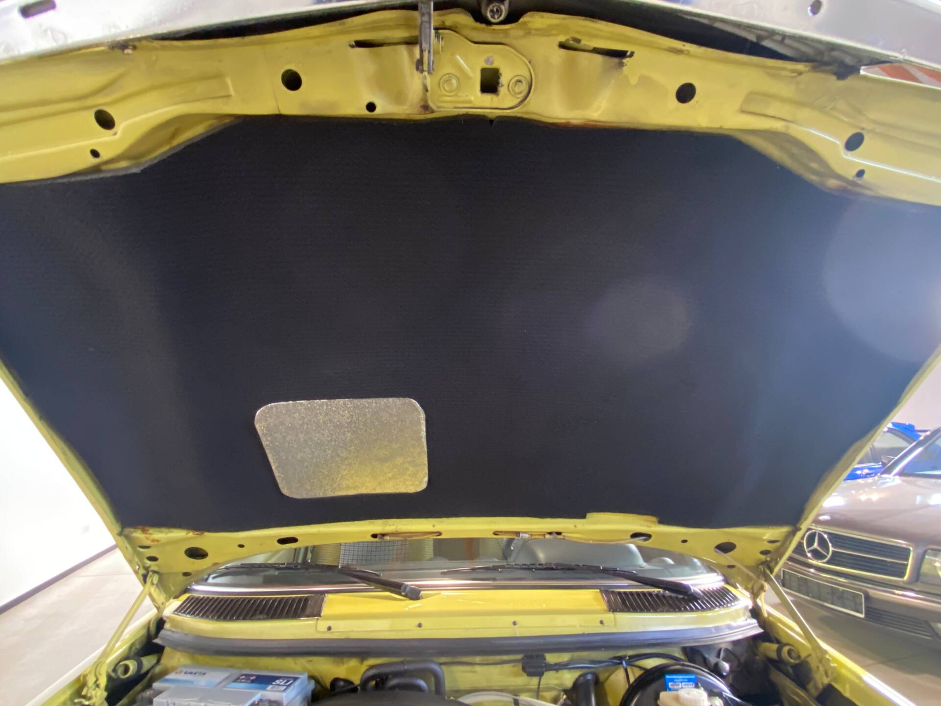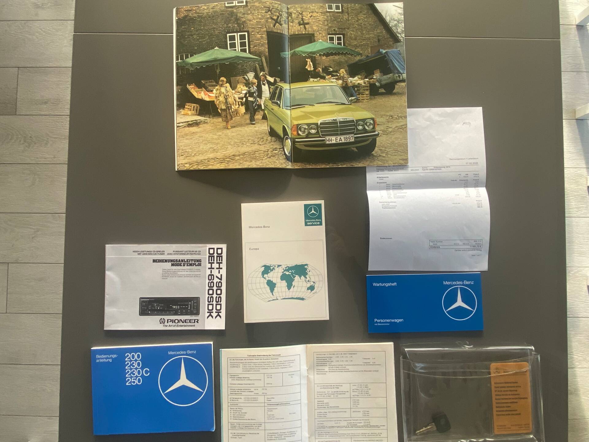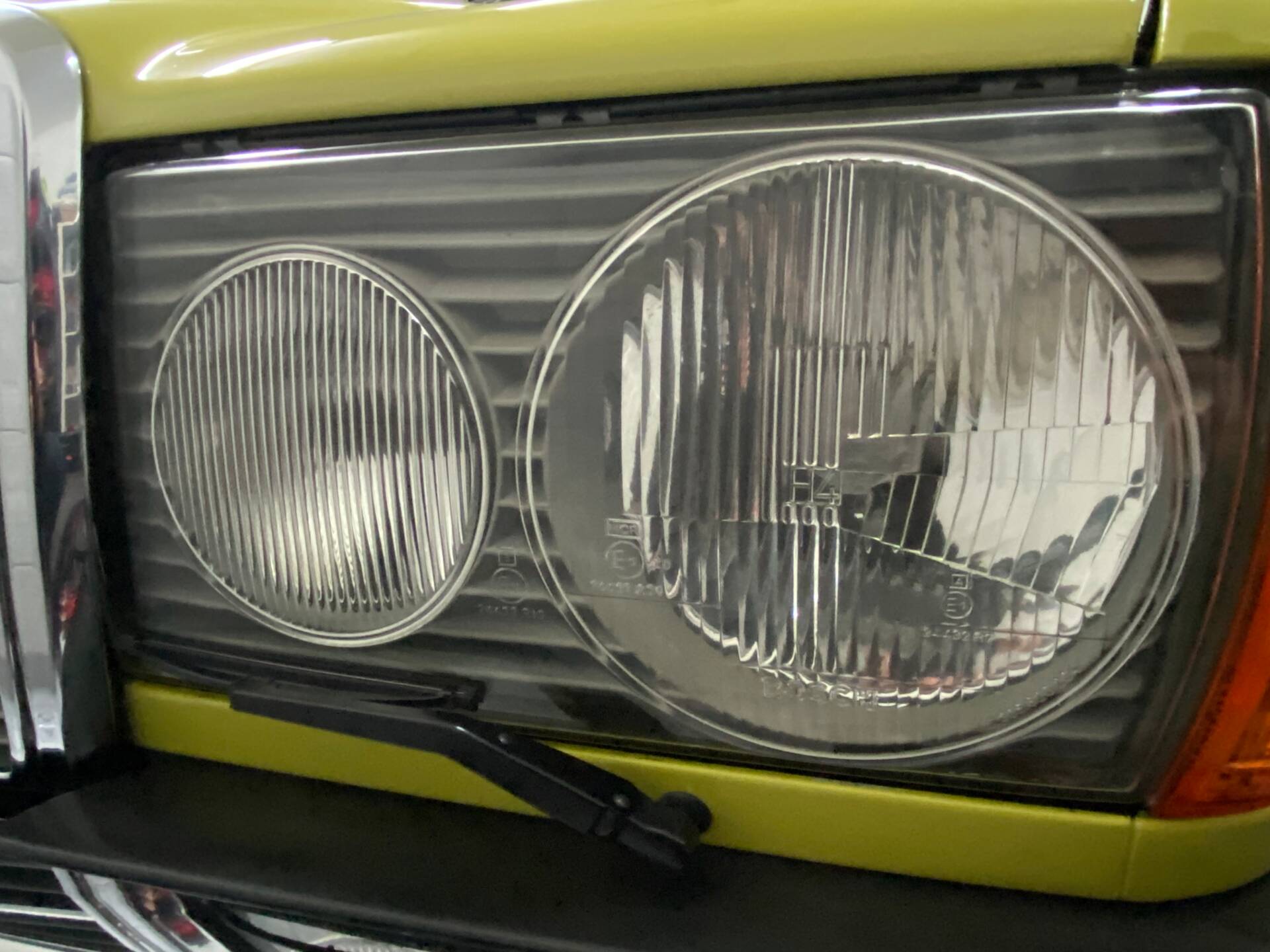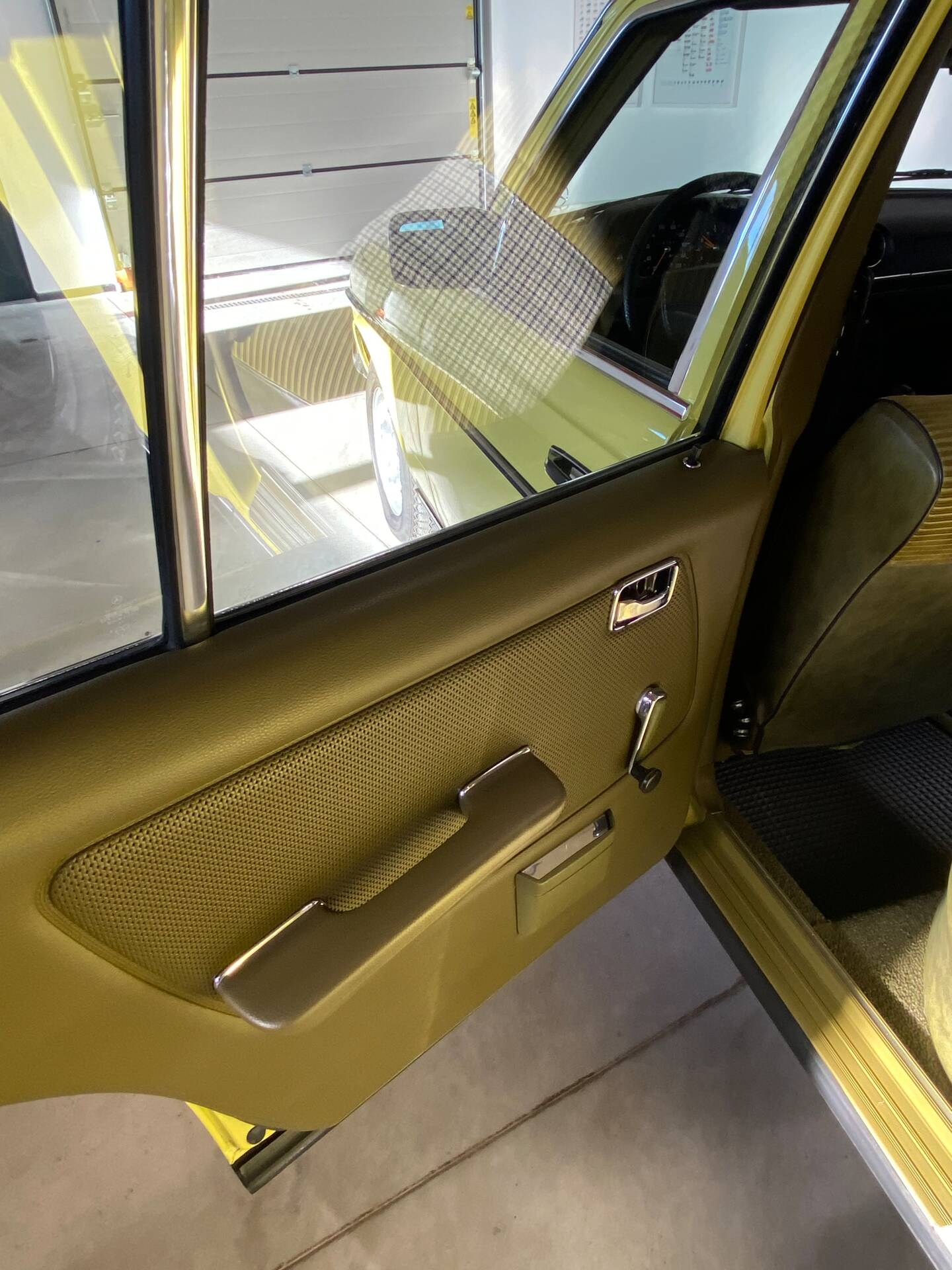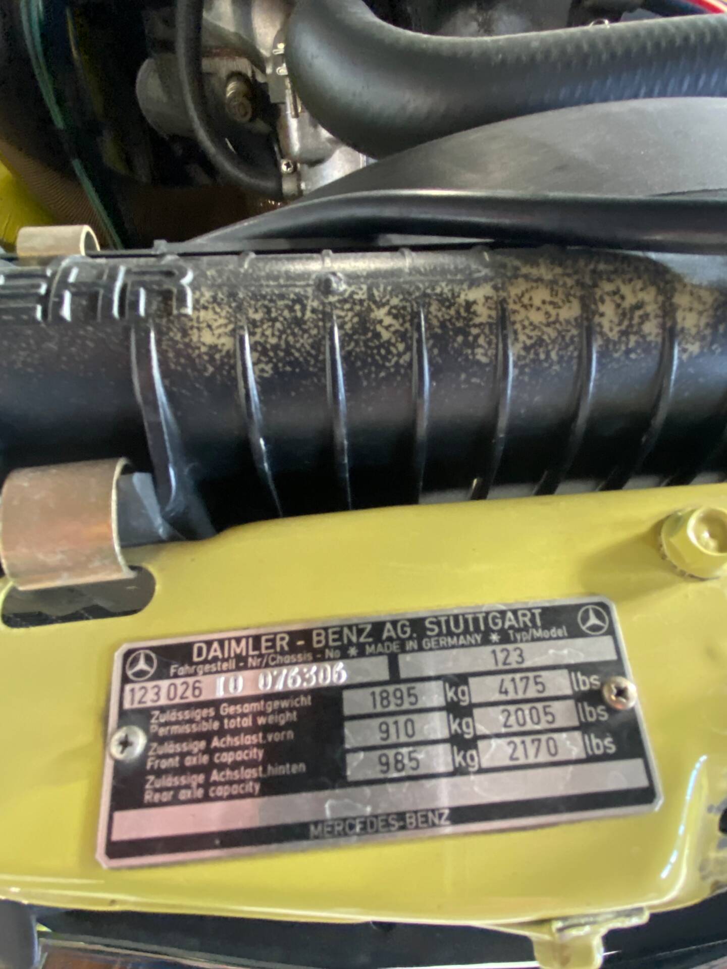Mercedes-Benz W123 250 R6. Farbe: Mimosengelb 618. Originalkilometerstand: 16.700 km. Das Fahrzeug hatte seit seiner Erstzulassung nur einen Besitzer. Es fährt noch mit den Originalreifen, die ich bewusst nicht gegen neue ausgetauscht habe. Motor und Getriebe laufen wie neu. Der Innenraum des Mercedes ist neuwertig und riecht auch so. Die Kilometerzählernadeln sind orange, wie bei einem Neuwagen. Lenkrad, Schalthebel und Schaltgestänge sind intakt. Das Armaturenbrett hat noch seine matte Oberfläche. Alle Chromteile sind wie neu. Die inneren Scheinwerferblenden sind nicht matt, sondern ebenfalls neuwertig. Alle verzinkten Teile im Motorraum haben noch ihre originale gelbe Verzinkung. Die originalen Sitzbezüge sind seit der Erstzulassung montiert. Bis auf den vorderen linken Kotflügel befindet sich die gesamte Karosserie im Originallack. Es gibt keine Kratzer oder Dellen an der Karosserie. Grüne Werksverglasung. Weitere Fotos können per WhatsApp gesendet werden. Das Fahrzeug ist zulassungsbereit. Der Käufer ist von der Stempelsteuer befreit.