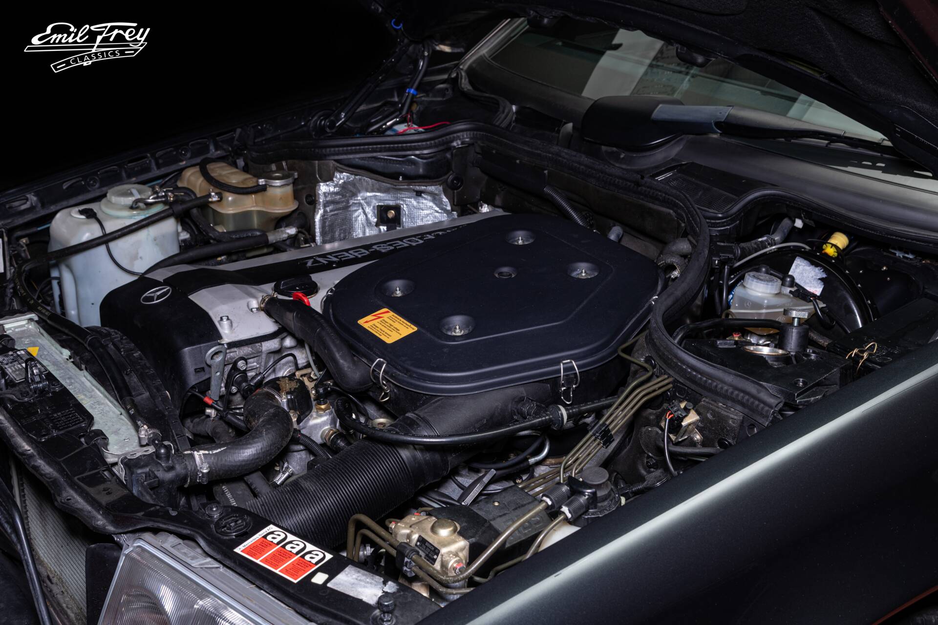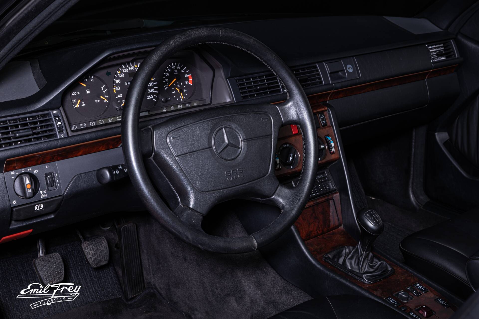 Der 300 CE-24 kam mit einem Sechszylinder mit 24 Ventilen. Der Motor mit 2 Nockenwellen hat eine sportive Leistungscharakteristik, er mag hohe Drehzahlen. 220 PS sorgen in Verbindung mit dem seltenen 5-Gang-Sportgetriebe mit hinten links liegendem 1. Gang für ein jederzeit souveränes Fahrgefühl.