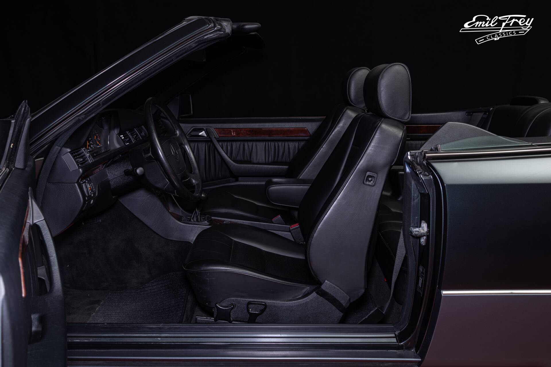 Besonders elegant ist die Cabrio-Variante A124. Die Entwicklung basiert auf dem Coupé C124, über 1’000 Teile wurden modifiziert. Im Ergebnis bietet diese Modellvariante die unerschütterliche Solidität und Eleganz eines klassischen Mercedes in Verbindung mit 4 vollwertigen Sitzplätzen unter freiem Himmel. Das Verdeck öffnet vollautomatisch auf Knopfdruck.