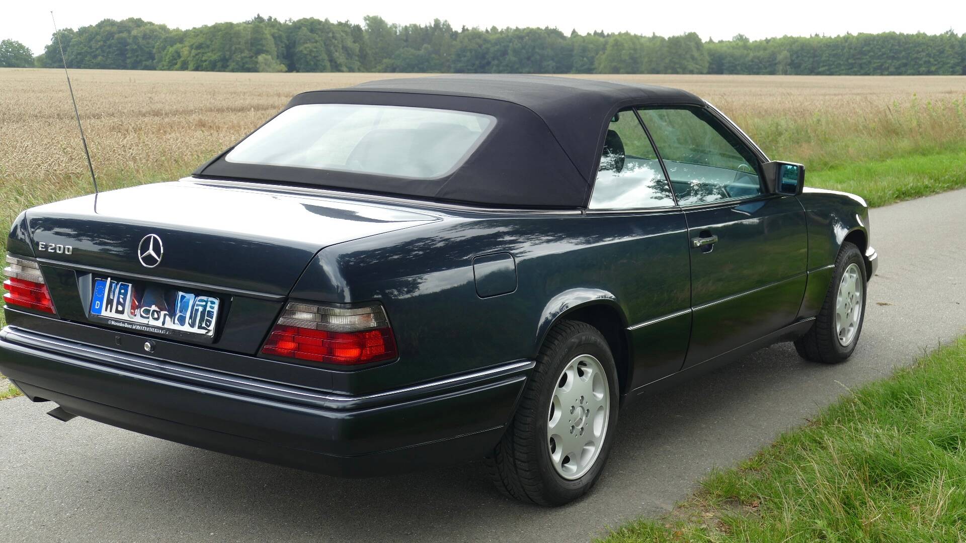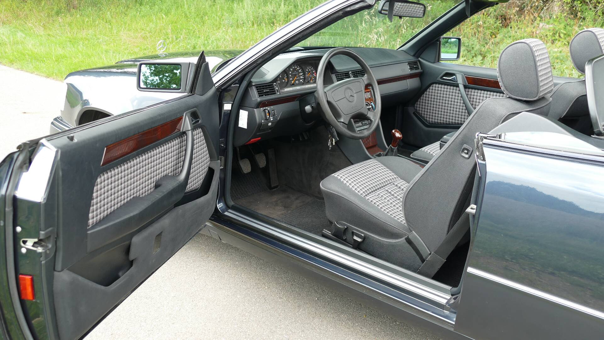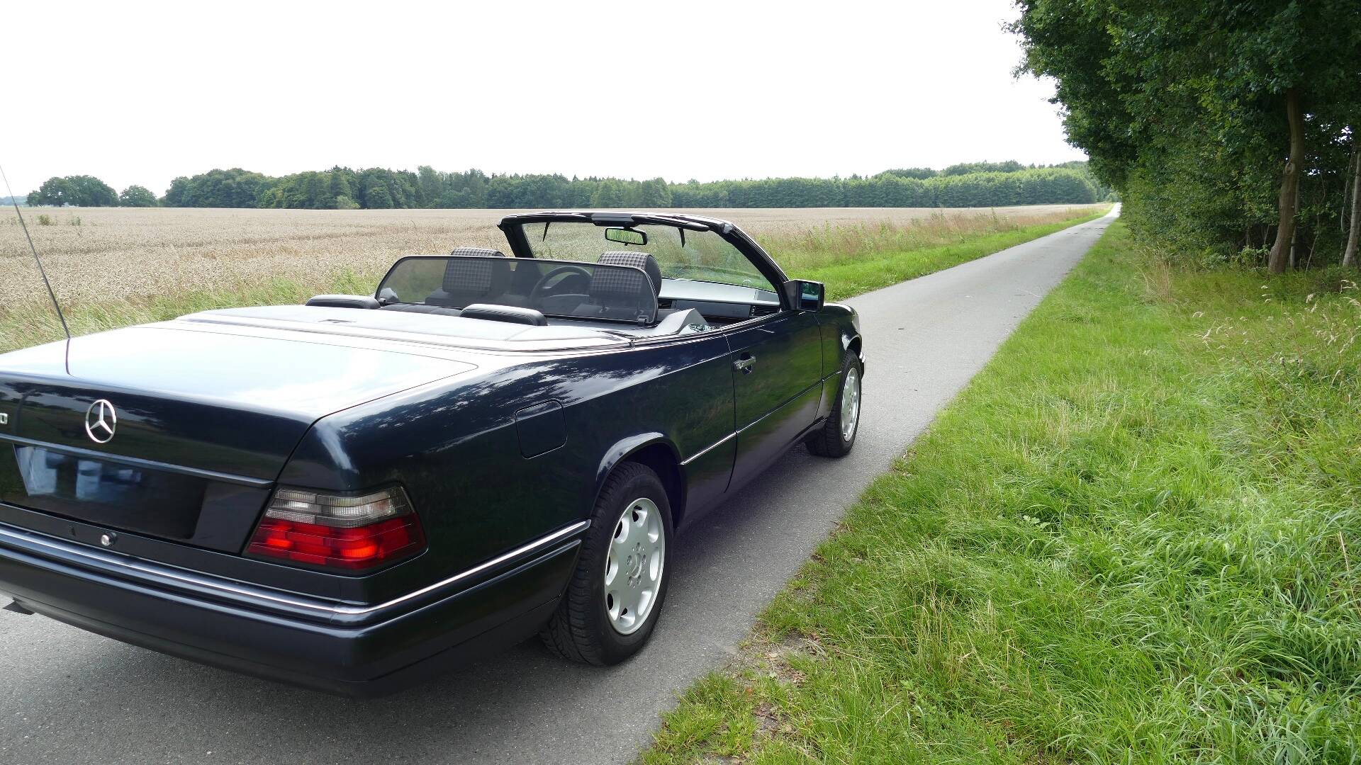 Sehr gepflegtes Liebhaber-Fahrzeug. Motor, Getriebe, Karosserie und Lack befinden sich in einwandfreiem Zustand, ABS, Servolenkung, Airbag (Fahrer + Beifahrer), Edelholzdekor, elektr. Fensterheber (v+h) + Gurtbringer + re Aussenspiegel elektrisch, Zentralverriegelung, Windschott, Edelholzbox zwischen Vordersitzen abschließbar, Drehzahlmesser, Make up-Spiegel + Türausstieg beleuchtet, Armlehne Fahrersitz. Das Fahrzeug wurde stets nur im Sommer bewegt und stand in der Zwischenzeit in einer abgeschlossenen Garage, was sowohl innen wie außen sehr gut sichtbar ist, es gibt keine sonnengegerbte Farbveränderungen, das gesamte Fahrzeug befindet sich im Originalzustand. Da ich kein Sammler bin, möchte ich das schöne W124er Cabriolet hiermit anbieten. Im Juli dieses Jahres sind die zeitlichen Voraussetzungen für die Begutachtung zur H-Nummernschildzuerkennung gegeben, das dürfte aufgrund der Vorlage des einwandfreien Gesamtzustandes des Fahrzeuges eher eine Formsache sein (über nicht verifizierte Zustände mache ich grundsätzlich keine Aussagen, in diesem Fall soll es eine Ausnahme sein).