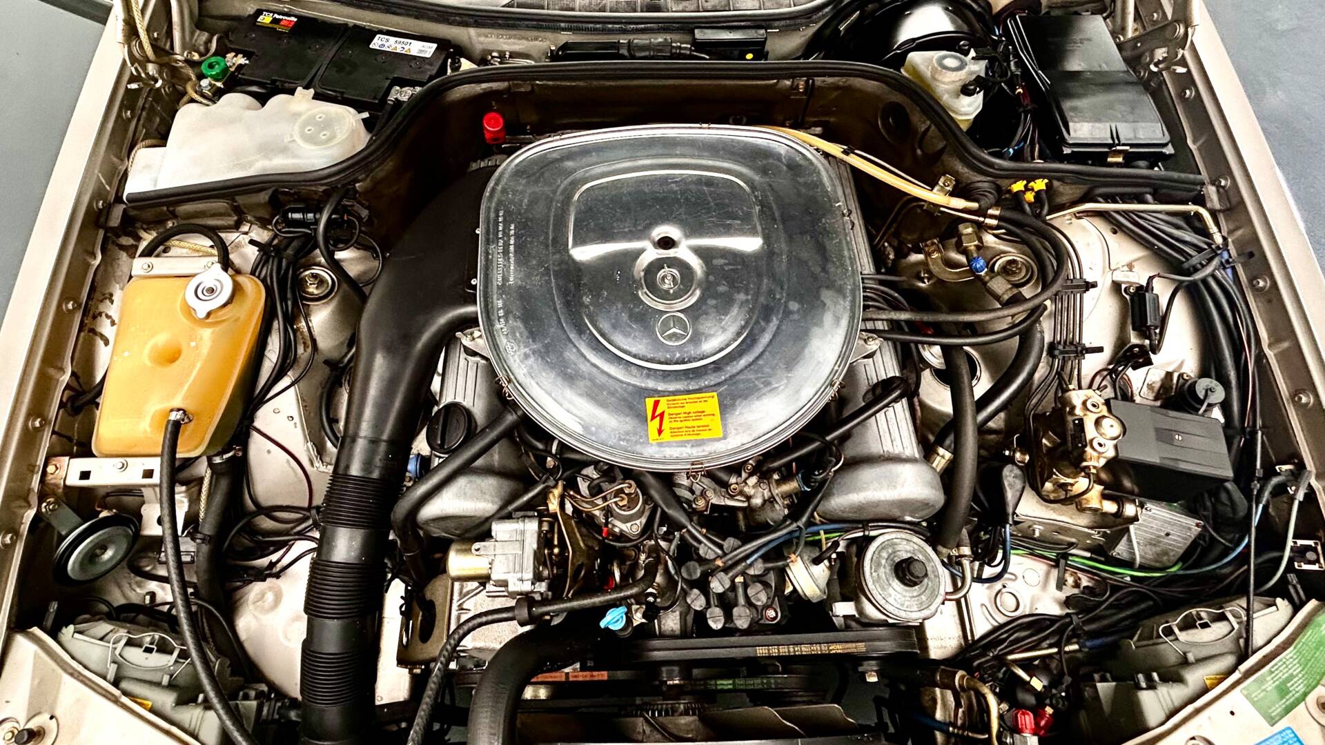 Das ausgefüllte Serviceheft belegt den immer noch sehr tiefen Kilometerstand von rund 86'000, wobei der Mercedes vor allem in den letzten 25 Jahren nur noch wenig gefahren wurde. Die vorhandenen Rechnungen reichen jedoch bis ins Jahr 2012 zurück, wobei belegt ist, dass der SEC auch in dieser Zeit vorgeführt und instandgehalten wurde.