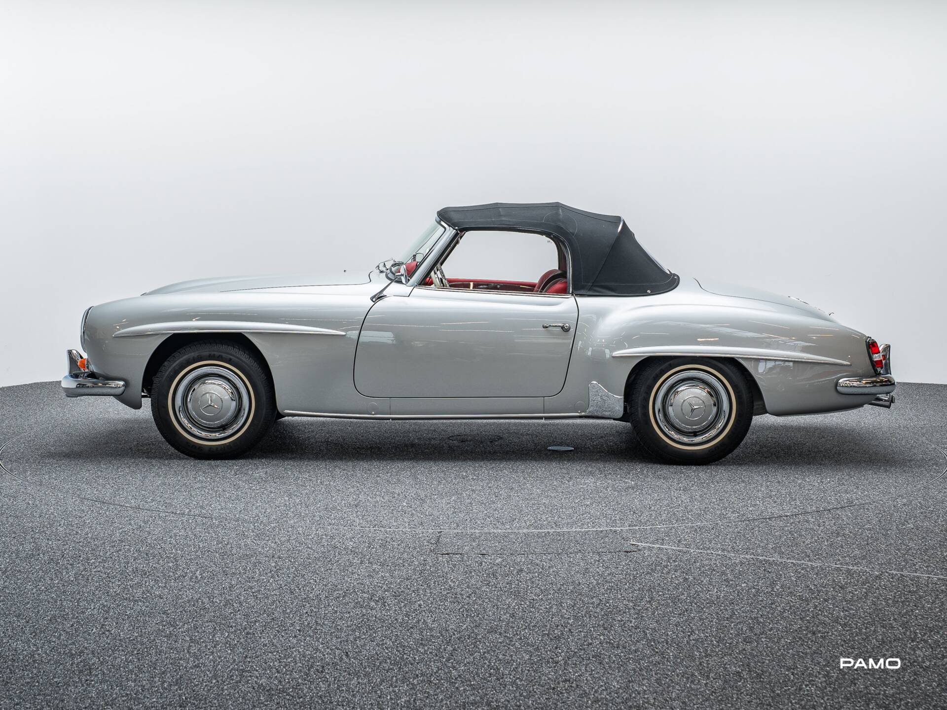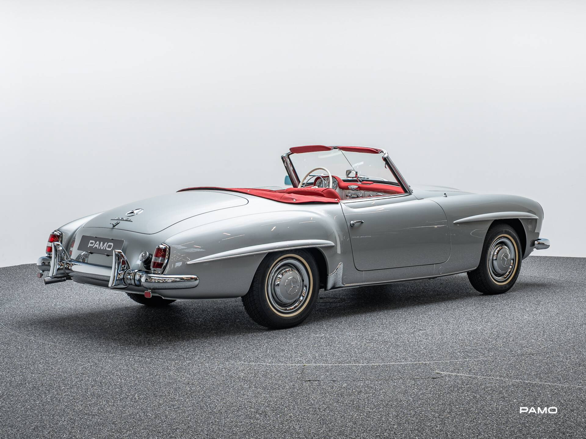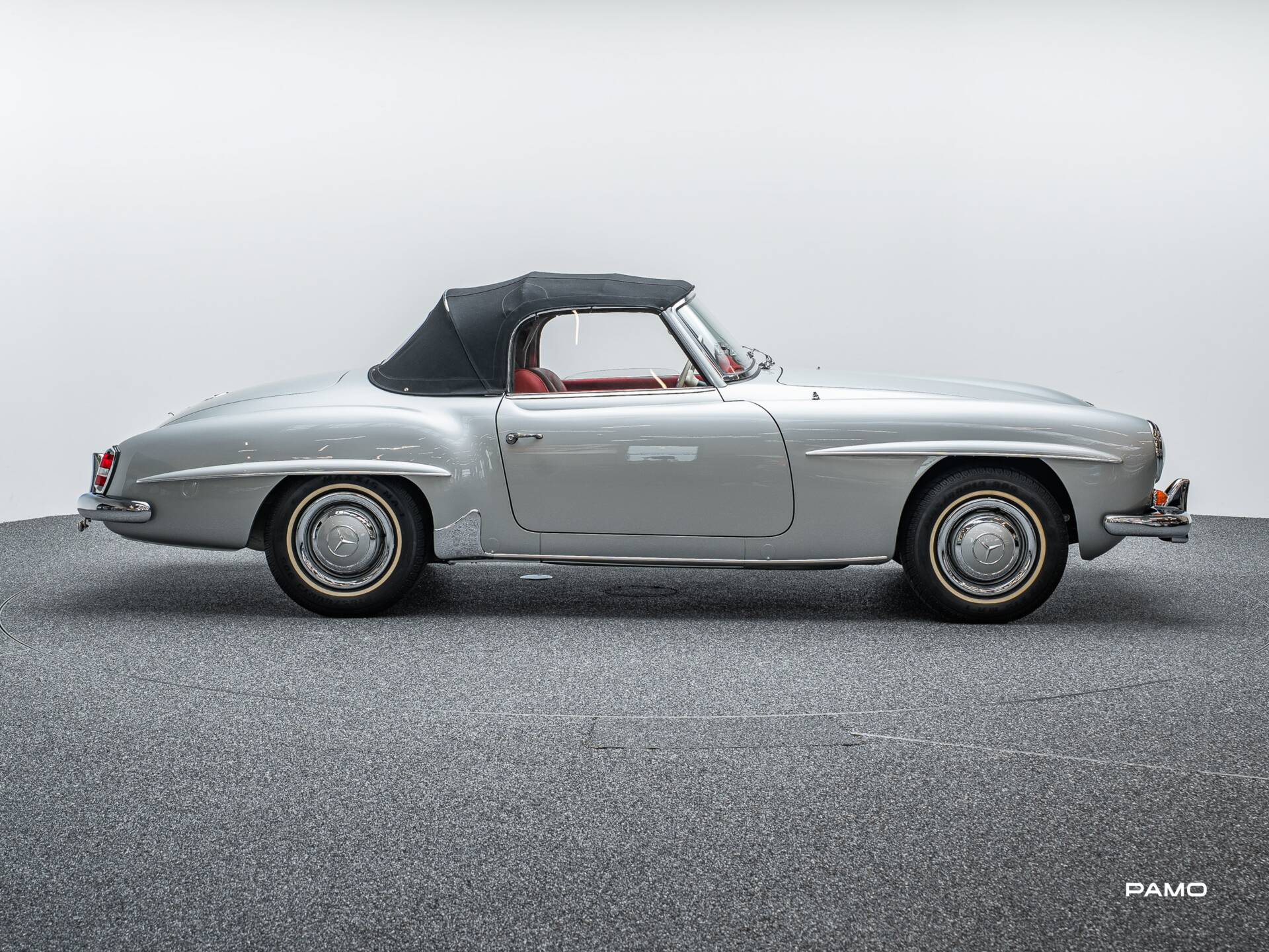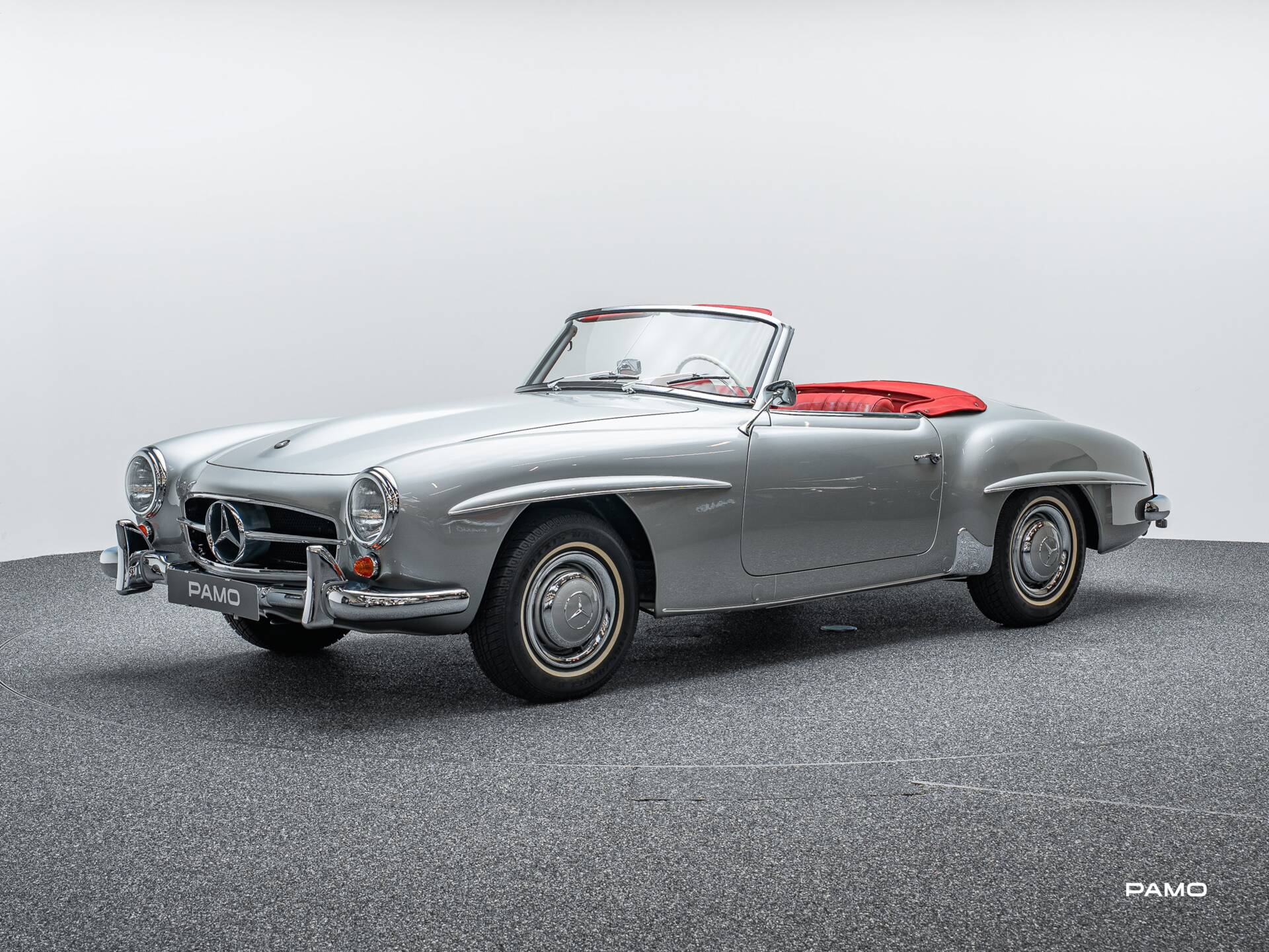 Wunderschöner Mercedes 190 SL in klassischer Farbgebung silber und roter Lederpolsterung. Erstauslieferung USA. Kam 2011 aus Ohio und wurde anschließend von Mercedes SL Markenspezialisten Frame-Off restauriert. Dokumentation liegt in digitaler Form vor.