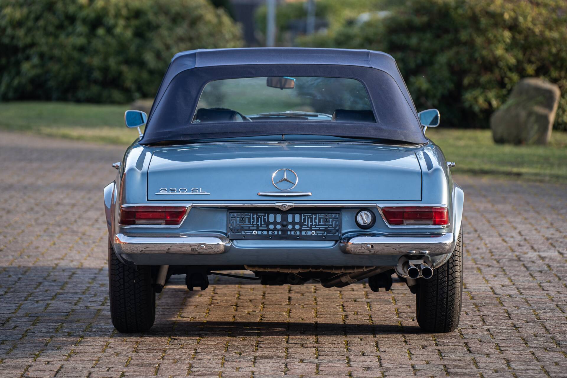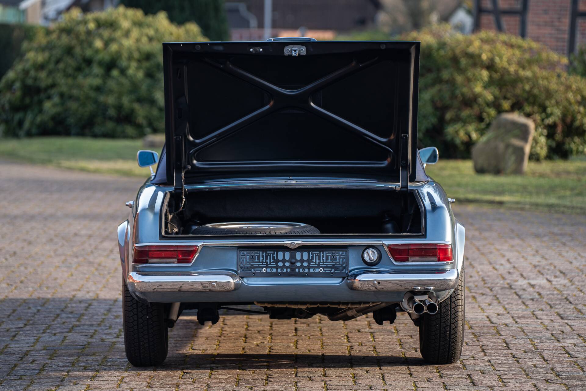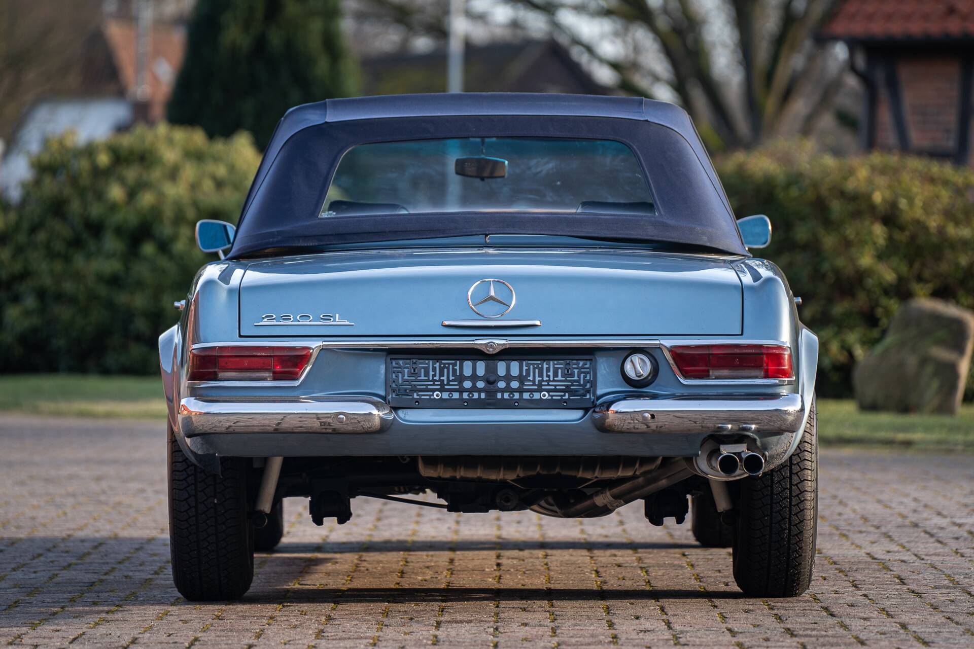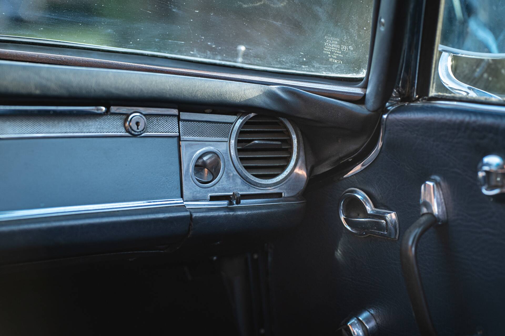 Ihr Design ist eher nüchtern und zurückhaltend, aber mit gelungenen Proportionen. Das Erscheinungsbild prägen die großen Scheinwerfer mit integrierten Nebelleuchten und Blinkern, die den breiten Grill umrahmen, während die aus heutiger Sicht zierlichen Rückleuchten das Heck filigran wirken lassen. Noch ungewöhnlicher mutet heute der Tankeinfüllstutzen ohne Klappe an. Immerhin, er ist verchromt. Den Beinamen „Pagode” verdanken die SLs dem als Sonderausstattung für 623 Mark erhältlichen Hardtop, weil das Dach seitlich höher war als in der Mitte. Das extra Dach gehört selbstverständlich auch zu dieser 67er Pagode welche bis 2016 in Mississippi leben durfte. In Deutschland angekommen wurde der SL umfangreich überholt und neu lackiert. Eine deutsche Zulassung inklusive H-Abnahme liegt vor. Wer allerdings ein perfektes Auto mit lupenreiner Historie sucht, braucht uns nicht anzurufen. Weder der KM Stand ist nachweisbar, noch liegt ein Scheckheft vor. Ob der Motor oder das Getriebe noch original ist, bleibt unbekannt. Dafür gibt es ein Aktenordner mit vielen handschriftlichen Notizen der durchgeführten Arbeiten und ein paar Rechnungen. Besichtigung auf der Hebebühne ist kein Problem. Der Verkauf erfolgt im Kundenauftrag.