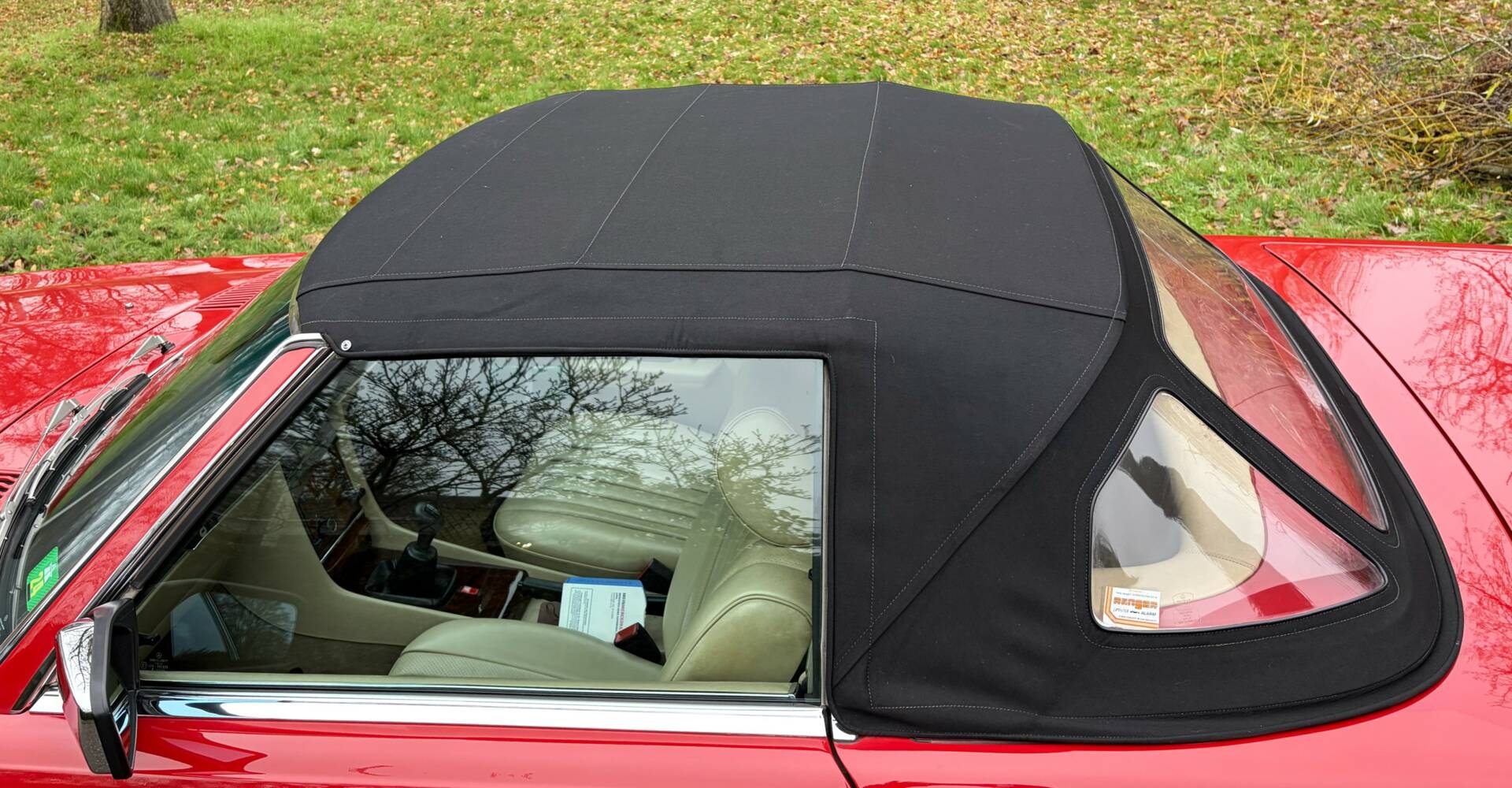 The exterior is original, rust-free and approximately 90% is in the original paint. The colour is called “signal red 568” and the paint has a beautiful deep shine. The car has been recently polished, so the body is smooth. The original bonnet looks like new and you can see from everything that the car has always been kept indoors. And the doors still close like a safe, as was customary for a Mercedes-Benz at the time. Absolute top quality.