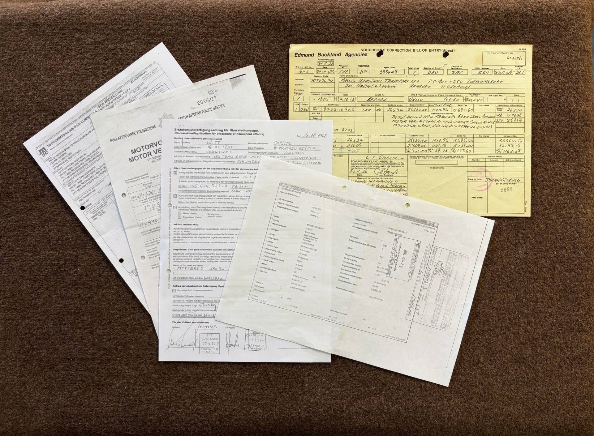 Very special 280 SL with history from new. Includes the booklets and maintenance invoices. With a verifiable mileage of 20,570 km and in this condition almost impossible to find. Delivered new in Johannesburg and used as a second car by the first owner. After 15 years, the SL was taken to Switzerland as part of a move. There, the current Dutch owner bought the car from the widow of the first owner.