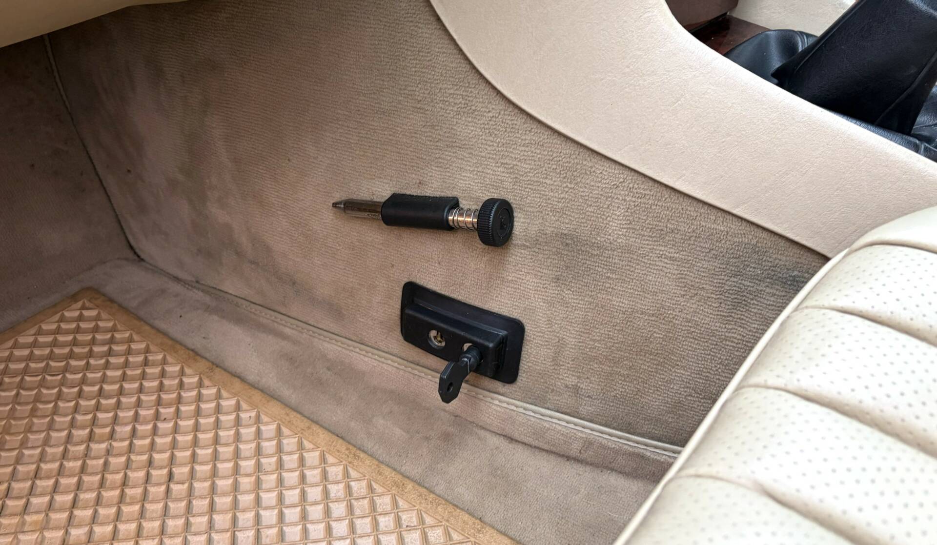 The interior is 100% original and, of course, in very good condition. The seats look like new, which is logical given the mileage. The dashboard is intact and all instruments work as they should, including the clock. Another nice feature is the iconic Becker Mexico radio-cassette recorder with motorised antenna. It was supplied at a considerable extra cost and everything still works perfectly. The original pin to lock the gearbox is very special and extremely rare. In South Africa, this was a useful option to prevent theft.