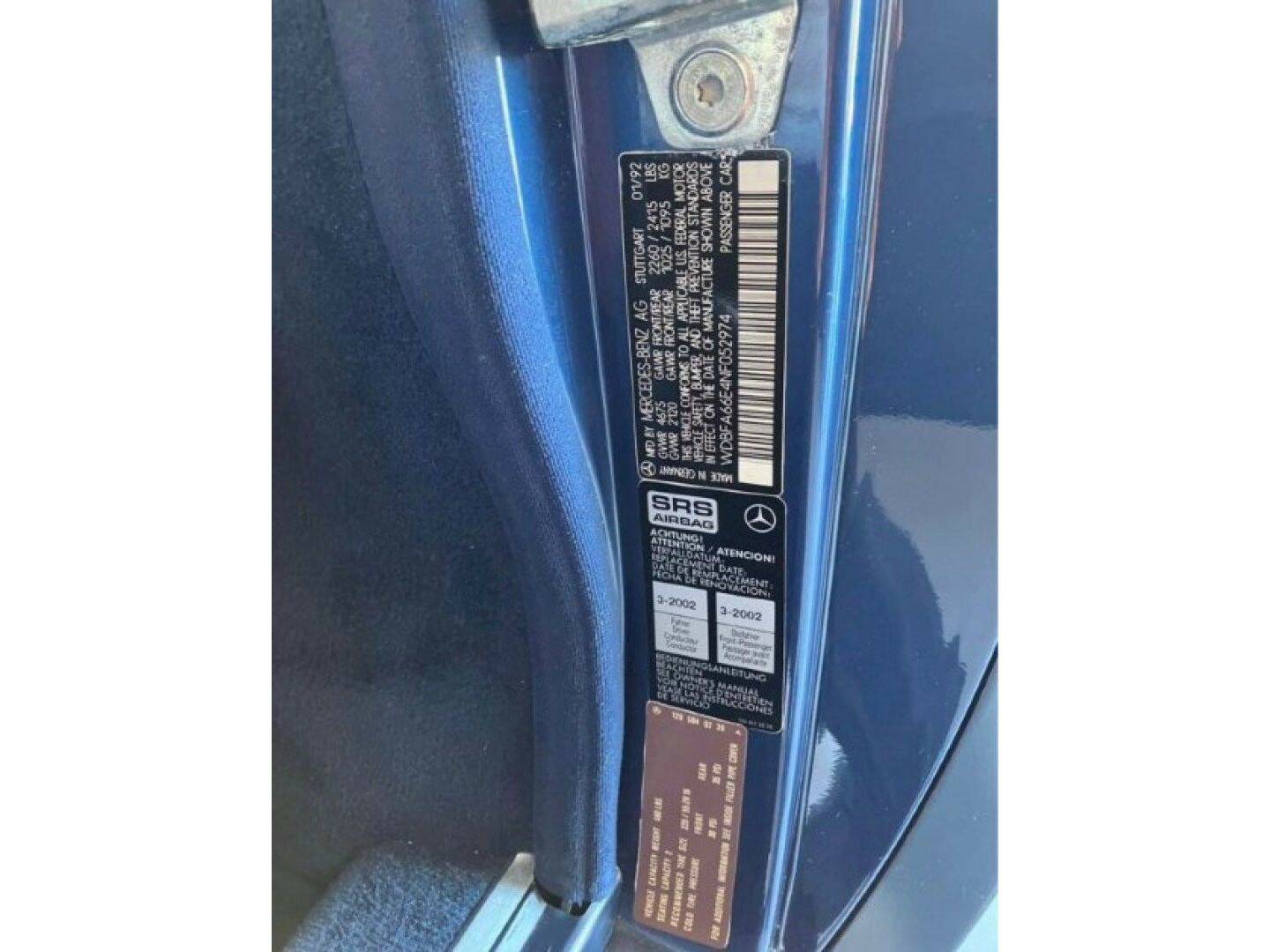 VIN # WDB129066-1F-052974 (EU)