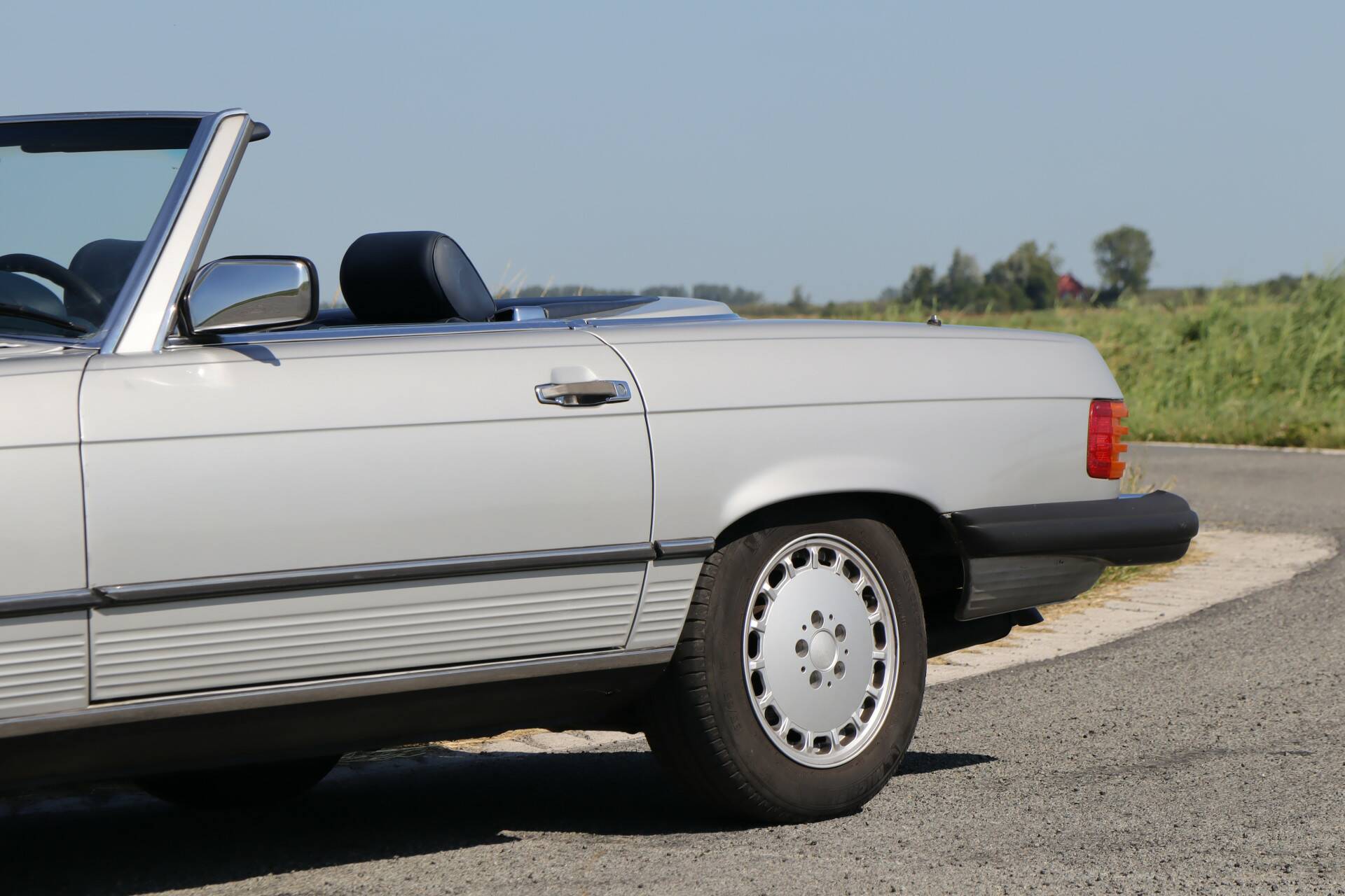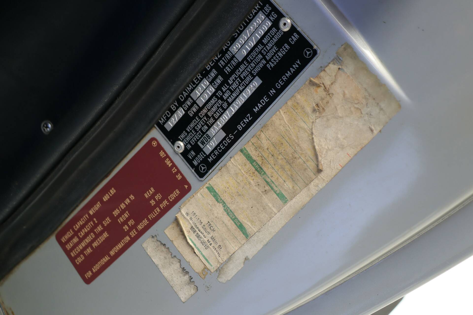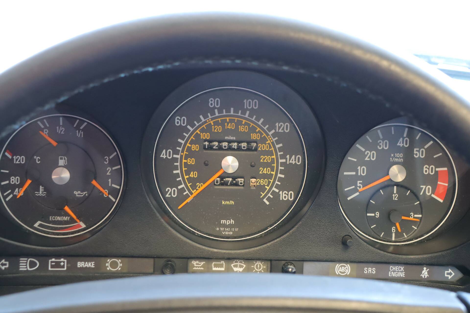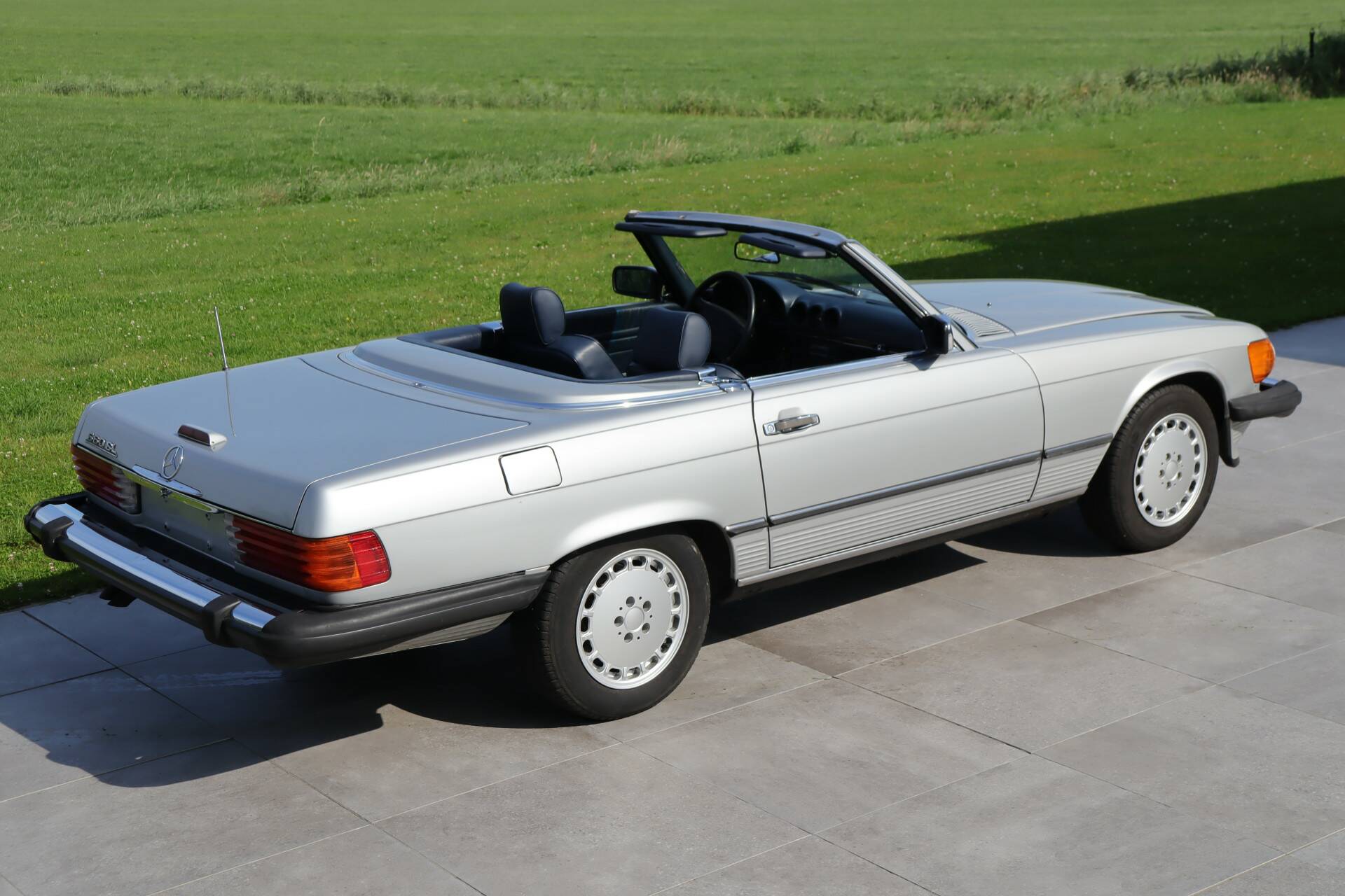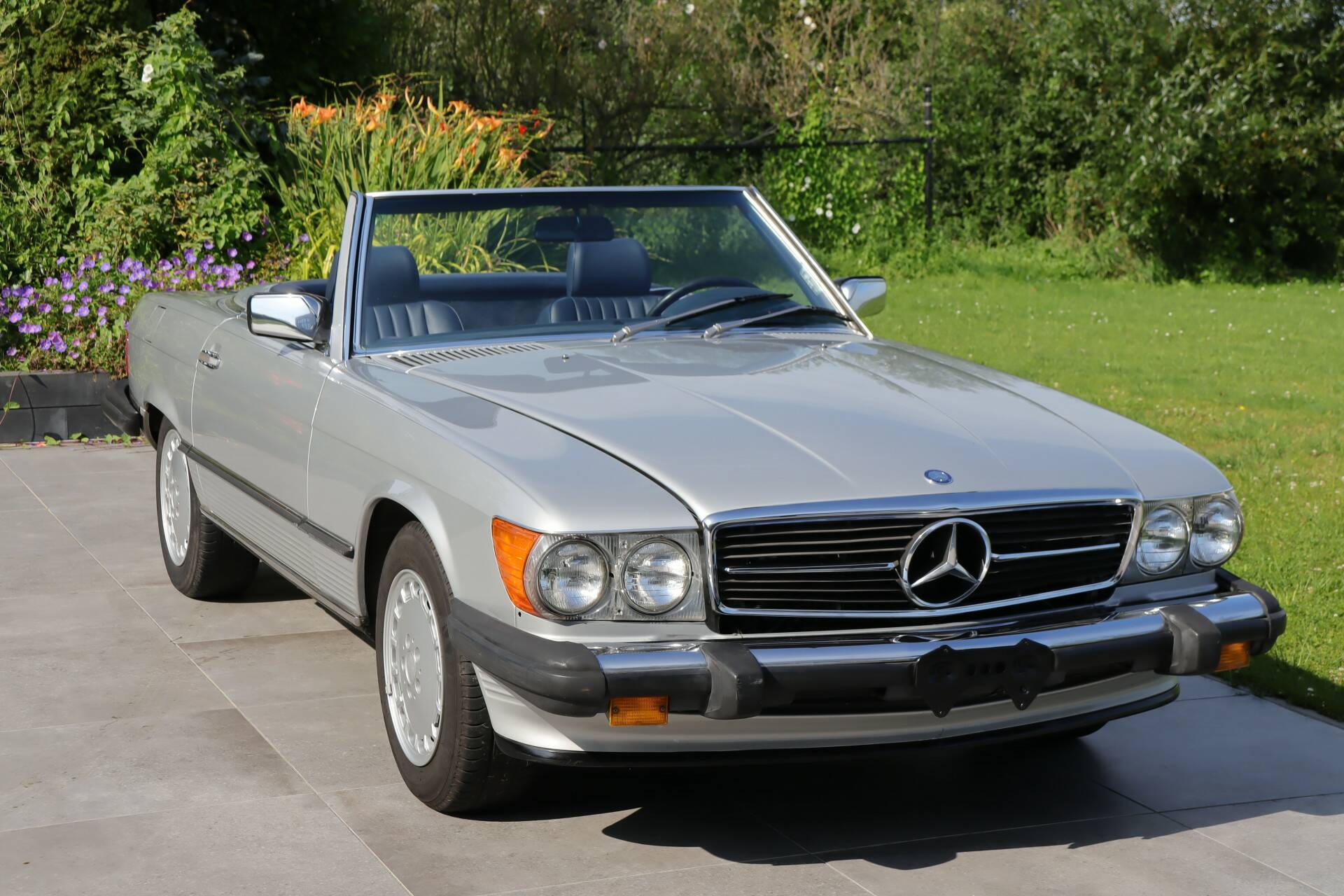 Was für ein angenehm zu fahrendes Auto: dieses leistungsstarke Cabriolet mit 4-Gang-Automatikgetriebe. Dieser 560 SL verfügt über den damals größten lieferbaren Motor und wurde am 14. September 1988 neu in Brockton (Boston, USA) ausgeliefert. Zum Auto gehört eine ausführliche „History File”. Darin befindet sich unter anderem ein Carfax-Bericht, aus dem hervorgeht, dass der Mercedes eine unfallfreie Vergangenheit hat. Auch die geringe Kilometerleistung ist darin dokumentiert. Am 27.04.1992 betrug diese 69.856 MLS, am 26.11.1993 99.000 MLS, am 27.06.1994 107.380 MLS, am 22.02.2002 110.157 MLS und am 28.02.2003 111.588 MLS und am 27.09.2011 125.593 MLS. Zu den Originalunterlagen gehört sogar der Pre-Delivery-Inspektionsbericht von Mercedes-Benz, der vor der Auslieferung an den Erstbesitzer erstellt wurde. Auch das Auslieferungsheft und die Original-Bedienungsanleitungen sind im Lieferumfang enthalten. Dieser schöne Mercedes wurde in den letzten Jahren wenig gefahren, daher sind eine umfassende Inspektion und Wartung empfehlenswert.