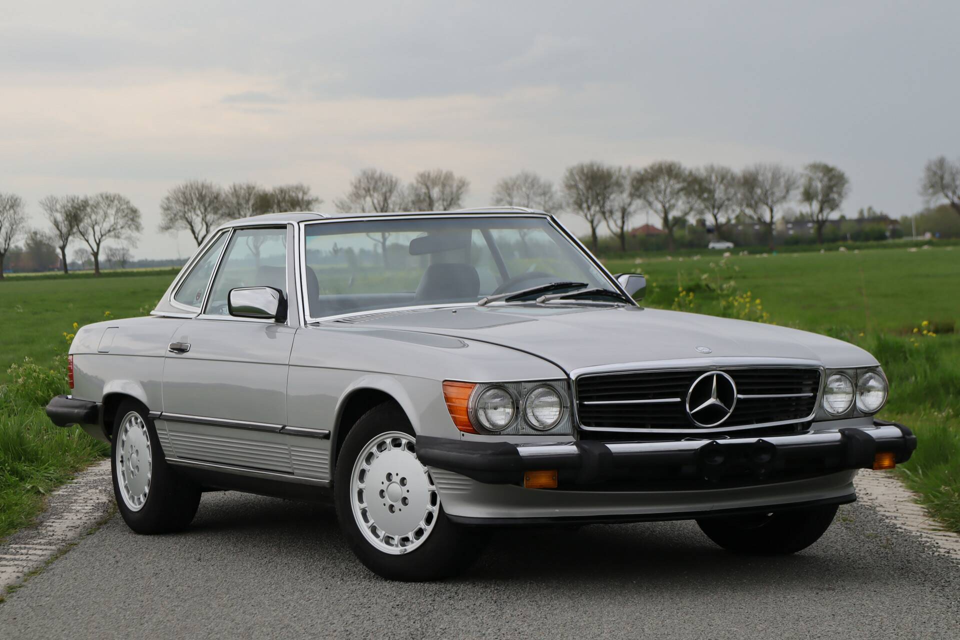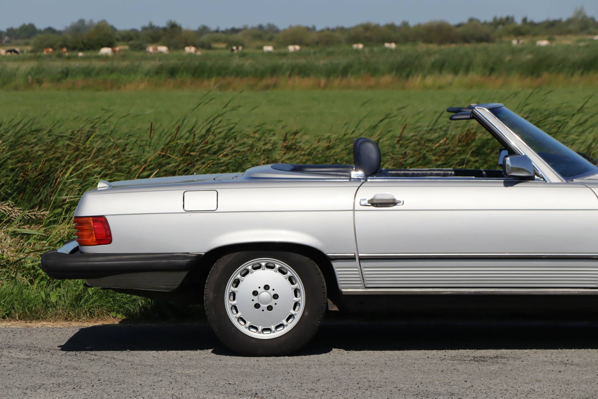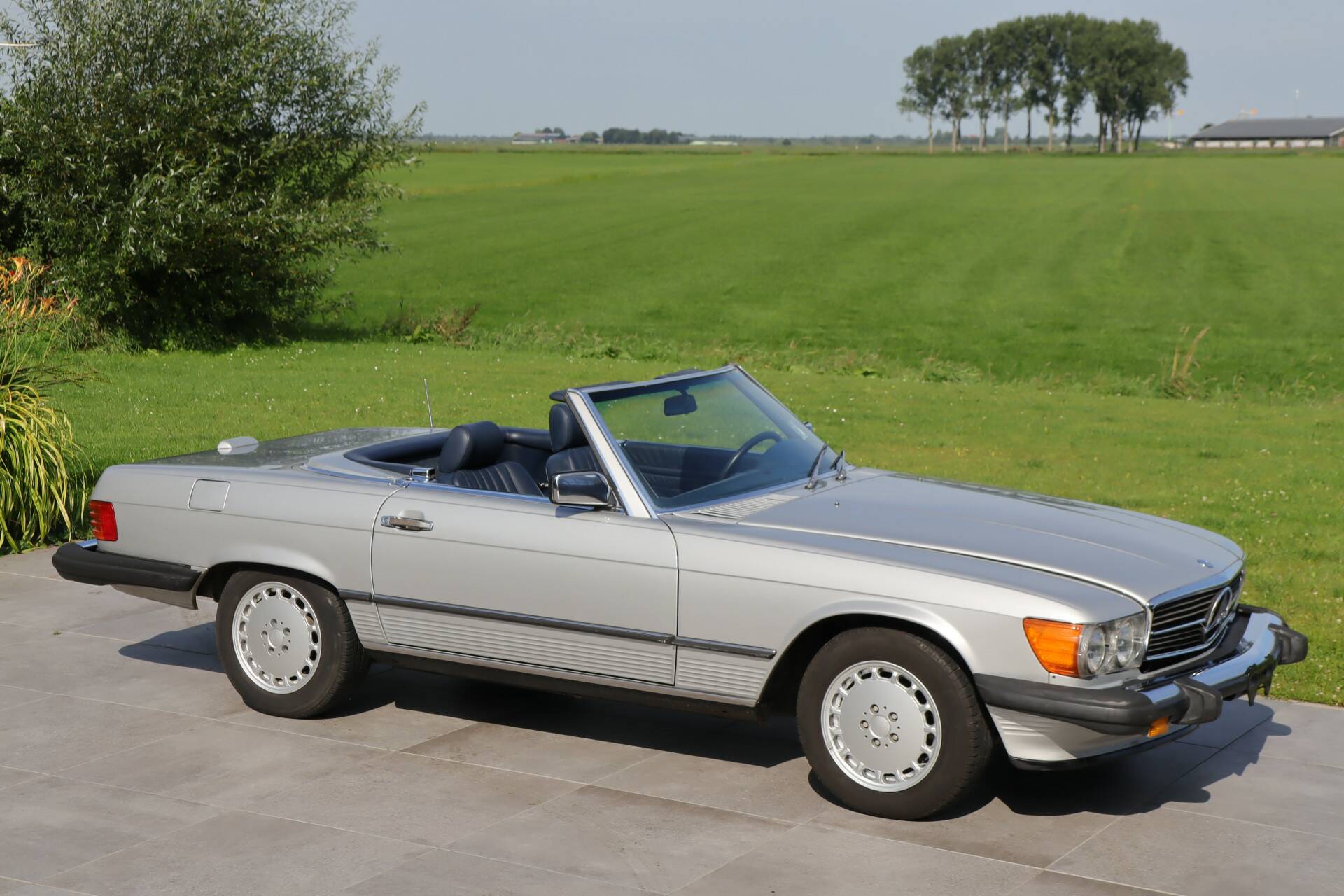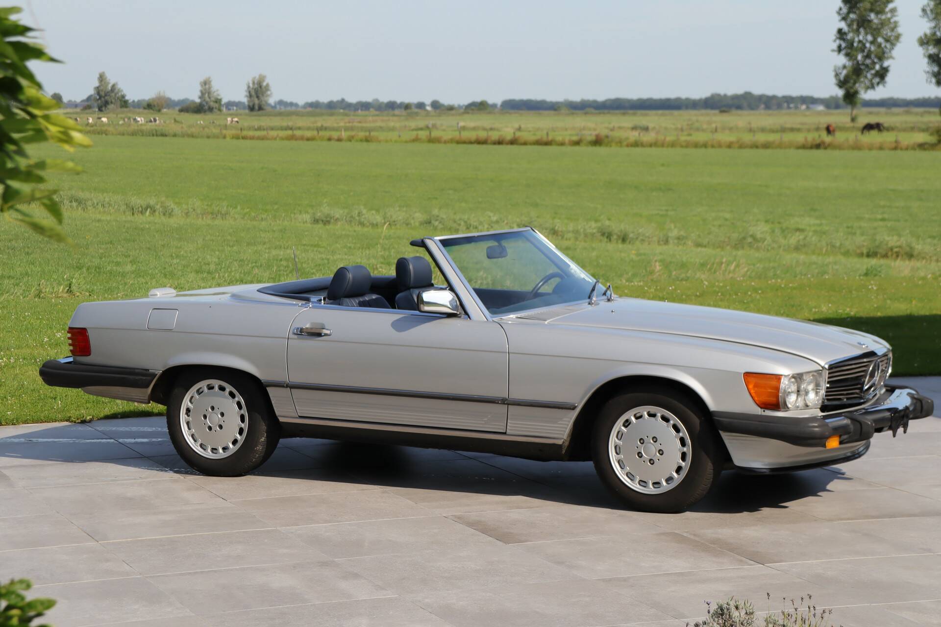 Was für ein angenehm zu fahrendes Auto: dieses leistungsstarke Cabriolet mit 4-Gang-Automatikgetriebe. Dieser 560 SL verfügt über den damals größten lieferbaren Motor und wurde am 14. September 1988 neu in Brockton (Boston, USA) ausgeliefert. Zum Auto gehört eine ausführliche „History File”. Darin befindet sich unter anderem ein Carfax-Bericht, aus dem hervorgeht, dass der Mercedes eine unfallfreie Vergangenheit hat. Auch die geringe Kilometerleistung ist darin dokumentiert. Am 27.04.1992 betrug diese 69.856 MLS, am 26.11.1993 99.000 MLS, am 27.06.1994 107.380 MLS, am 22.02.2002 110.157 MLS und am 28.02.2003 111.588 MLS und am 27.09.2011 125.593 MLS. Zu den Originalunterlagen gehört sogar der Pre-Delivery-Inspektionsbericht von Mercedes-Benz, der vor der Auslieferung an den Erstbesitzer erstellt wurde. Auch das Auslieferungsheft und die Original-Bedienungsanleitungen sind im Lieferumfang enthalten. Dieser schöne Mercedes wurde in den letzten Jahren wenig gefahren, daher sind eine umfassende Inspektion und Wartung empfehlenswert.