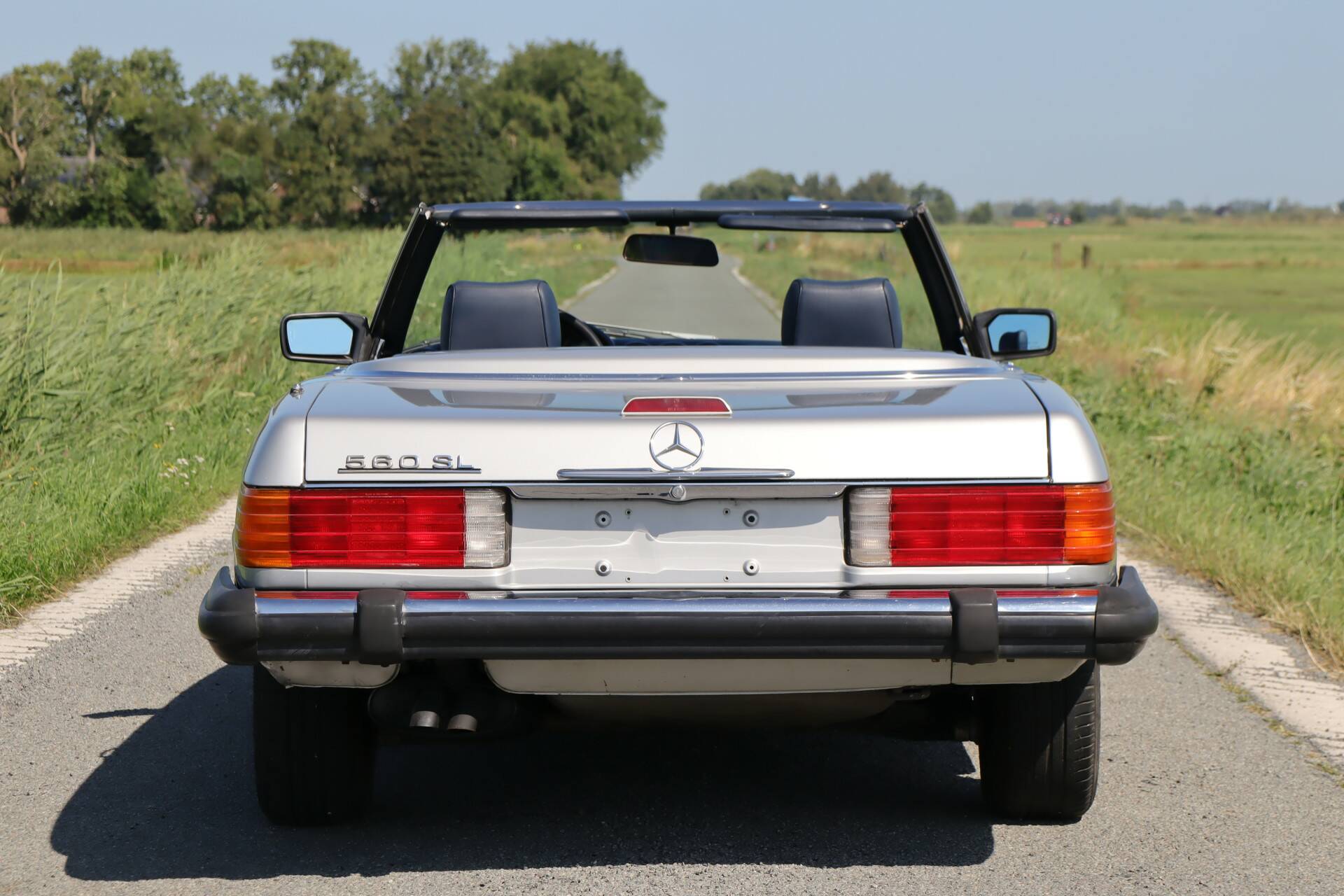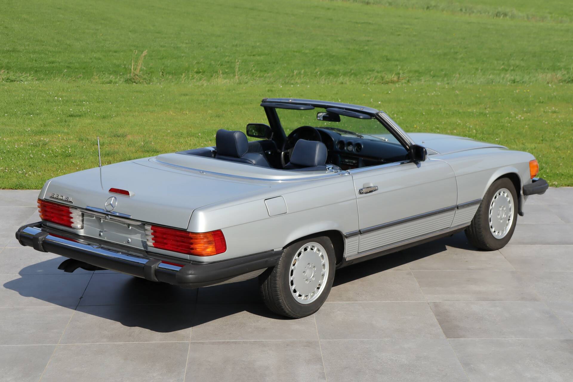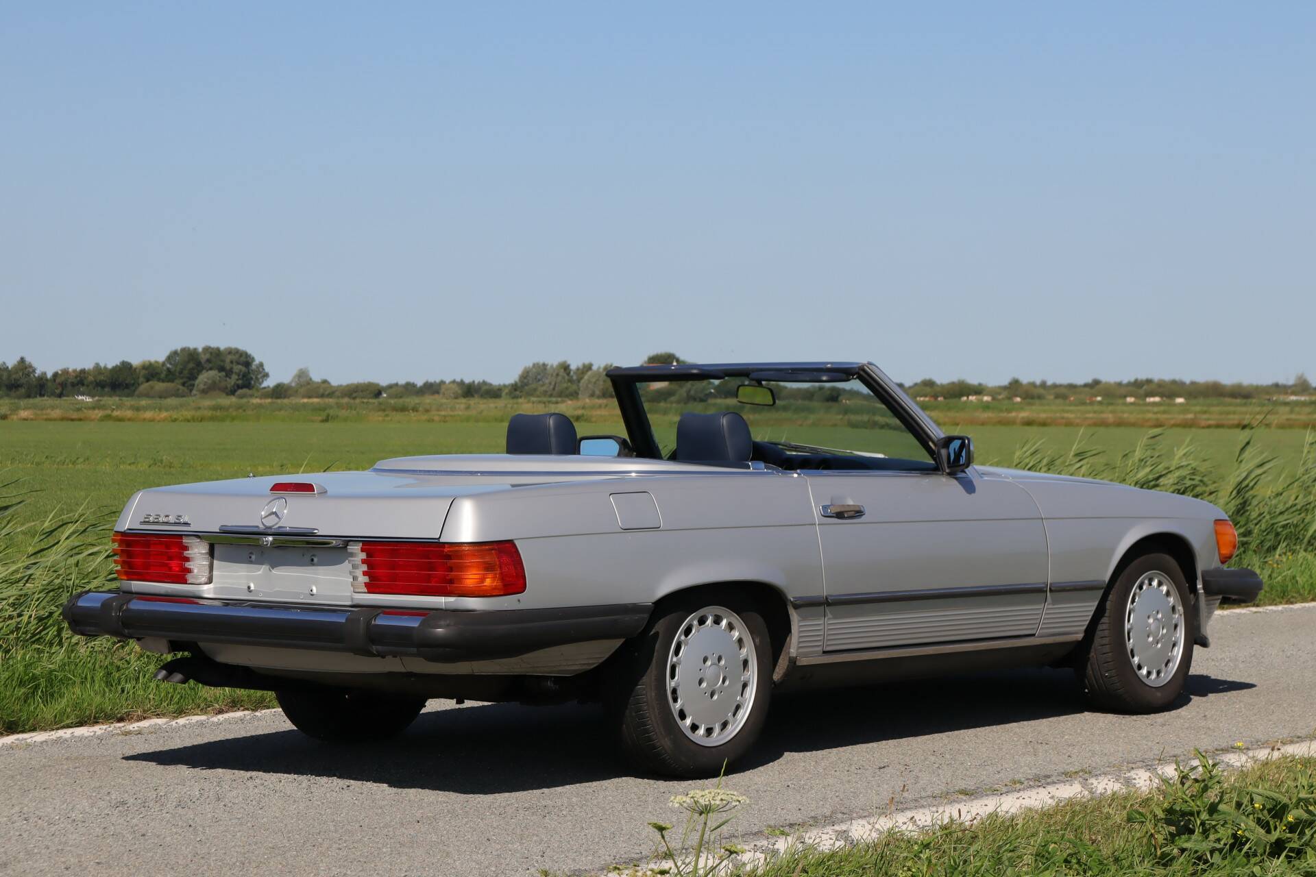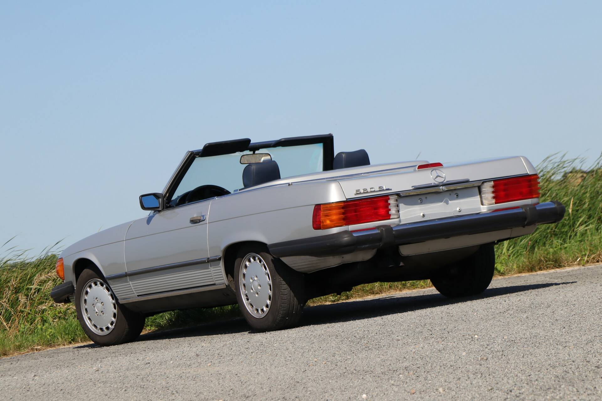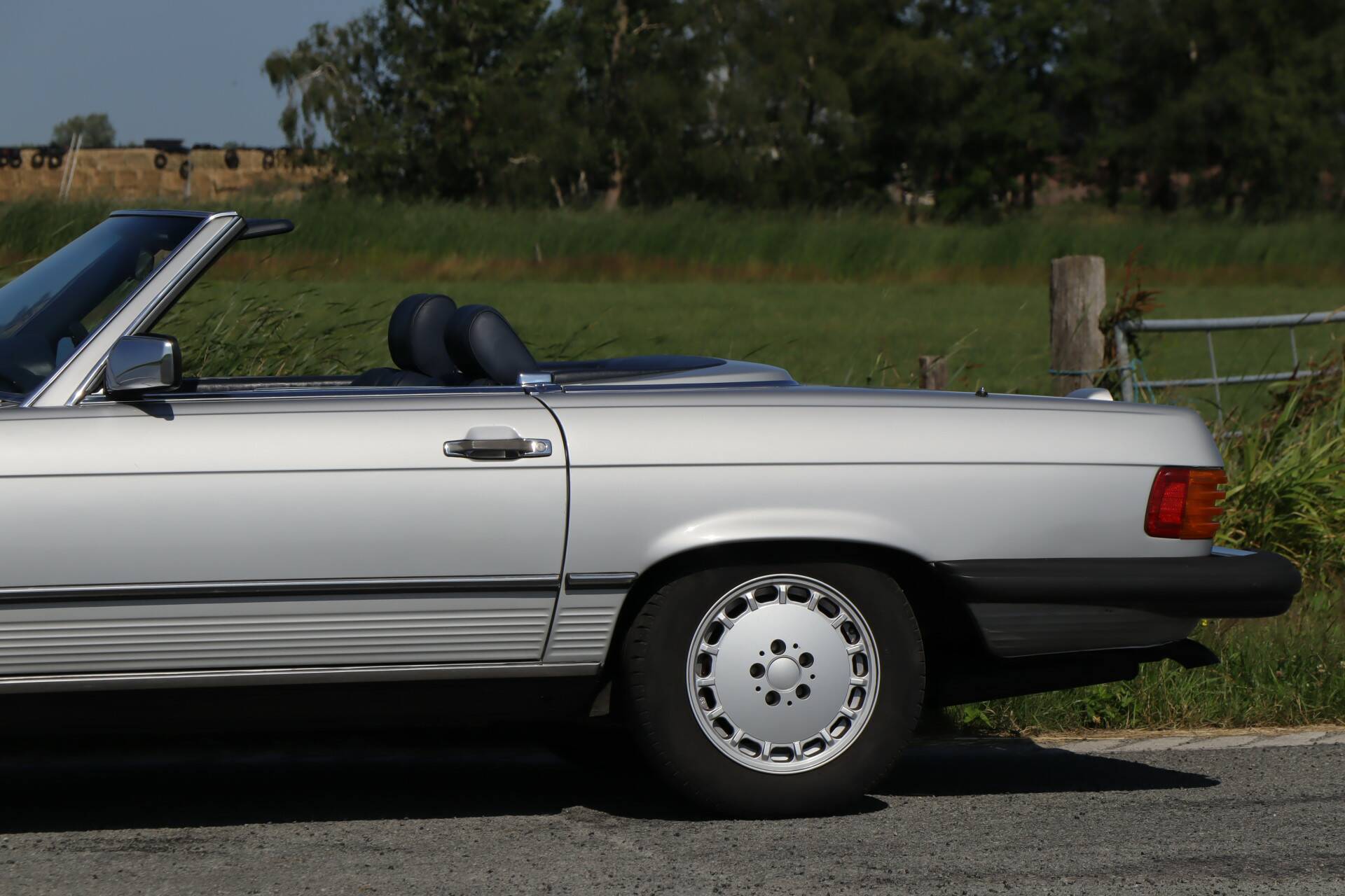 Was für ein angenehm zu fahrendes Auto: dieses leistungsstarke Cabriolet mit 4-Gang-Automatikgetriebe. Dieser 560 SL verfügt über den damals größten lieferbaren Motor und wurde am 14. September 1988 neu in Brockton (Boston, USA) ausgeliefert. Zum Auto gehört eine ausführliche „History File”. Darin befindet sich unter anderem ein Carfax-Bericht, aus dem hervorgeht, dass der Mercedes eine unfallfreie Vergangenheit hat. Auch die geringe Kilometerleistung ist darin dokumentiert. Am 27.04.1992 betrug diese 69.856 MLS, am 26.11.1993 99.000 MLS, am 27.06.1994 107.380 MLS, am 22.02.2002 110.157 MLS und am 28.02.2003 111.588 MLS und am 27.09.2011 125.593 MLS. Zu den Originalunterlagen gehört sogar der Pre-Delivery-Inspektionsbericht von Mercedes-Benz, der vor der Auslieferung an den Erstbesitzer erstellt wurde. Auch das Auslieferungsheft und die Original-Bedienungsanleitungen sind im Lieferumfang enthalten. Dieser schöne Mercedes wurde in den letzten Jahren wenig gefahren, daher sind eine umfassende Inspektion und Wartung empfehlenswert.