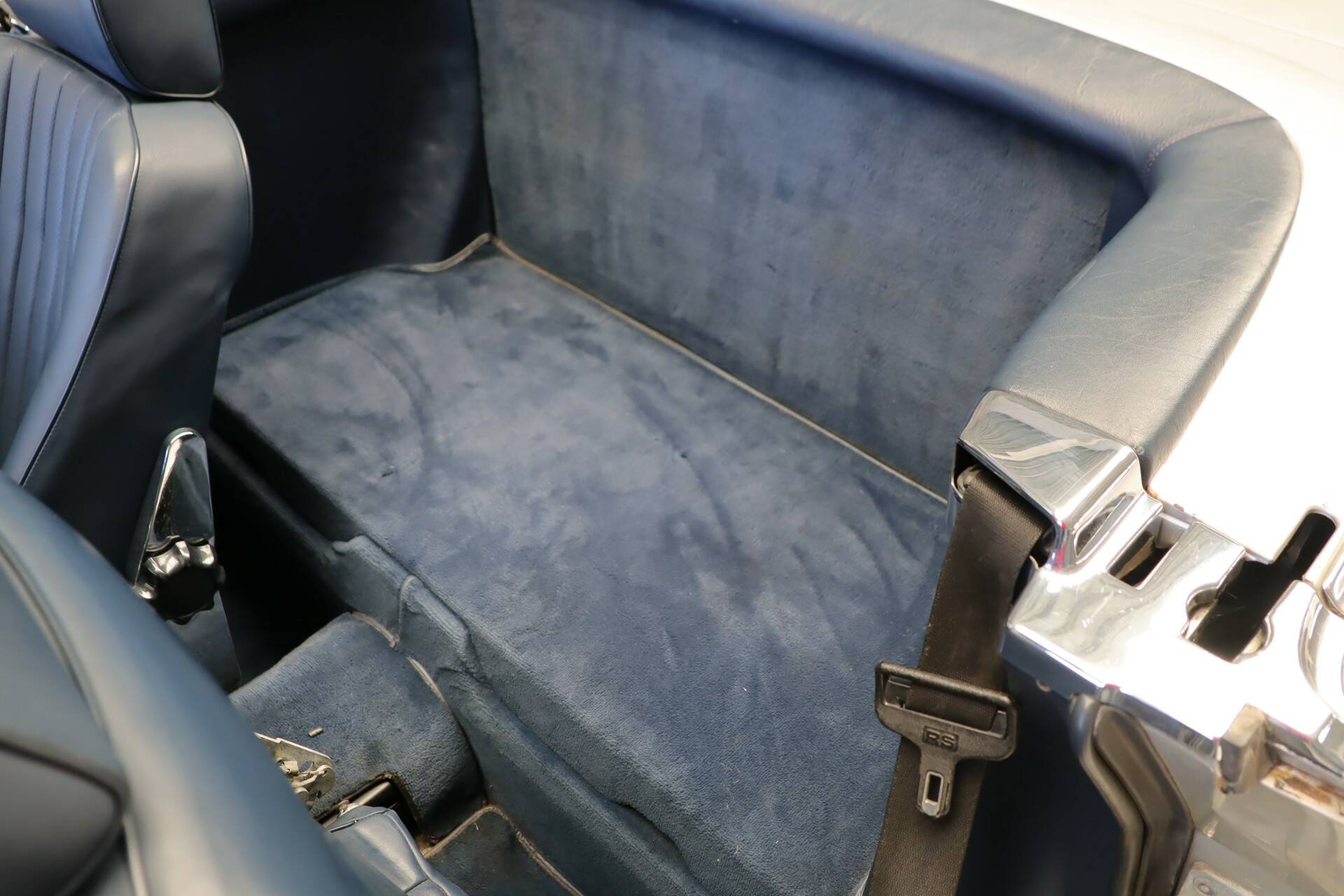 Das Fahrzeug ist in der eleganten Farbe „Astral Silver Metallic” mit einer Innenausstattung in „Royal Blue Leather” ausgestattet. Es verfügt über ein Hardtop in Wagenfarbe. Der Lack ist in einem guten Zustand mit minimalen Gebrauchsspuren. Auch die Chromteile und Gummis sind in einem guten Zustand, ebenso wie die klaren Beleuchtungskästen. Unter dem Fahrzeug befinden sich 15-Zoll-Leichtmetallfelgen mit Michelin-Reifen, die noch über ein gutes Profil verfügen.