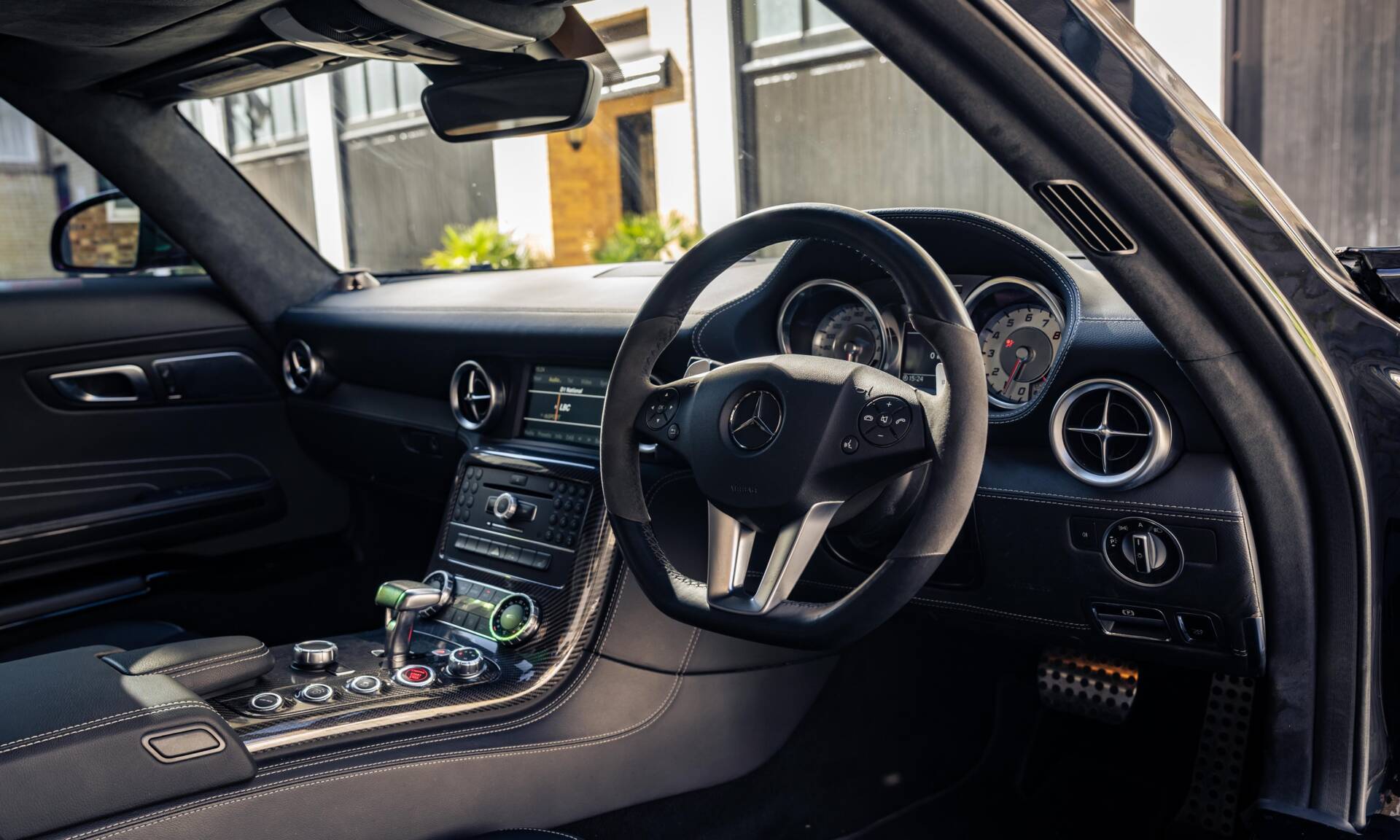 Originally registered on 30th September 2011 this SLS AMG is finished in Obsidian Black with Designo Black Leather interior. These are very well-appointed cars and this example is no exception with 19”/20” Forged AMG 10spoke design wheels, Bang &Olufsen sound system, COMAND with navigation, AMG performance steering wheel, AMG carbon fibre exterior mirrors and Bi Xenon headlamps. As always with such a premium product, service history is essential, this Mercedes-Benz has had 11 services throughout its life, the last being on 19th December 2024 at 28,653 miles. Supplied with a V5 registration document, a current MoT test certificate this magnificent SLS 63 AMG is simply stunning to drive and with the most exquisite exhaust note, it also benefits from having full PPF (paint protection film). Whether in coupe or roadster form, the Mercedes SLS 63 AMG is a modern classic a fusion of heritage and innovation. Its blend of raw performance, timeless design, and exclusivity has made it one of the most admired supercars of the 21st century, embodying AMG's purest interpretation of driving passion. Consigned by Stewart Banks