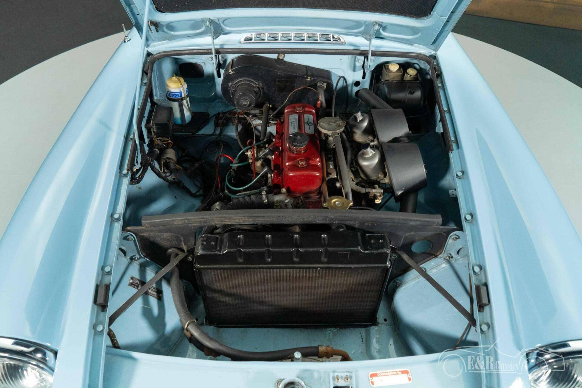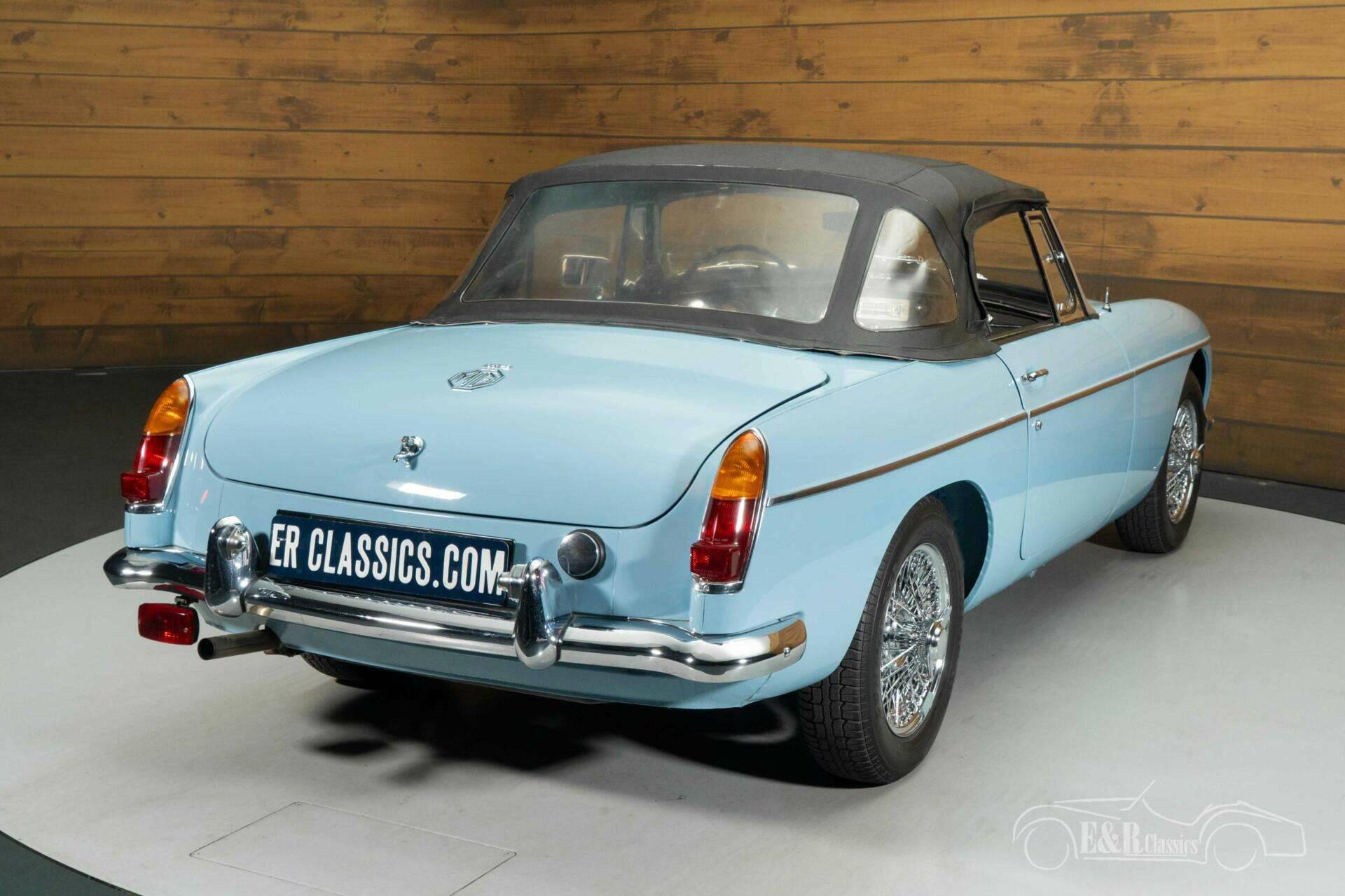 The 1965 MG MGB Convertible is an icon among British roadsters and is known for its timeless design and enjoyable driving experience. Introduced as the successor to the MGA, this model immediately distinguished itself with its modern monocoque body and improved handling. Under the hood lies the characteristic 1.8-liter 4-cylinder engine, producing approximately 95 hp, combined with a manual transmission and front disc brakes – groundbreaking in its class at the time. This specific example was delivered new in Belgium and has driven only 82,043 km. The car has been extensively restored and boasts a particularly fine history with only 2 previous owners, with the last owner having owned the MG since as late as 1988.