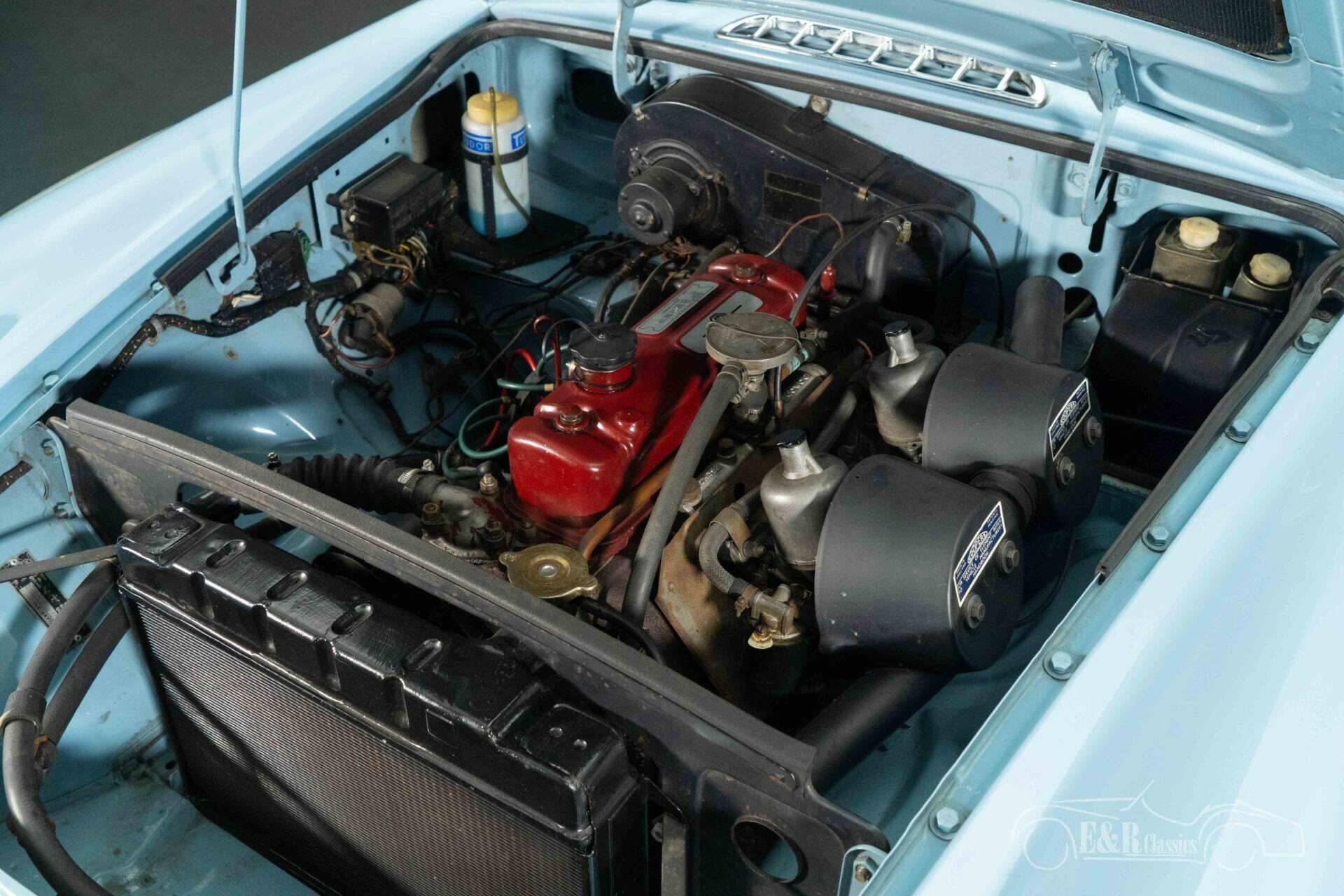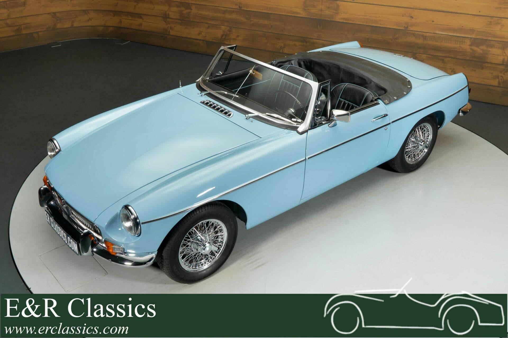 The appearance of this MGB is an absolute eye-catcher thanks to the stylish baby blue paintwork, which perfectly complements the elegant lines of the bodywork. The chrome wire wheels give the car an extra classic and sporty character, while the black soft top provides a beautiful contrast and practical usability. The interior features black upholstery with subtle blue piping, which beautifully matches the exterior color and creates a harmonious whole. The dashboard and classic instruments exude authenticity and enhance the pure driving experience that makes this British convertible so beloved.