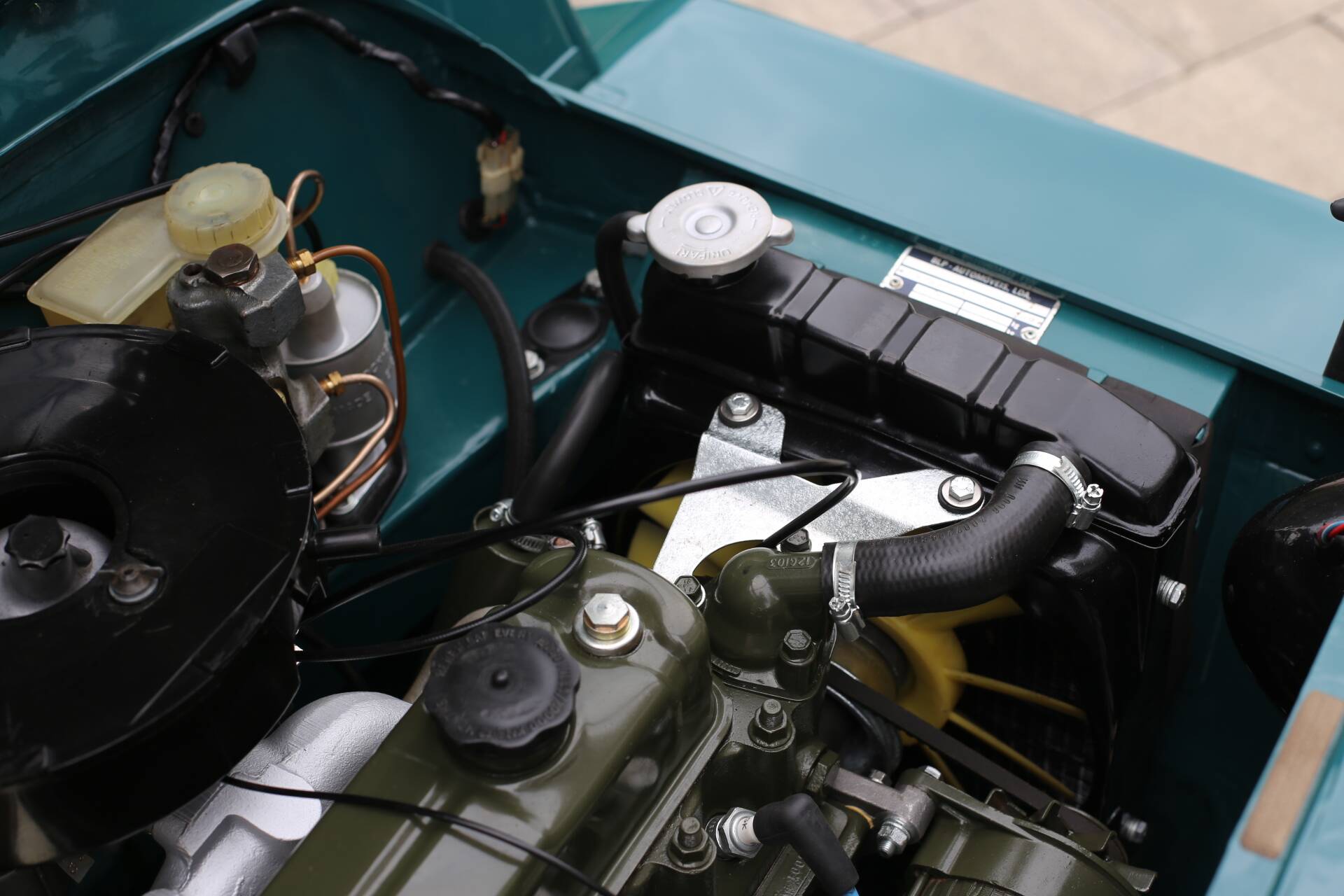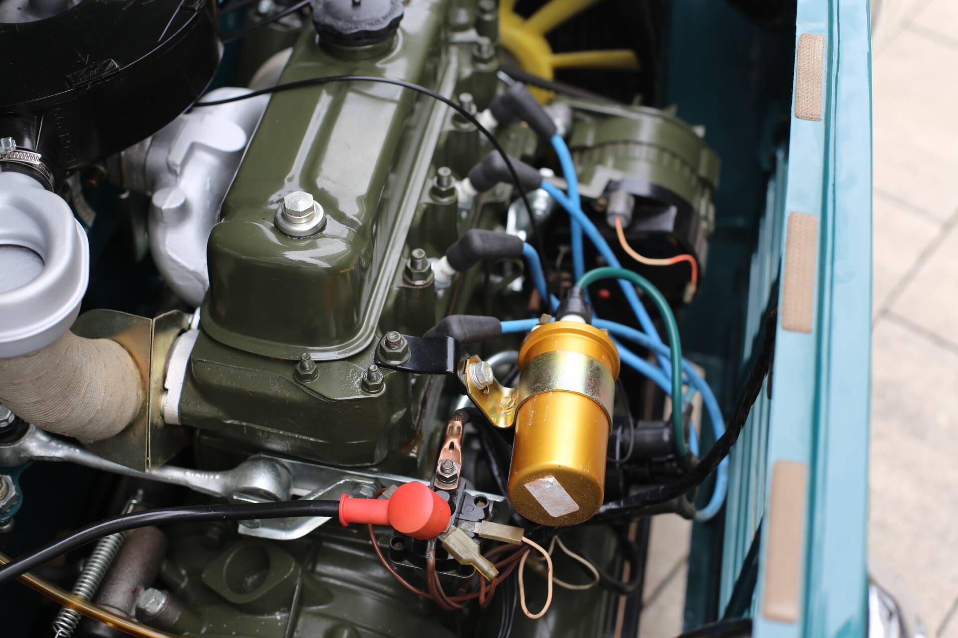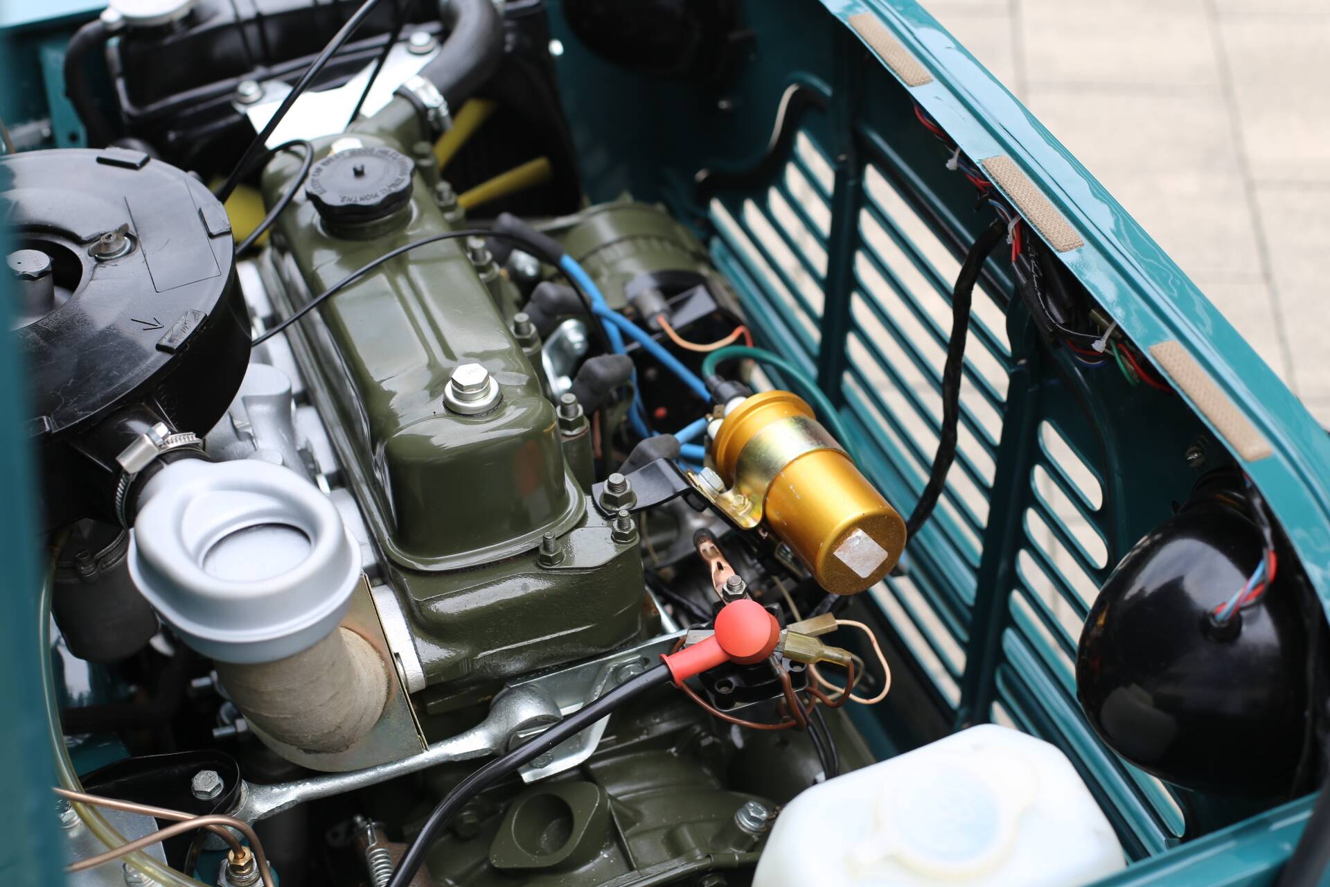 · Originalmotor und Getriebe in hervorragendem Zustand, frisch lackiert im legendären BMC „Engine Green“ – die Werkskompression ist ausgezeichnet (siehe Bild).