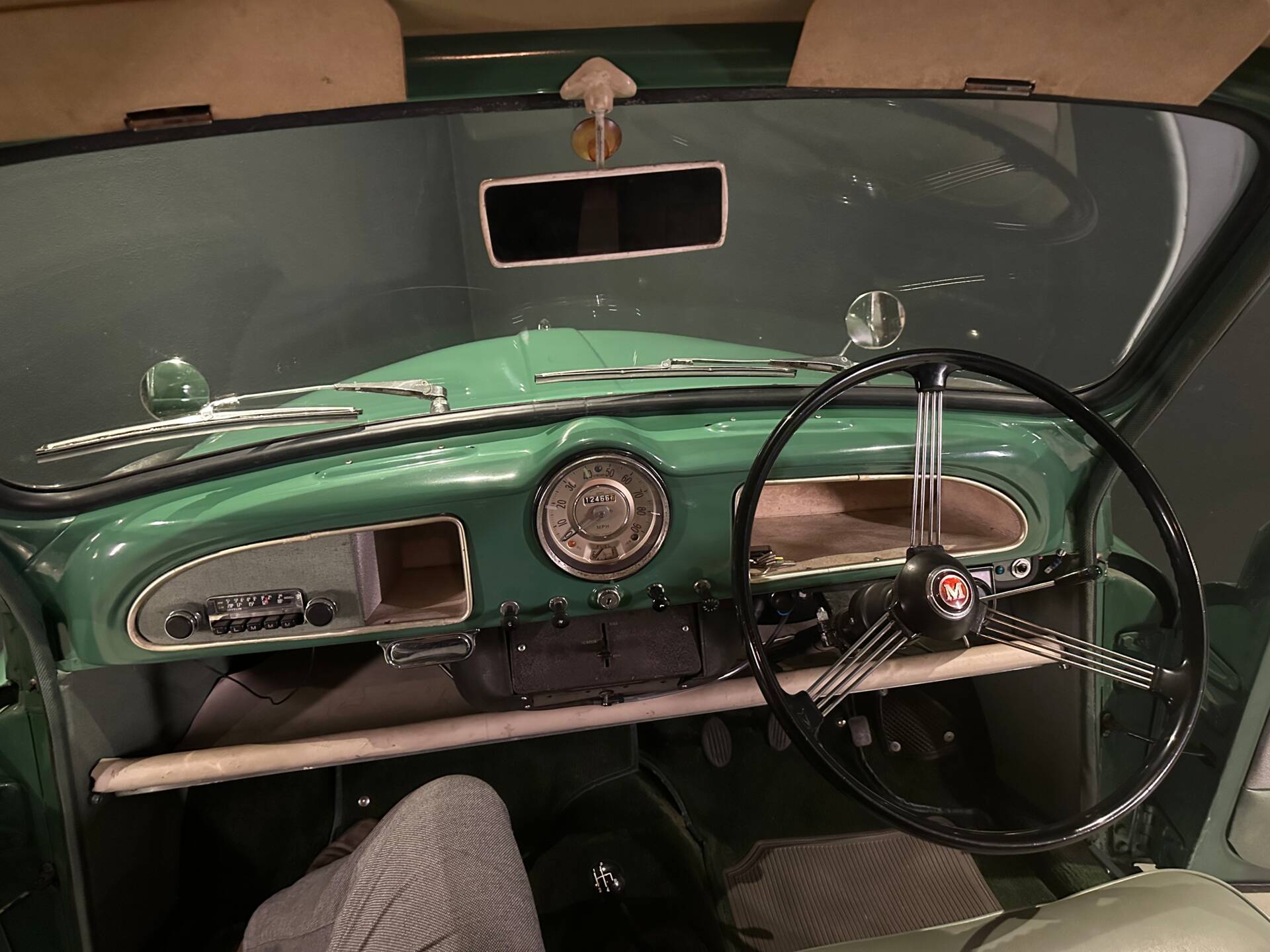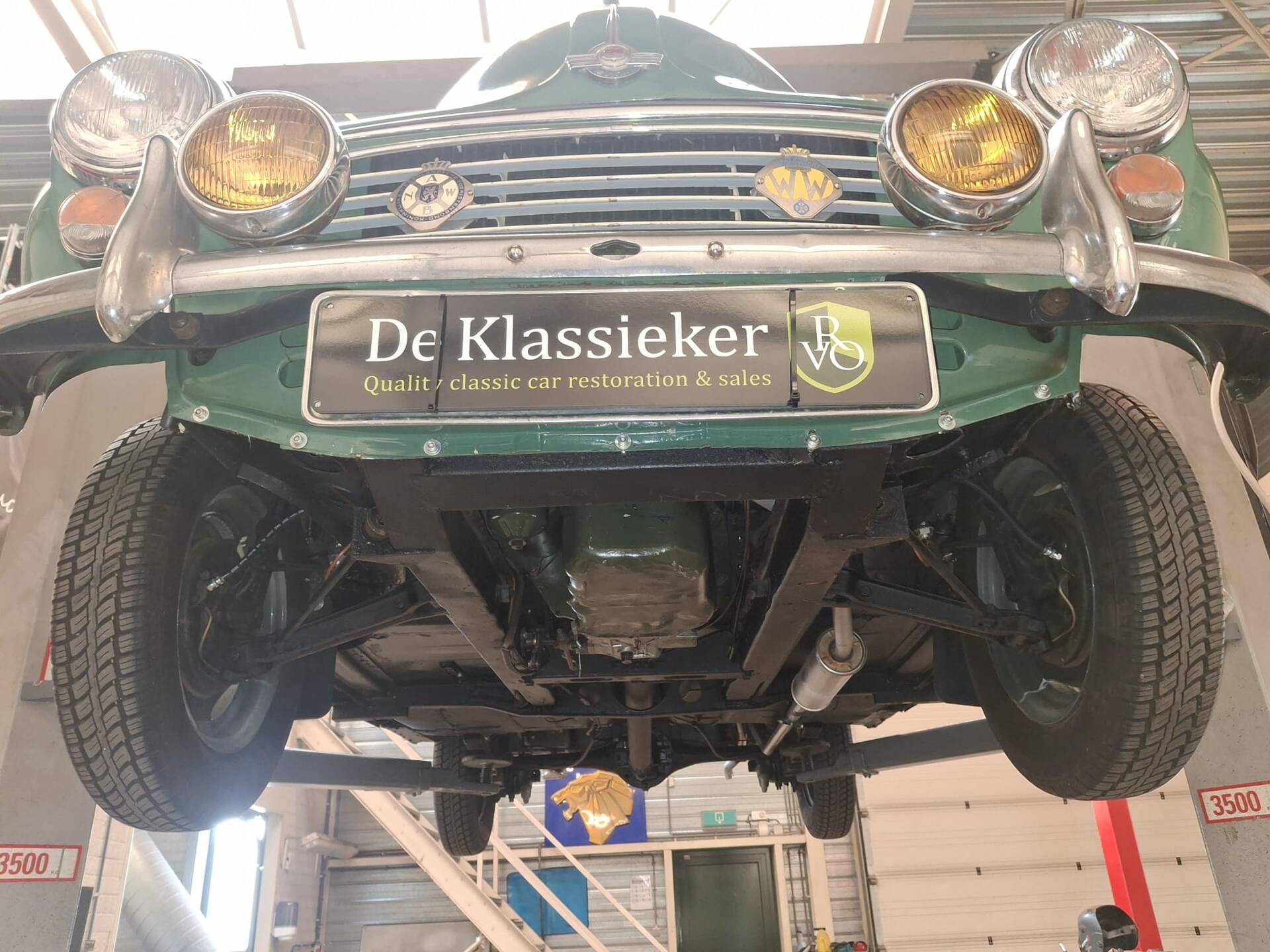 Wir bieten Ihnen einen einzigartigen Morris Minor Traveler mit passendem Anhänger an. Dieser Morris Minor Traveler stammt aus dem Jahr 1964 und ist mit einem 1098-cm³-Motor ausgestattet, der beeindruckende 48 PS leistet. Fahrzeug und Anhänger wurden kürzlich mit neuen Eschenholz-Zierelementen versehen, die für ein besonders ansprechendes Erscheinungsbild sorgen. Der mandelgrüne Lack ist in exzellentem Zustand, rostfrei und weist nur wenige Gebrauchsspuren auf. Der graue Innenraum wurde komplett erneuert und präsentiert sich in einem sehr gepflegten Zustand. Die Rückbank lässt sich umklappen und erweitert so den Laderaum. Wir haben das Fahrzeug einer umfassenden Wartung und einer gründlichen technischen Überprüfung unterzogen. Alle Mängel wurden behoben, und der Wagen befindet sich nun in einem Top-Zustand. Die Gesamtkosten für Arbeiten und Teile belaufen sich auf 4.000 €. Eine detaillierte Beschreibung ist selbstverständlich auf Anfrage erhältlich. Dieser schöne und zuverlässige Morris ist äußerst vielseitig. Ob als Familienauto, Foodtruck, Werbefahrzeug oder für einen unvergesslichen Urlaub, bei dem Sie Ihr Faltzelt im Gepäckanhänger verstauen können – dieses Fahrzeug ist für alle Zwecke geeignet. Das Fahrzeug ist aktuell rechtsgelenkt, kann aber auf Wunsch auf Linkslenkung umgerüstet werden. Fragen Sie einfach nach den Möglichkeiten. Wir laden Sie herzlich ein, das Fahrzeug zu besichtigen und eine Probefahrt zu machen. Gerne können Sie auch eine virtuelle Tour per FaceTime vereinbaren. Besuchen Sie uns auch in unserem Showroom in Schijndel. Der Export ist kein Problem; wir kümmern uns um die notwendigen Exportdokumente und, falls erforderlich, um die Kennzeichen inklusive Versicherung. Selbstverständlich organisieren wir auch den Transport innerhalb Europas für Sie.