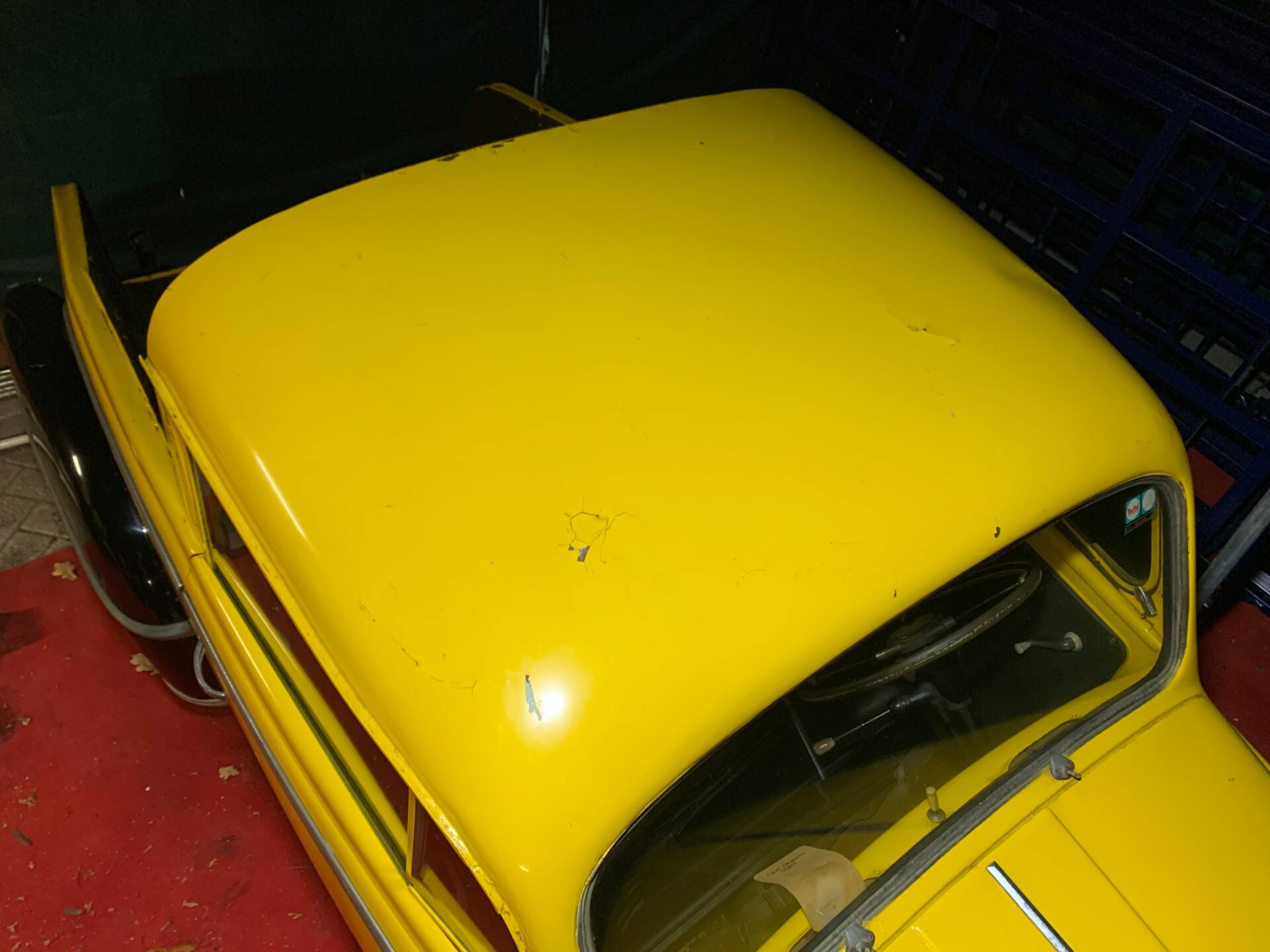 Der Wagen wurde zuletzt 2006 gefahren. Der Unterboden ist solide und die Karosserie rostfrei. Er weist Beschädigungen am Dach und eine kleine Delle im rechten hinteren Kotflügel auf.