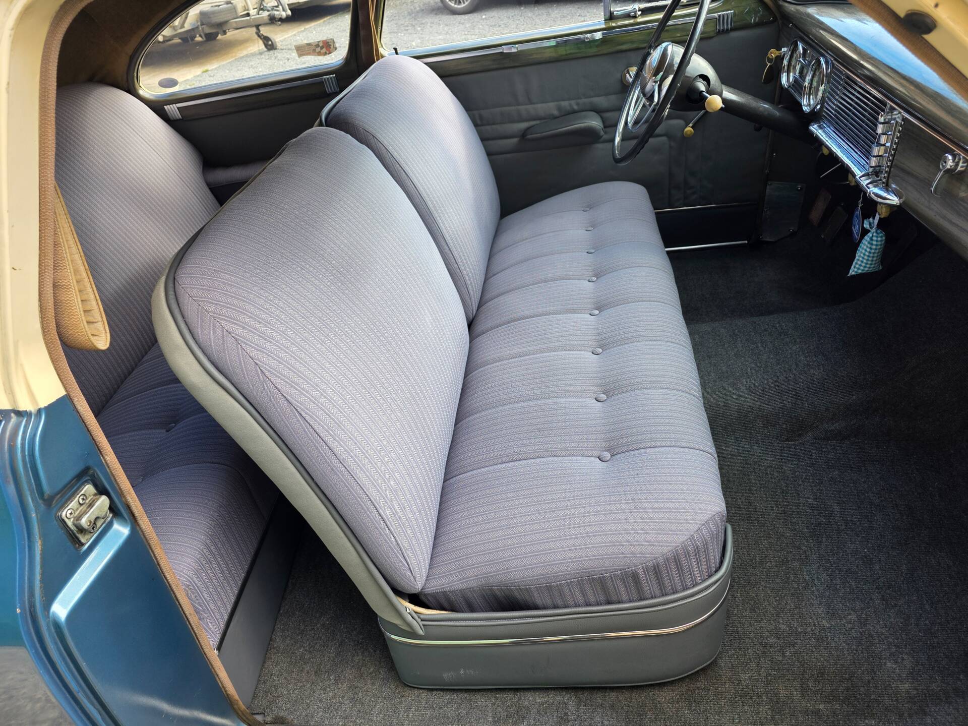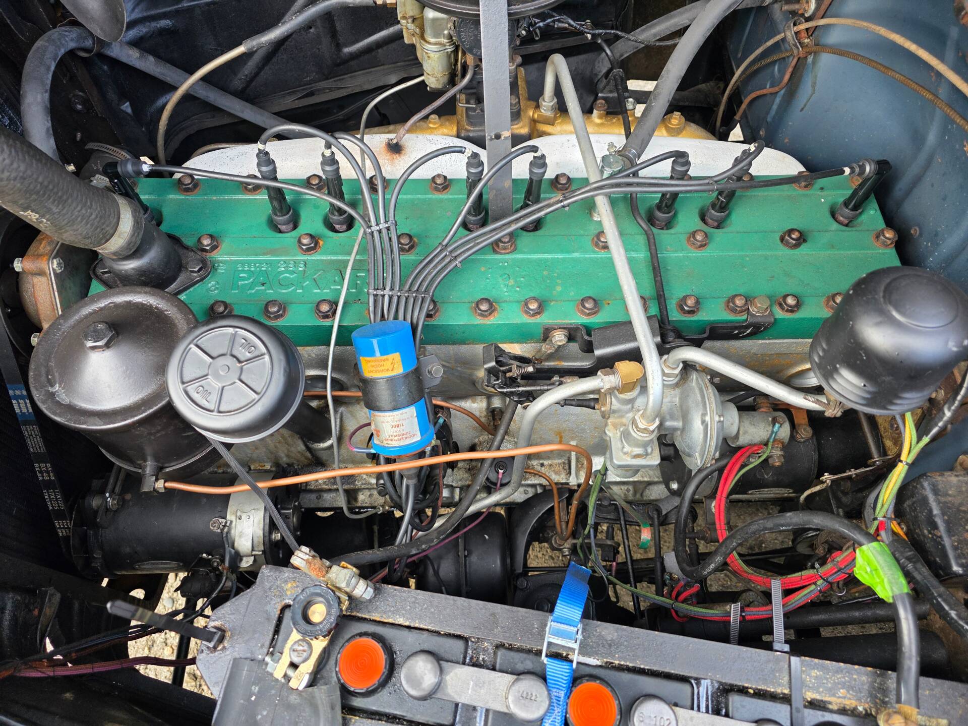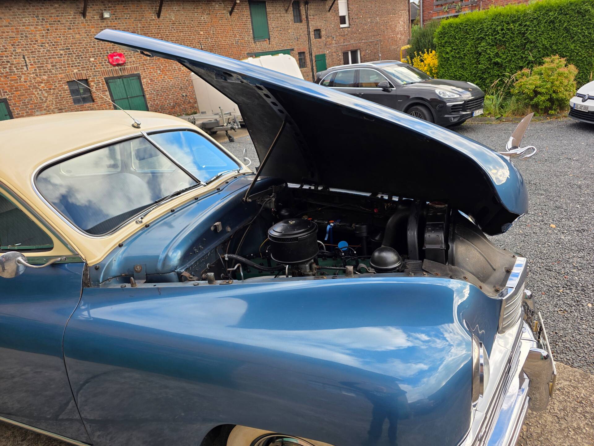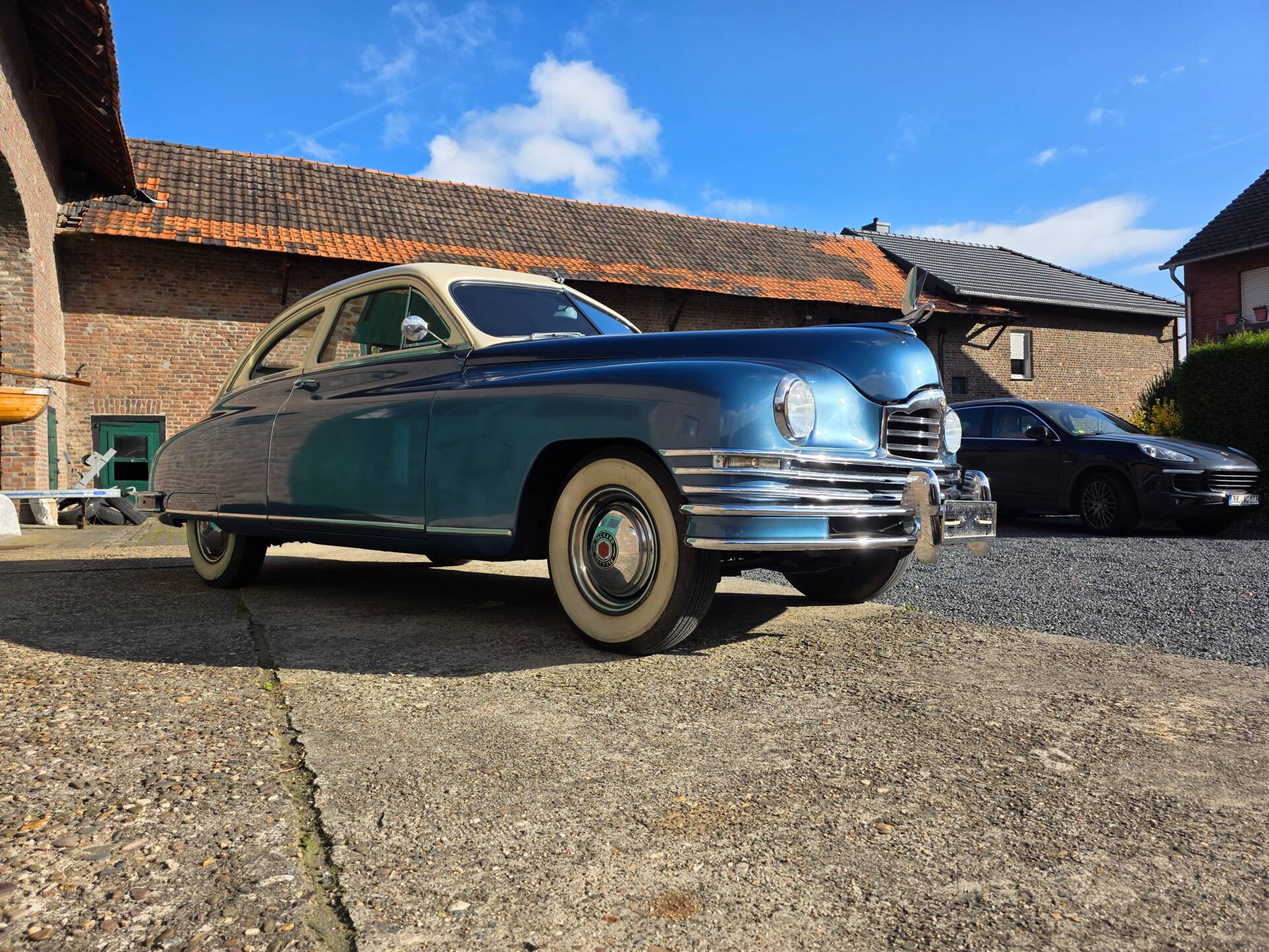 Wunderschöner PackardDeLuxe Eight Club Sedan aus 1948. Dieser imposante Packard ist auf europäischen Straßen eine Rarität. Sein Reihen-Achzylinder mit 4,7 l Hubraum läuft sehr schön und wurde vor nicht langer Zeit überholt. Offenbar ist dieser fast 80 Jahre alte Packard ungeschweißt.