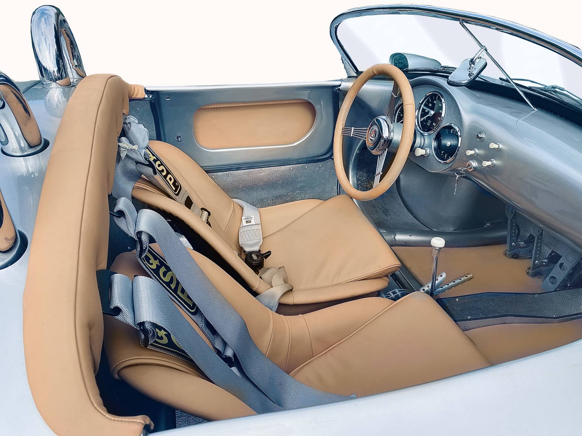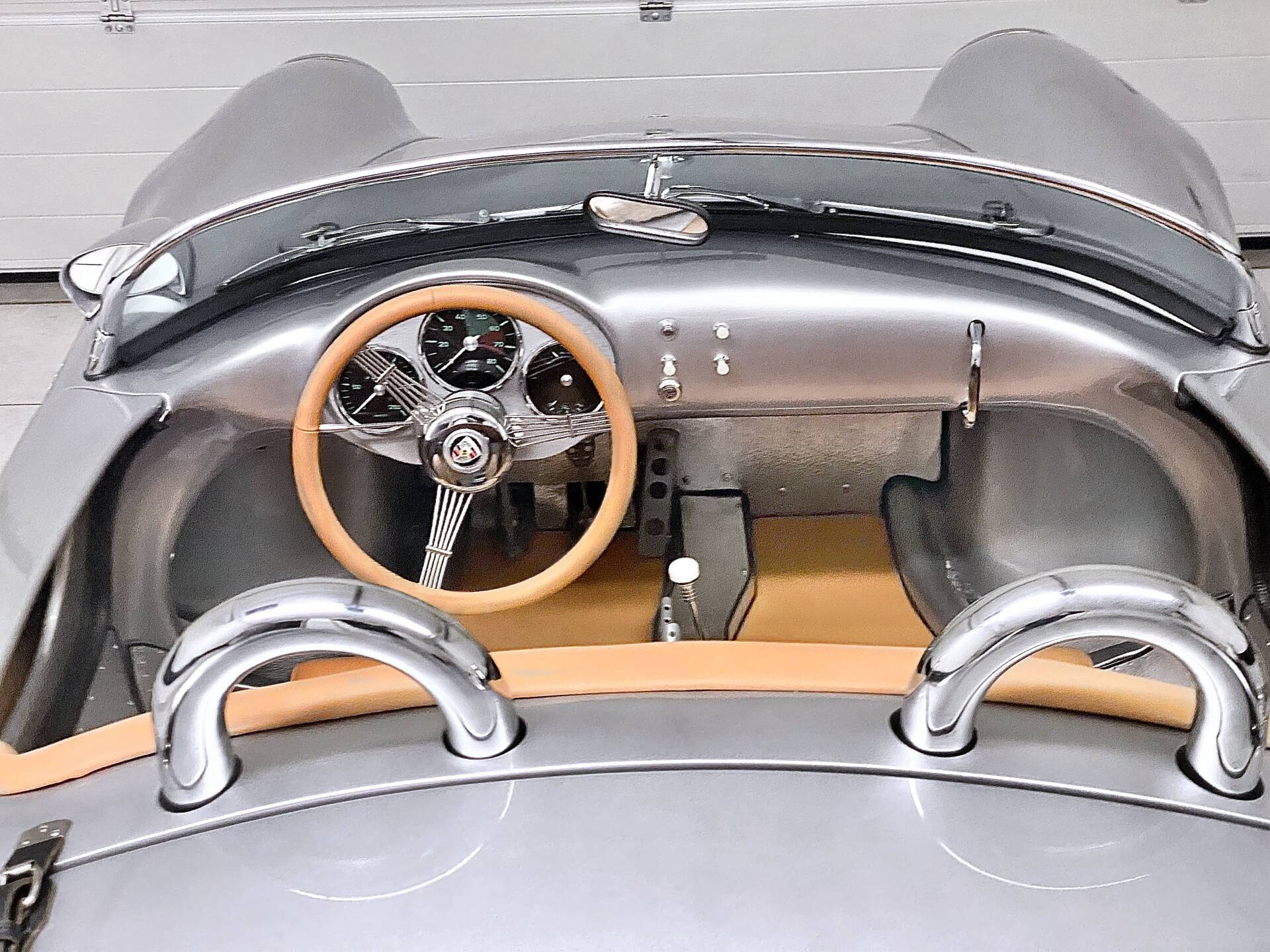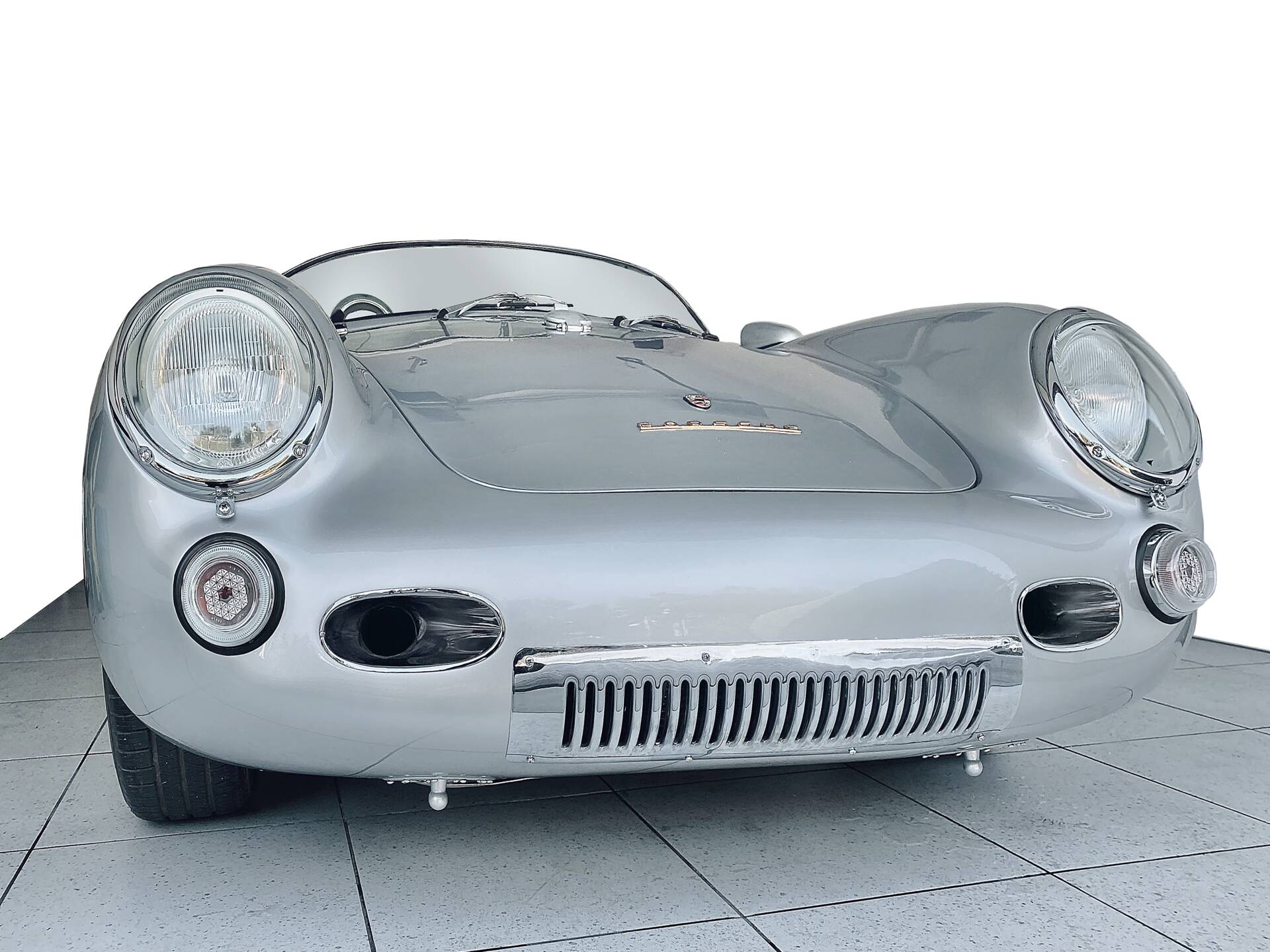 Einmaliger Porsche mit echten Porsche Racing Motor. Aufwendig für Euro 234.865, --€ neu aufgebaut aus Alu + GFK nach dem Original 550 Syder von 1954 . Mit Rammschutz, Unterflur Verkleidung in Aluminium sowie Echt Leder und Racing Gurte , zusätzliche 2 Lufteinlässe mit Ventilator zur MotorKühlung, Unterluft Einlass, Ölkühler usw. und vieles mehr . Einmalig in seiner Art. Kein gleichartiges Exemplar im Markt. Die Anbauteile gleichen dem Original zu 100 %. Eines der 50 bestehenden Originalverdecke von 1956 kann angebaut werden. Das Fahrzeug ist nicht mit billigen Replikas zu vergleichen. Es ist einzigartig auf dem Markt. Vor allen geeignet für private Porsche Sammlungen.