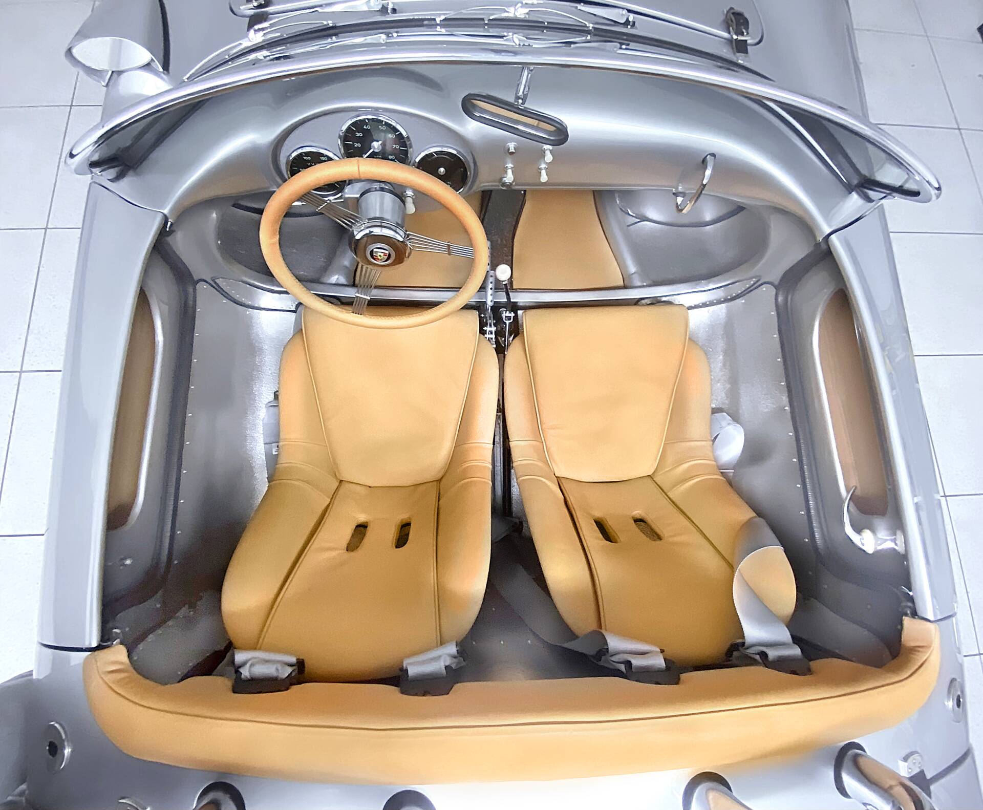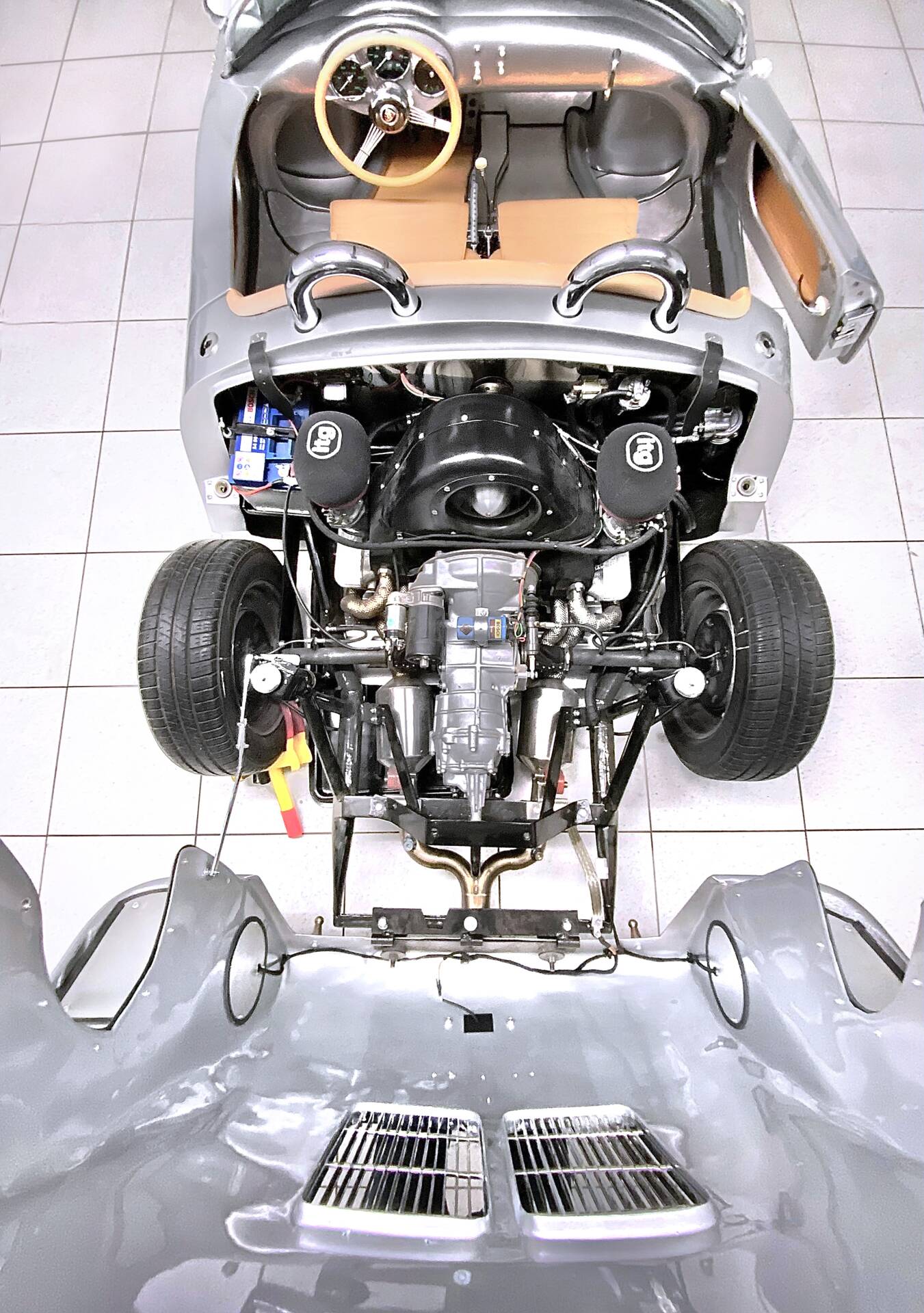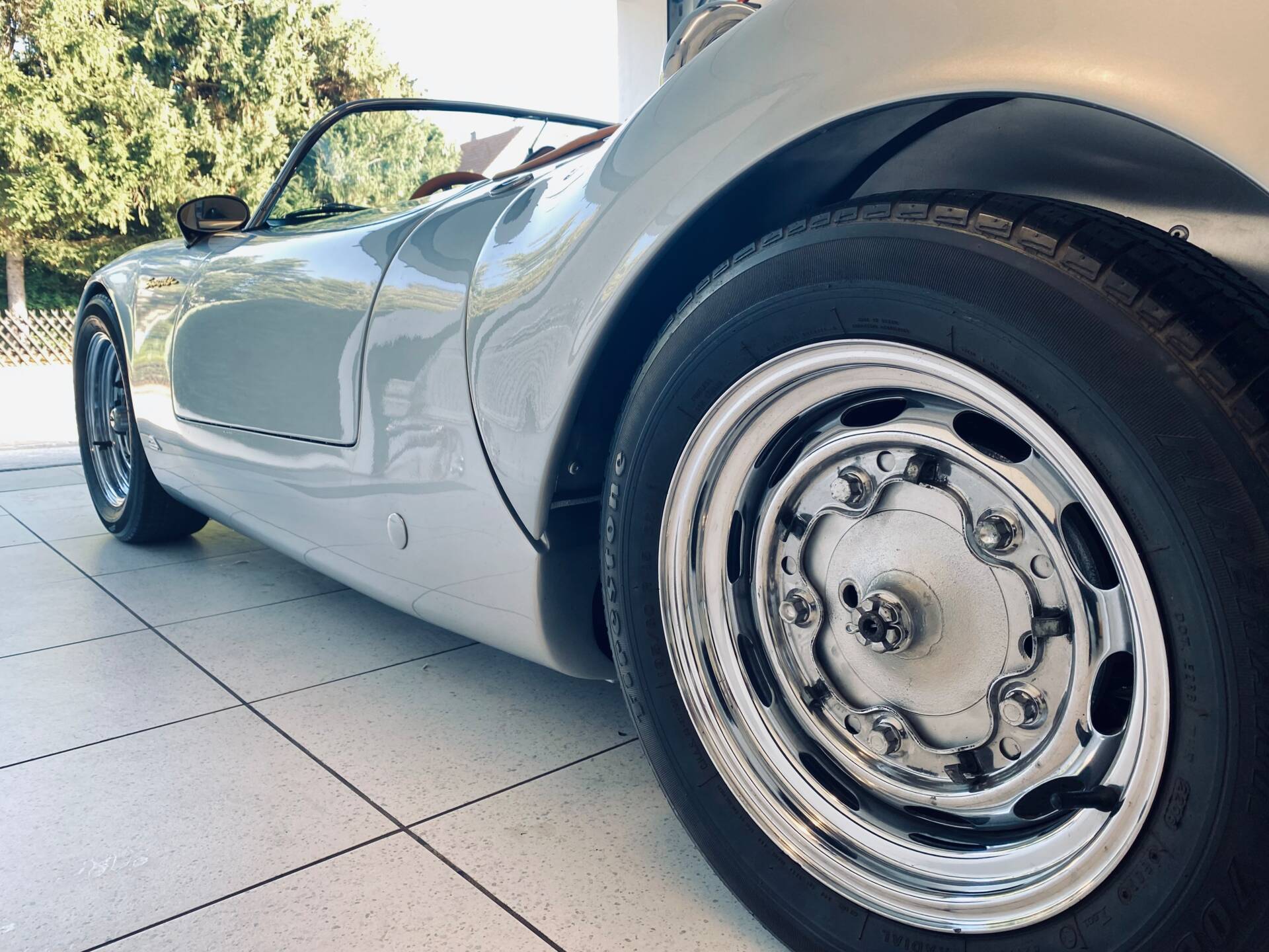 Einmaliger Porsche mit echten Porsche Racing Motor. Aufwendig für Euro 234.865, --€ neu aufgebaut aus Alu + GFK nach dem Original 550 Syder von 1954 . Mit Rammschutz, Unterflur Verkleidung in Aluminium sowie Echt Leder und Racing Gurte , zusätzliche 2 Lufteinlässe mit Ventilator zur MotorKühlung, Unterluft Einlass, Ölkühler usw. und vieles mehr . Einmalig in seiner Art. Kein gleichartiges Exemplar im Markt. Die Anbauteile gleichen dem Original zu 100 %. Eines der 50 bestehenden Originalverdecke von 1956 kann angebaut werden. Das Fahrzeug ist nicht mit billigen Replikas zu vergleichen. Es ist einzigartig auf dem Markt. Vor allen geeignet für private Porsche Sammlungen.