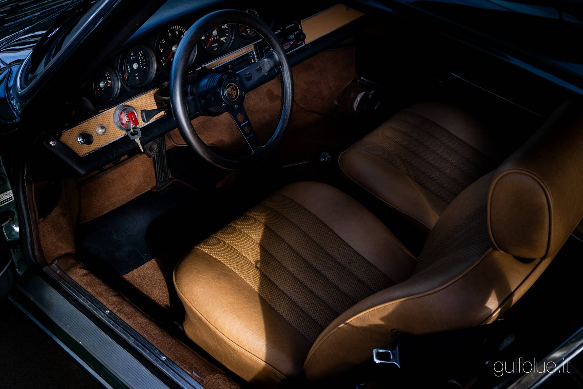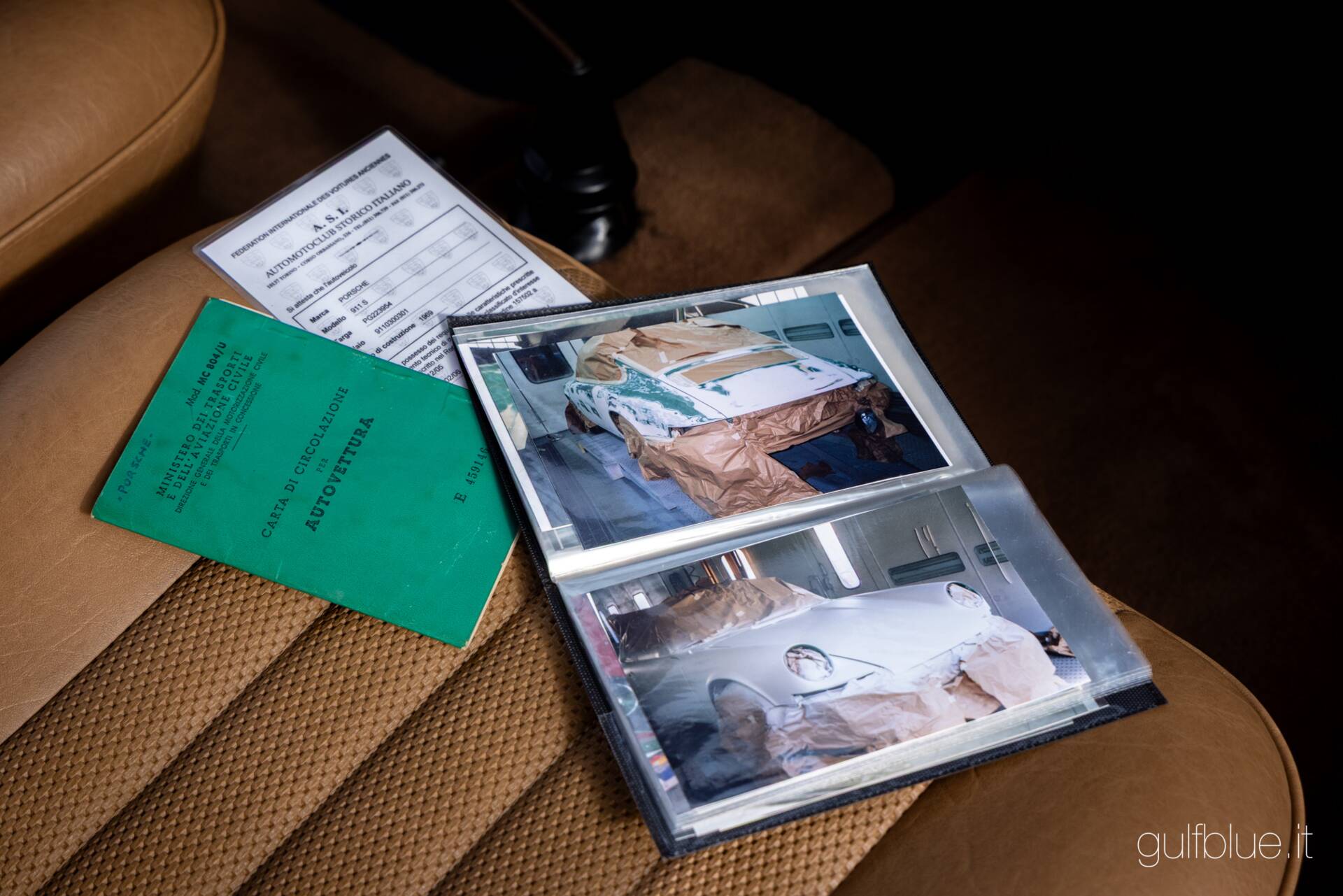 Never transformed, updated, or modified according to the fashions of the era when "old" 911s were usually converted to the more contemporary 3000 and 3200 versions, the car is today in excellent original condition. About twenty years ago, it underwent a general respray with the removal of damaged parts (documented with photos), the matching number engine was rebuilt by a well-known mechanic in Perugia, and the interior was reupholstered, now tan - a color combination also available - in place of the original black.