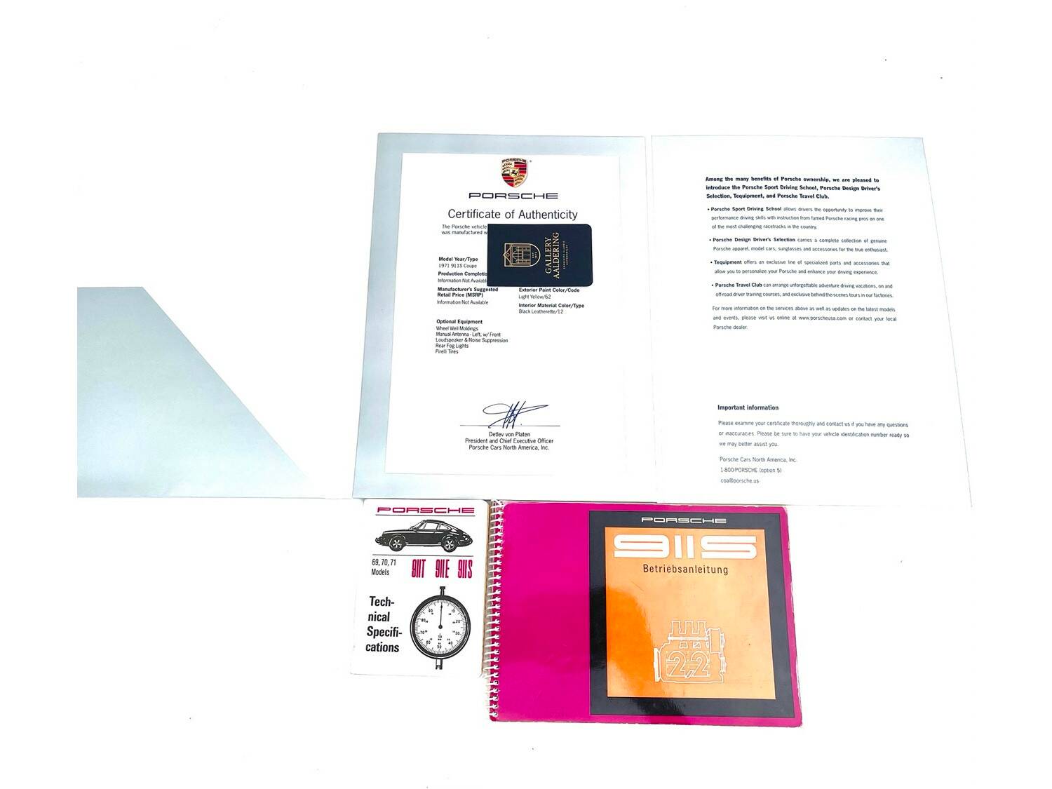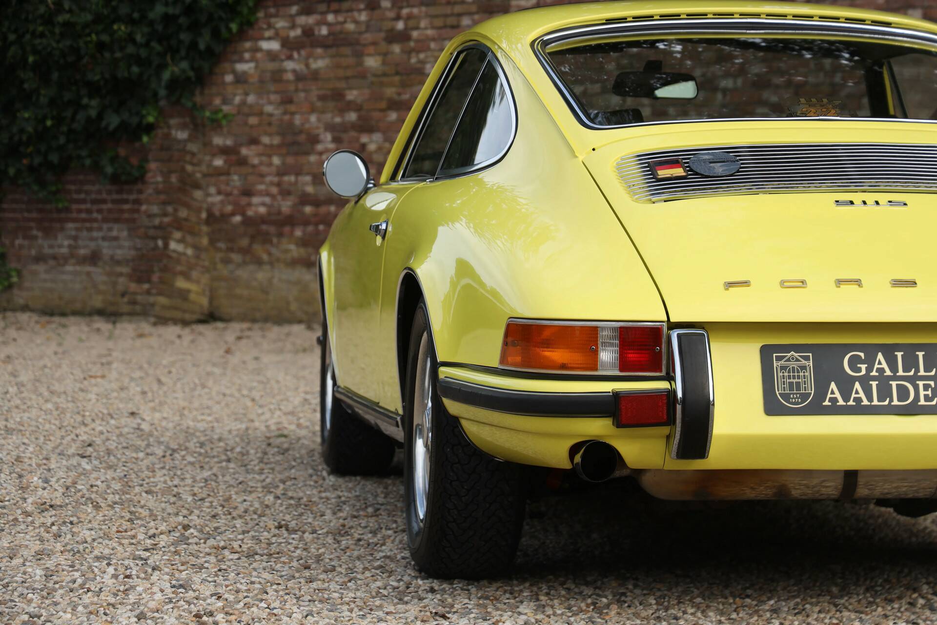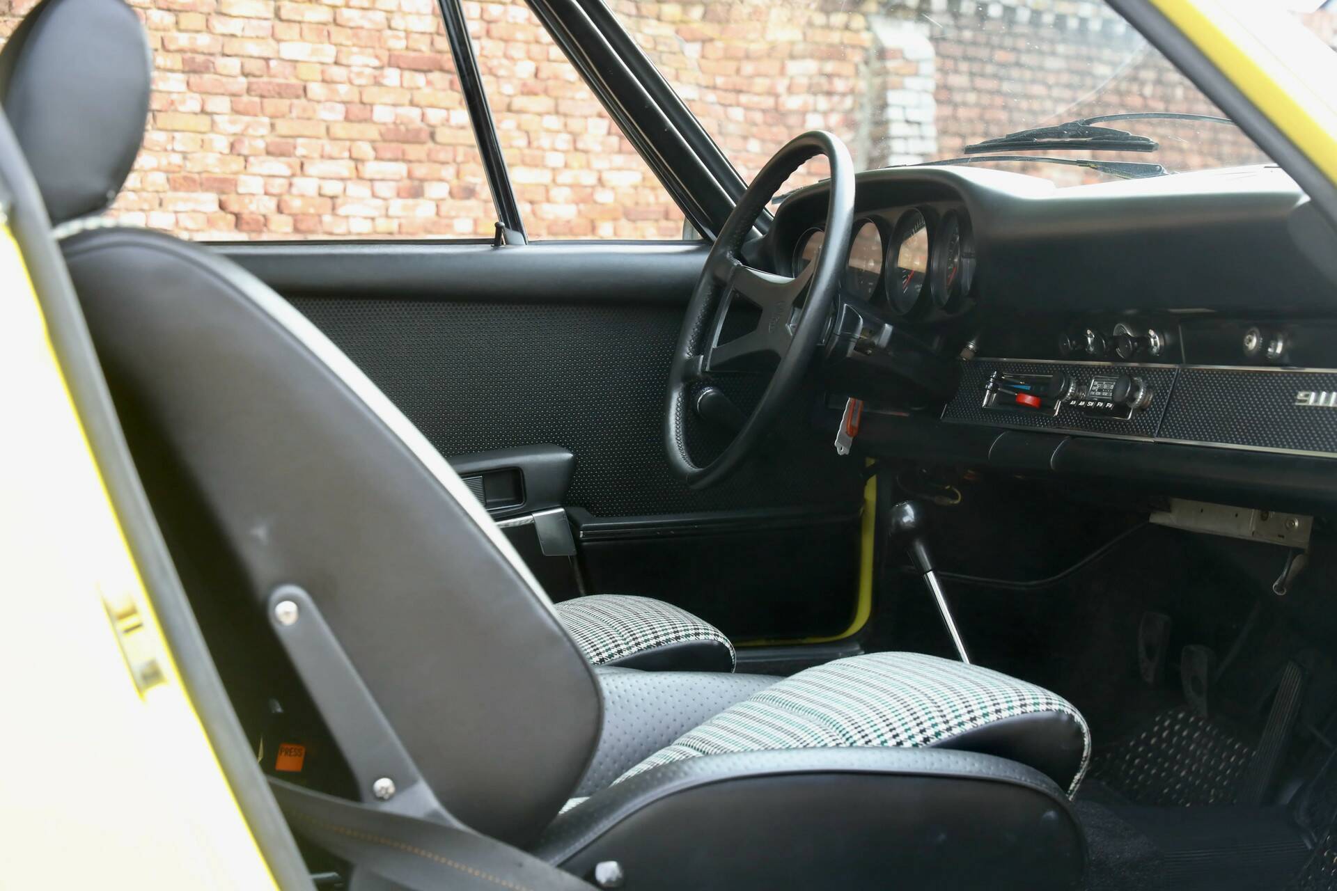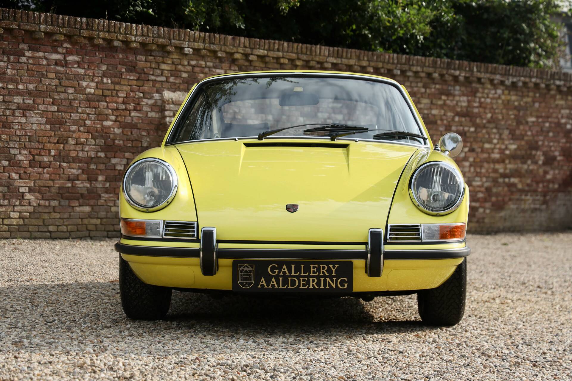 Porsche 911 S Coupe "Matching Numbers" Fantastic color combination - Light Yellow with Recaro seats "Pepita upholstery" in black, Highly desirable S version with powerful engine, Porsche "Geburtsurkunde" present, Restored to very good standards, Pristine condition, Offered with booklet and history-file, Delivered new in Germany, Equipped with factory sliding roof,