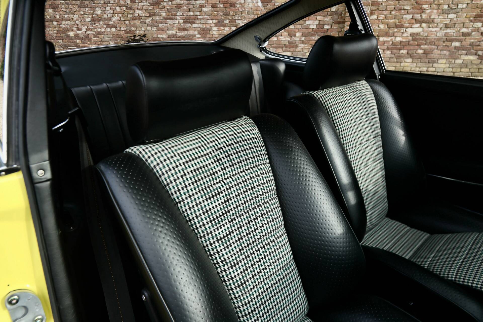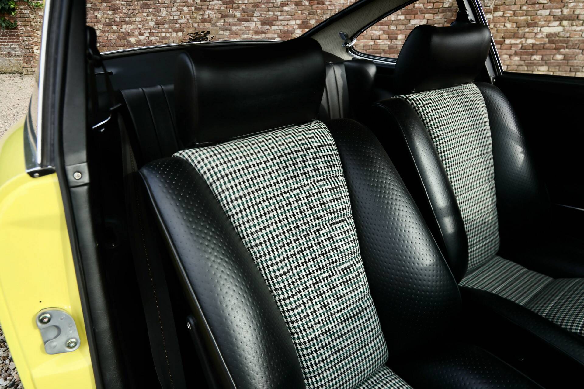 Man erkennt es auf den ersten Blick: Dies ist kein gewöhnlicher 911. Es handelt sich um den 911 S aus dem Jahr 1971, präsentiert in einer großartigen Farbkombination: Hellgelb mit dem seltenen Pepita-Stoff in Schwarz. Ein ikonisches Muster auf den Recaro-Sitzen, das umso reizvoller wirkt, je länger man es betrachtet. Zudem wurde dieser Porsche ab Werk mit einem Schiebedach ausgeliefert. Das rundet nicht nur das Gesamtbild ab, es perfektioniert es.