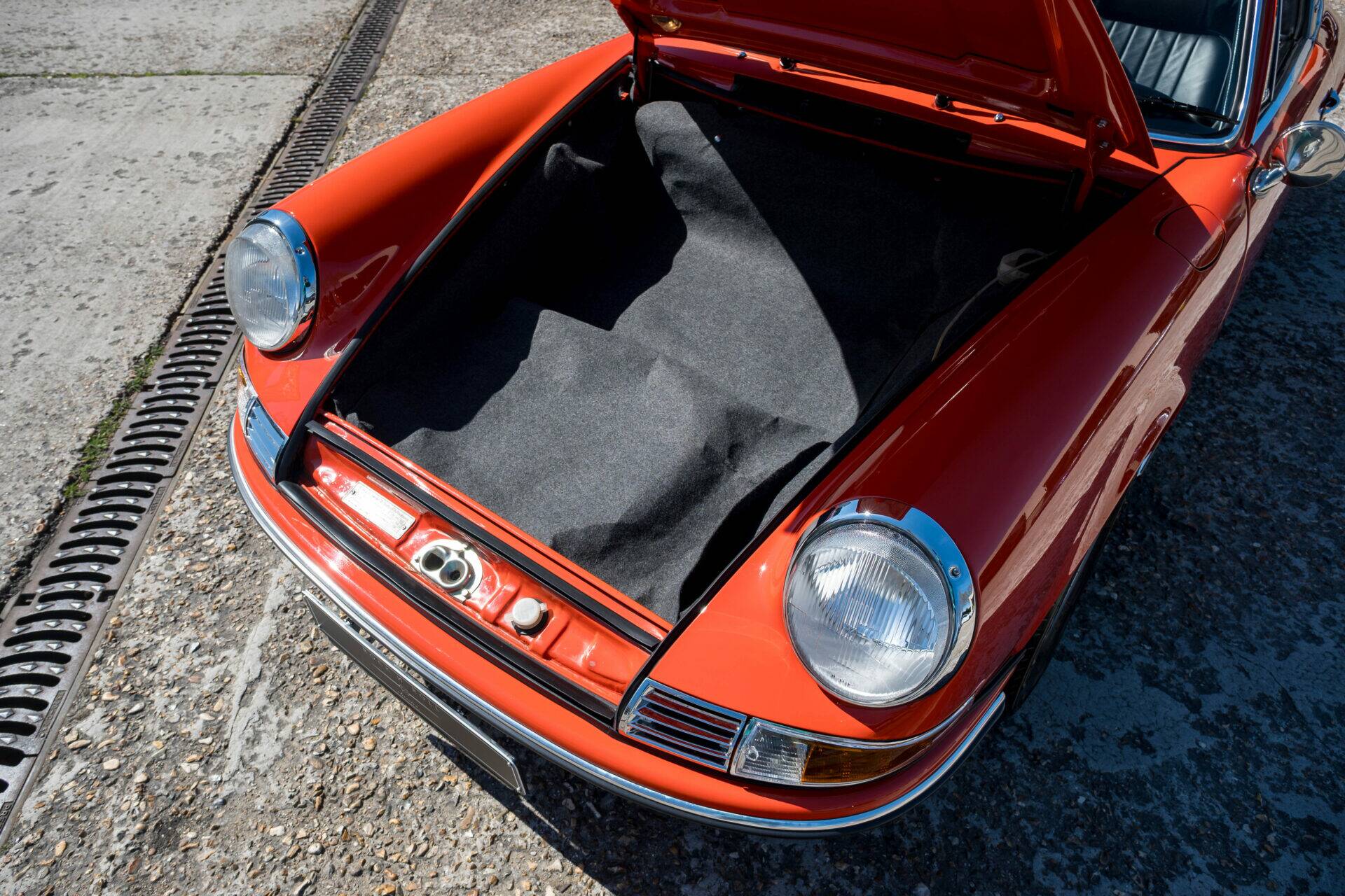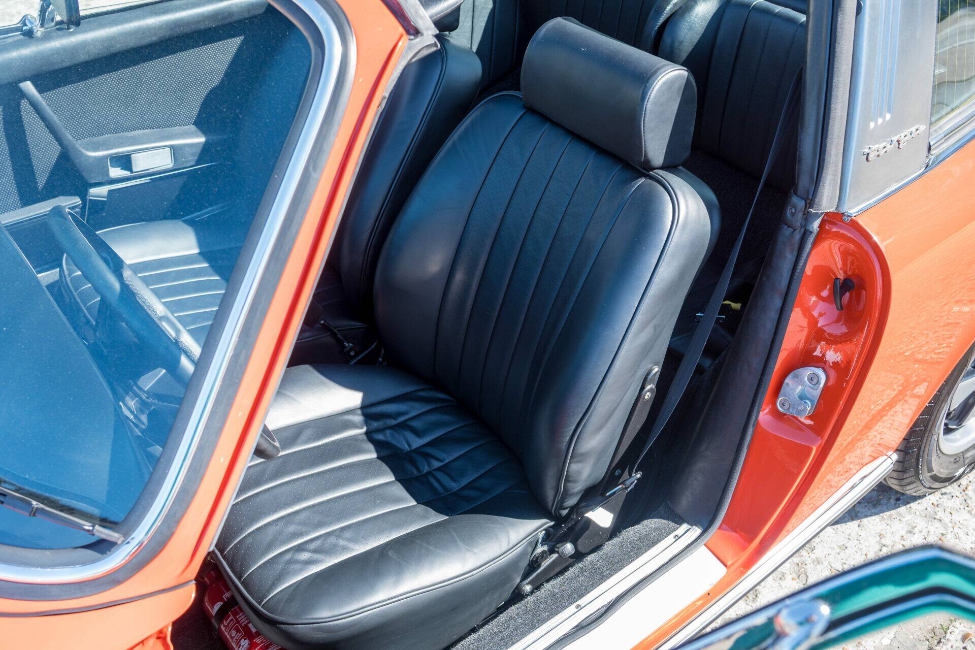This 1971 Porsche 911 2.2 T Targa was fully restored over a period of 6 years, and it shows immediately. This was not a quick refresh, but a thorough and well-executed rebuild where everything was addressed as it should be. The body was completely redone and is today in exceptionally solid condition. The paint, finished in the original Blut Orange, has a deep and consistent shine that suits the car perfectly. Mechanically, nothing was left to chance. The gearbox was rebuilt, the engine was overhauled, the clutch replaced, the exhaust system renewed and the entire braking system rebuilt. Everything operates exactly as it should and feels coherent throughout. This is a car that inspires confidence from the moment you start driving it. Within the range, the T version is without doubt the most enjoyable to drive. Less nervous than an S, less dependent on high revs, but therefore smoother and more accessible. The engine delivers its power in a linear way, with strong low-end torque, making it ideal for long drives, winding roads and effortless enjoyment. More recently, additional investments were made to bring the car fully up to standard. Over €10,000 was spent, including a full restoration of the Targa roof, replacement of the cooling system and a major service. Numerous seals, rubbers and gaskets were also renewed. Today, this 911 is completely ready. No work required, no uncertainties, simply get in and drive.