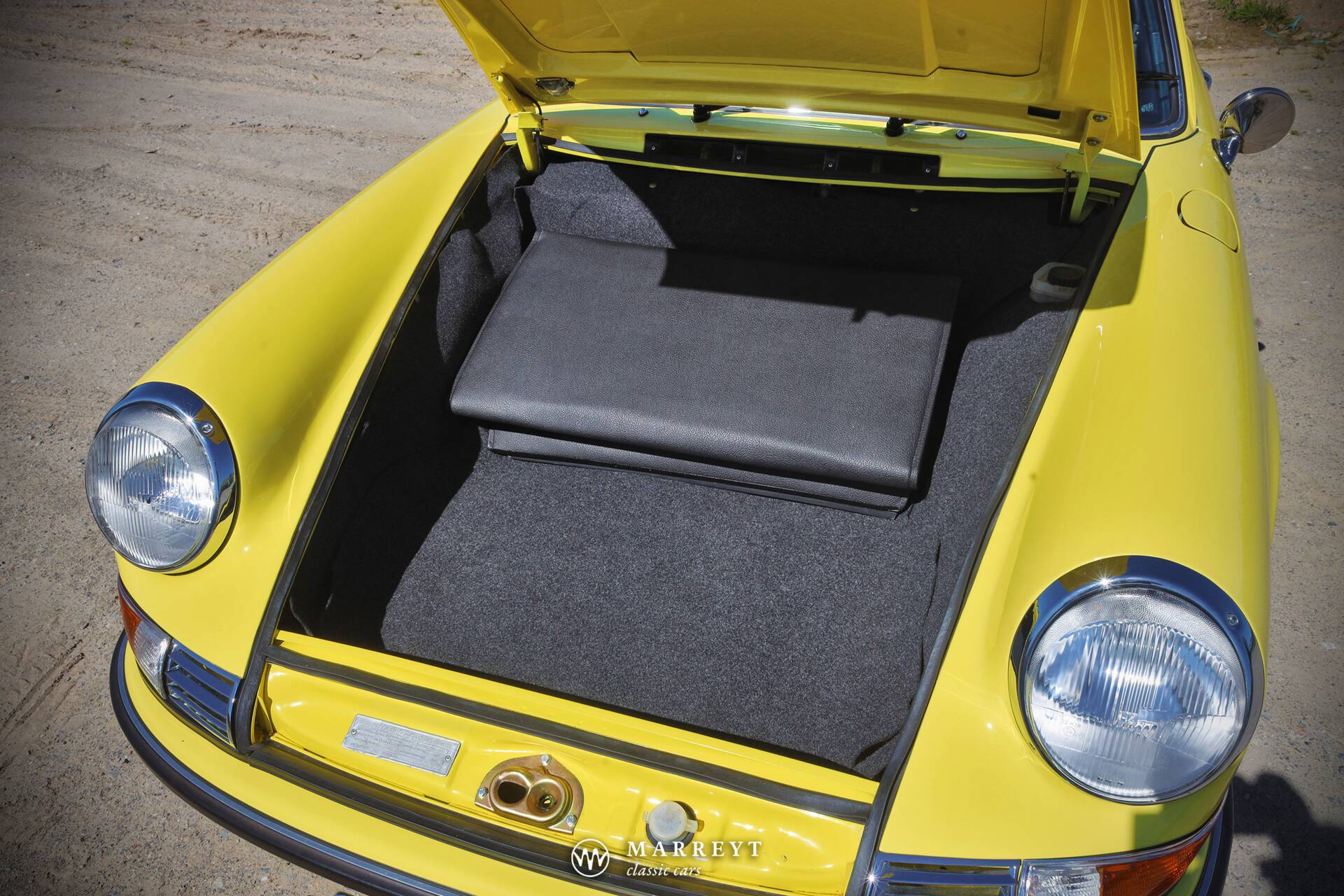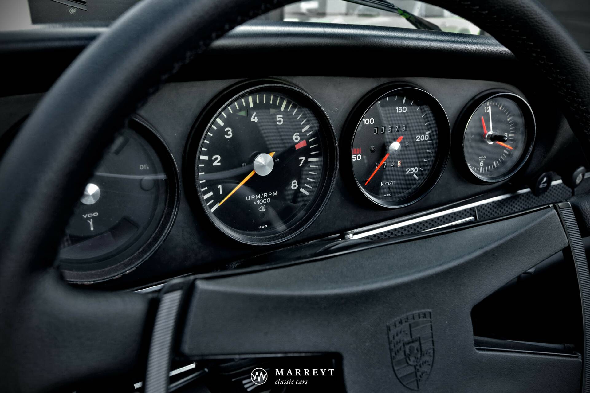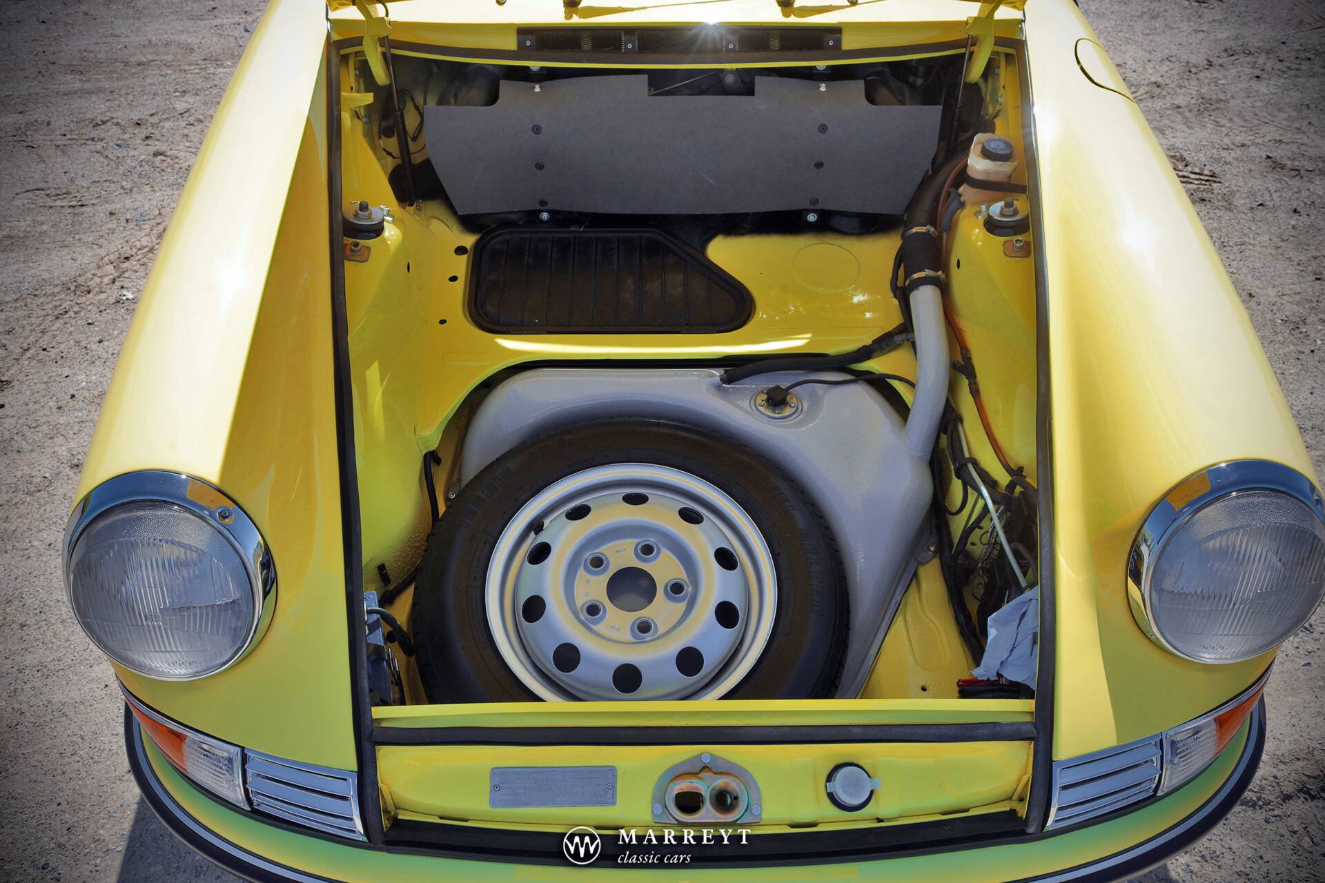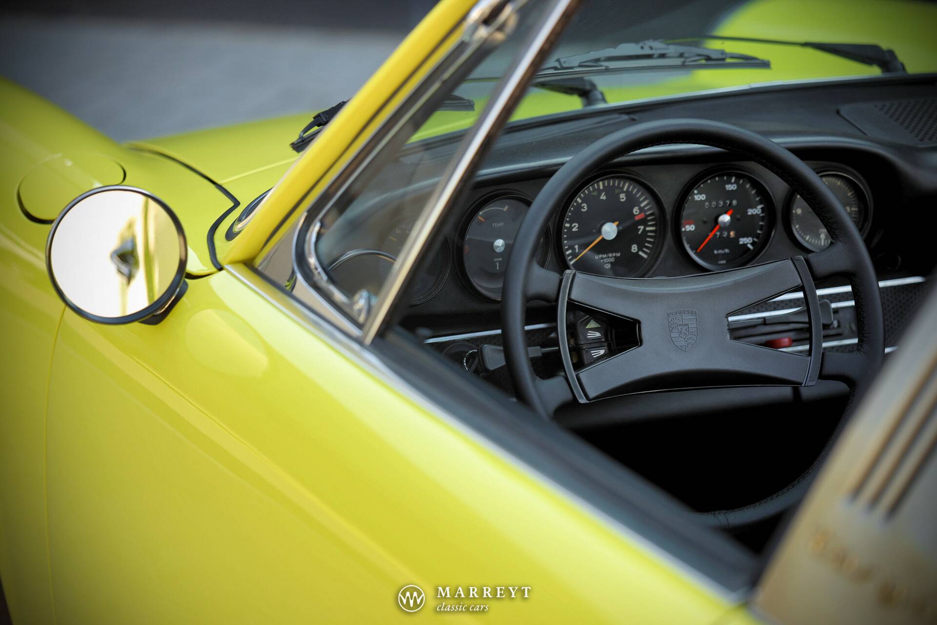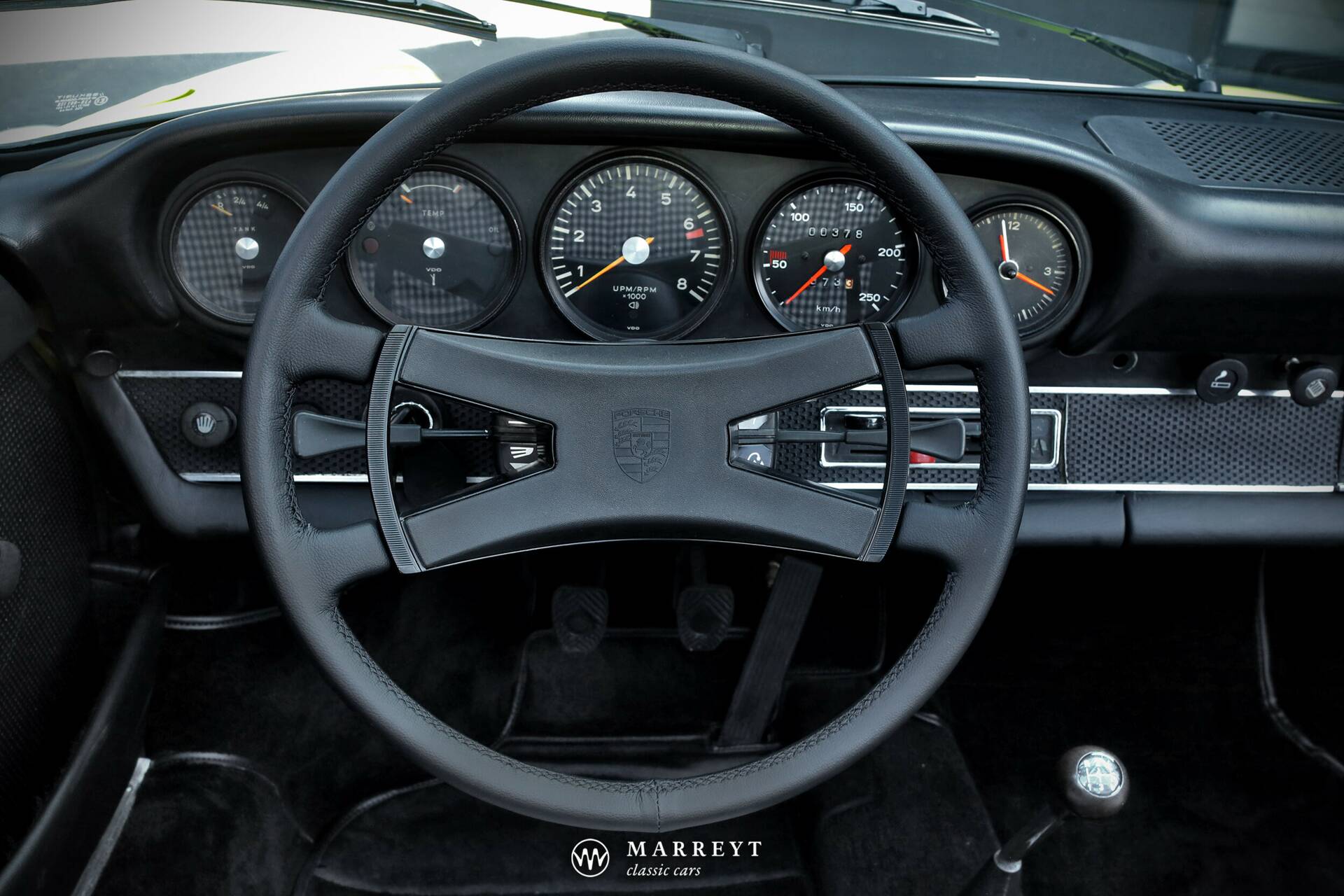 This example was fully restored ten years ago by Franky’s Speciaal Garage and has covered only about 400 kilometres since. The engine runs cleanly, the five‑speed gearbox shifts precisely and the car feels fresh throughout. It retains its matching numbers and comes with the Porsche Certificate of Origin. Delivered new in the USA, it now wears Light Yellow, though it originally left the factory in Smyrna Green.