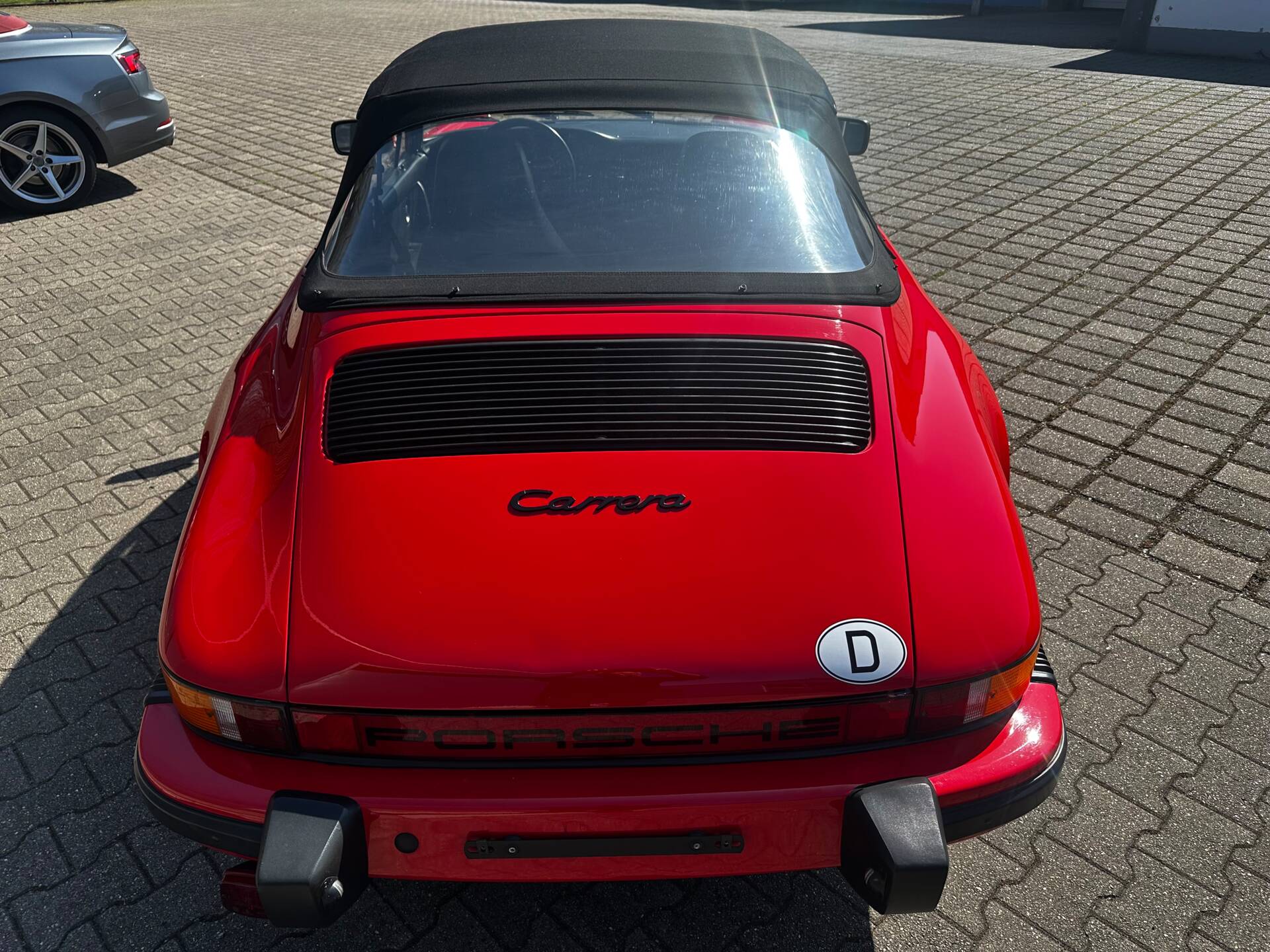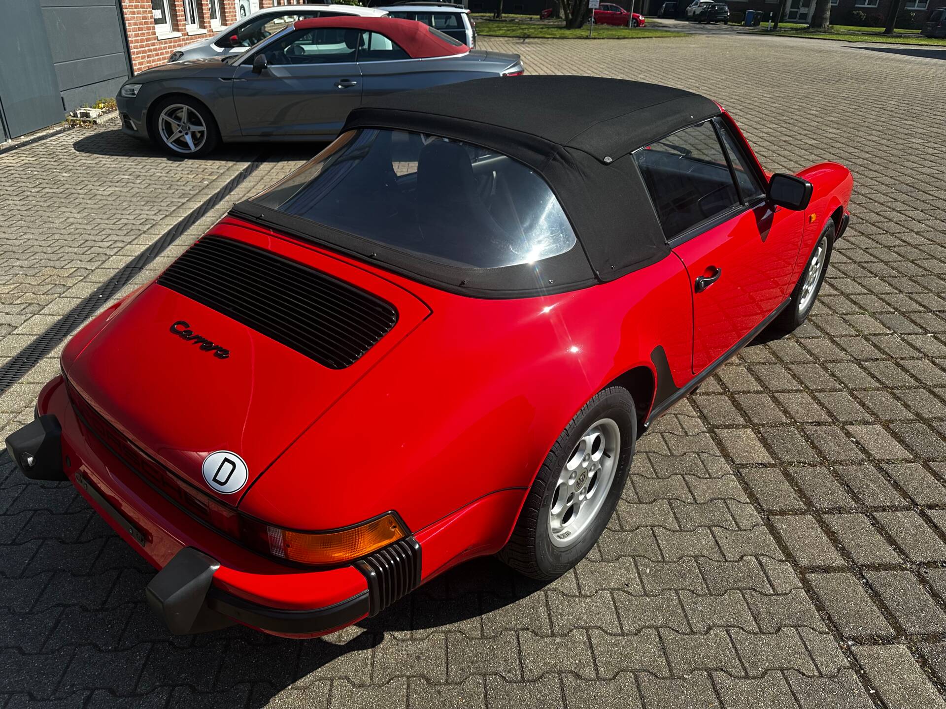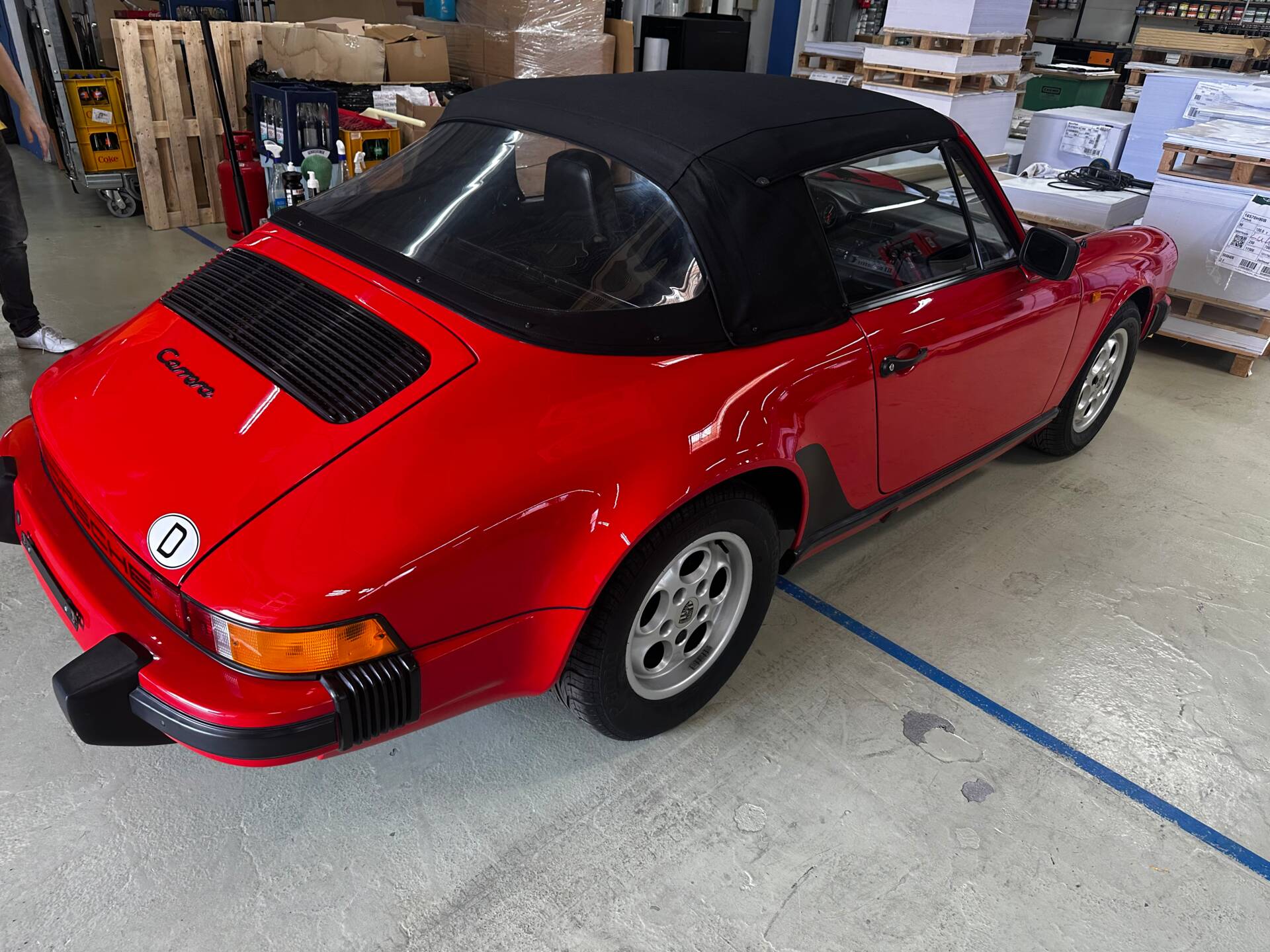 I am offering you a 911 convertible from 1984. The car was purchased from a local business owner. He only drove the car on special occasions. As he got older, he drove it less and less often. After his death, the 11 stood in a storage facility for over eight years and was no longer used. Now, some of his vehicles have been sold, and I have gently brought this one back to life. It received a new fuel pump, and the injectors were cleaned. A new battery was installed and the first slow lap was completed.