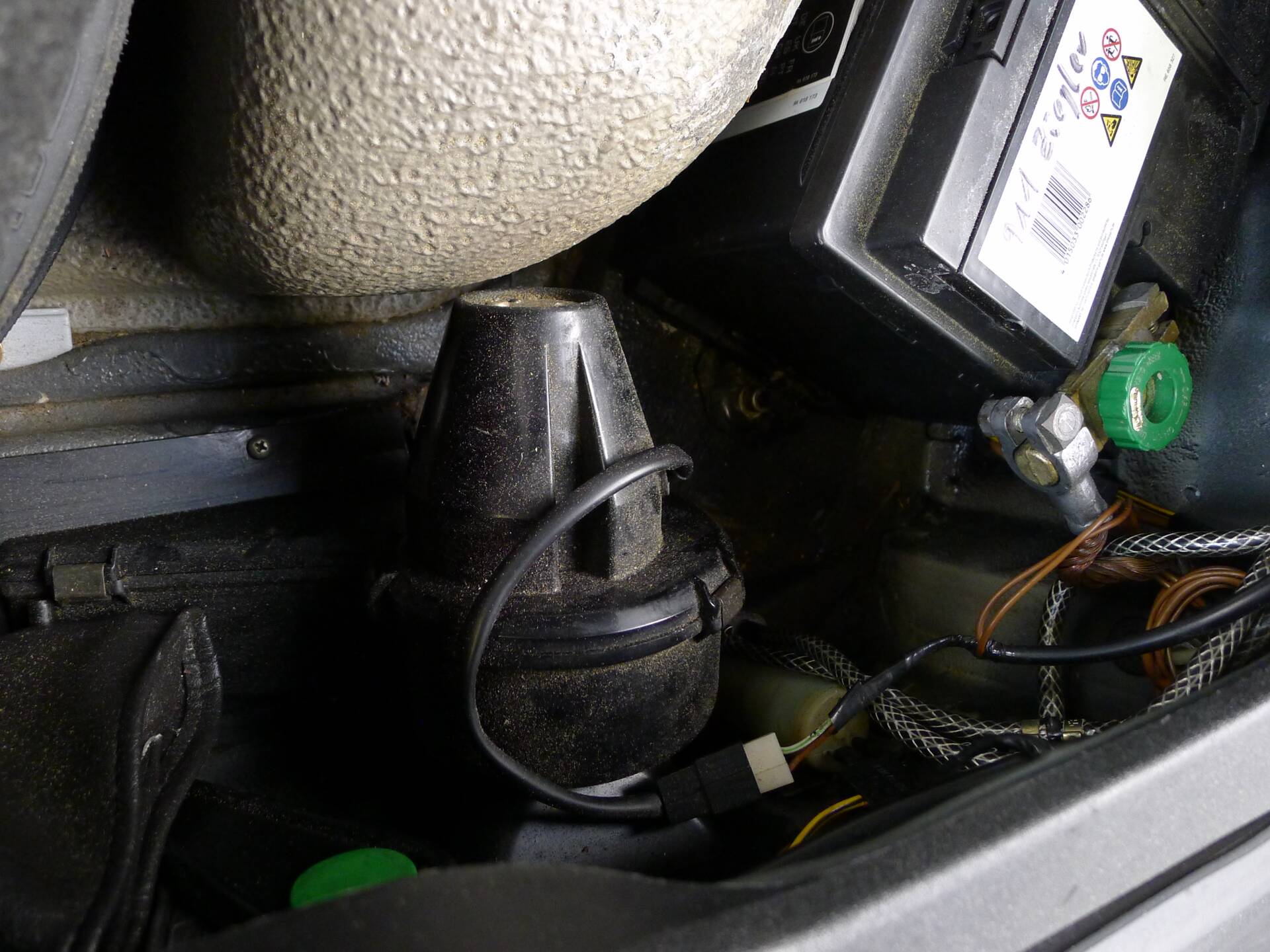 Das manuelle Verdeck wurde bereits erneuert, das Auto ist rost- und unfallfrei und bis auf die Fronthaube und den Windlauf im Erstlack.