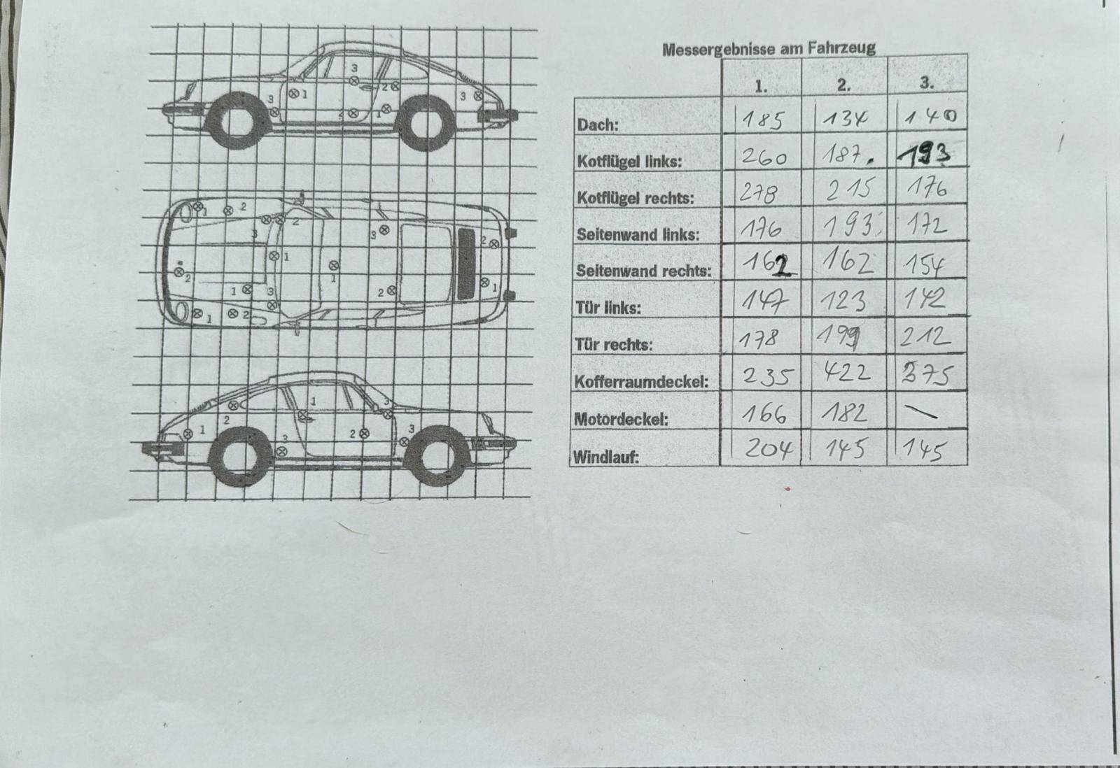 - Lackmessprotokoll liegt vor- Siehe Bilder. Es gibt keine Anzeichen auf Nachlackierungen. Die Haube könnte demnach einem nachlackiert worden sein aufgrund von Steinschlägen.