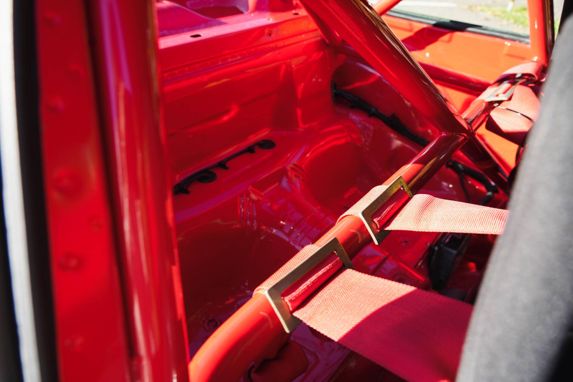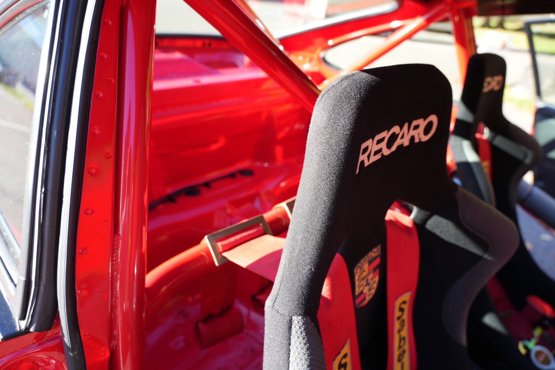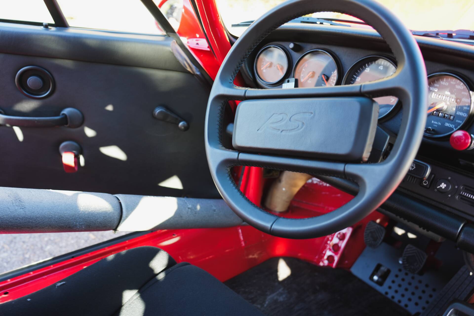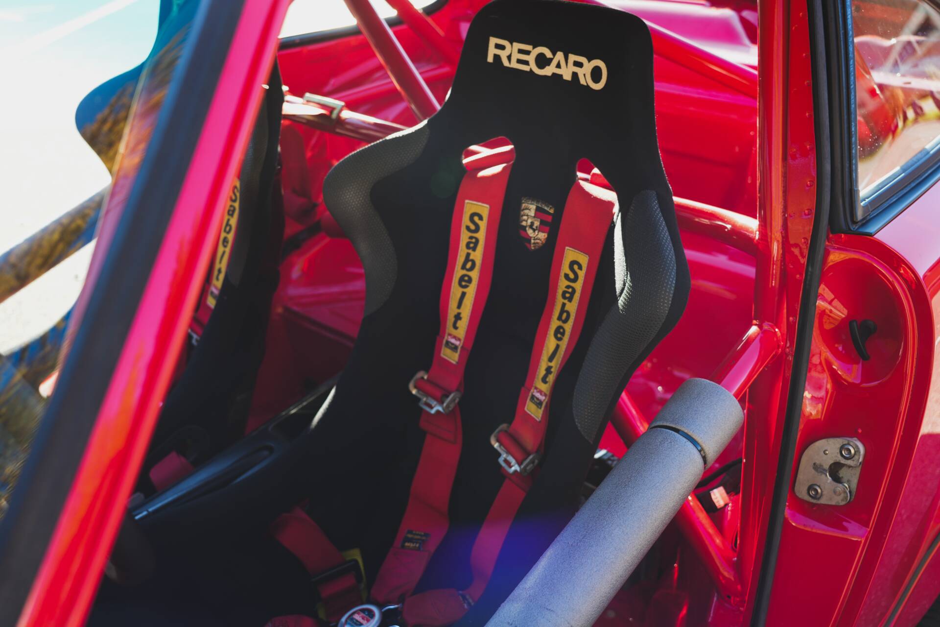 Der N/GT ist ein echter Rennwagen mit Strassenzulassung: Leichtbau, kein Komfort, dafür absolute Präzision. Der Innenraum ist auf das Wesentliche reduziert – Recaro-Vollschalensitze, Überrollkäfig, 6-Punkt-Gurte, Feuerlöscher und Batterie-Hauptschalter sind serienmässig. Das straffe Fahrwerk, die grosse Bremsanlage vom 964 Turbo und das Gewicht von nur rund 1.220 Kilogramm sorgen für ein unmittelbares, unverfälschtes Fahrerlebnis.