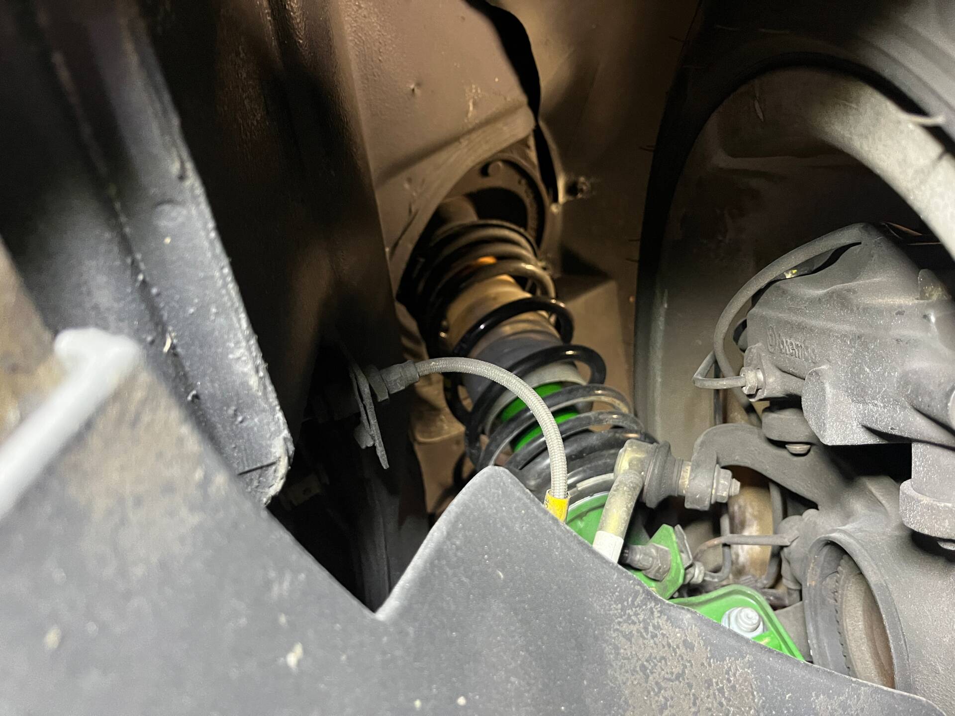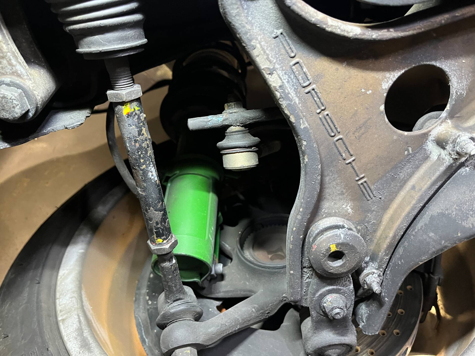 • Fahrwerk : Die Vorder- und Hinterachse mit Achslenkern und Leitungen zeigen sich in gutem Zustand. Die Feder-und Dämpferelemente sind neu.