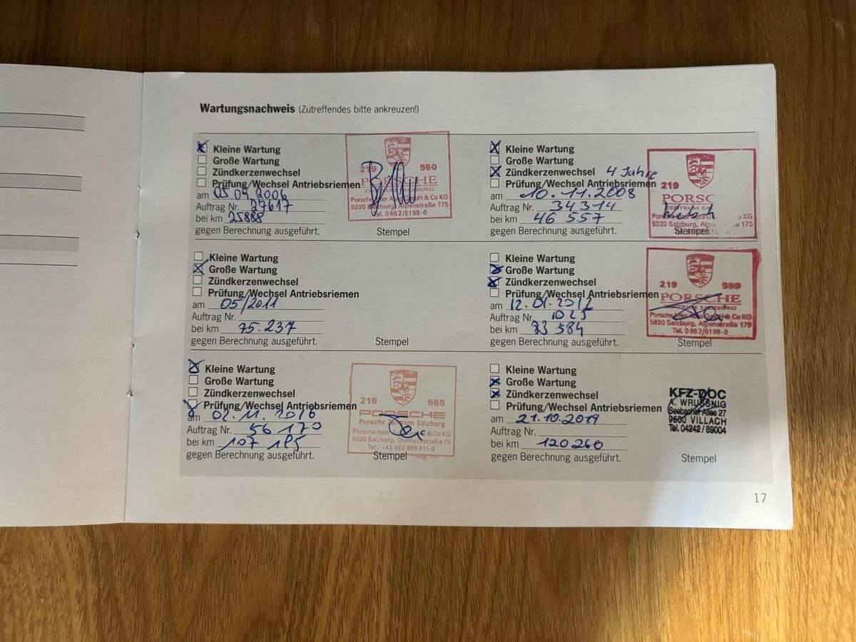 3. Bremsleuchte, Airbag Fahrer-/Beifahrerseite, Antriebsart: Heckantrieb, Anzeigeinstrumente mit Hintergrund silber, Außenspiegel elektr. verstell- und heizbar, beide, Bi-Xenon-Scheinwerfer, Bordcomputer, Bremsanlage verstärkt, Dachhimmel Alcantara, Heckscheibe heizbar, Innenraumfilter: Aktivkohlefilter (Geruchsfilter), Isofix-Aufnahmen für Kindersitz an Beifahrersitz, Karosserie: 2-türig, Klimaautomatik, Koffer- und Motordeckelentriegelung elektrisch, Kopf-Airbag-System Porsche Side Impact Protection System (POSIP), Lenkrad (Sport/Leder, 3-Speichen), Lenksäule (Lenkrad) verstellbar, LM-Felgen, Motor 3,8 Ltr. - 261 kW KAT, Nebelschlussleuchte, Porsche Active Suspension Management (PASM), Reifen-Reparaturkit, Seitenairbag vorn, Sitzbezug / Polsterung: Teilleder, Sound-Package Plus, Verglasung getönt