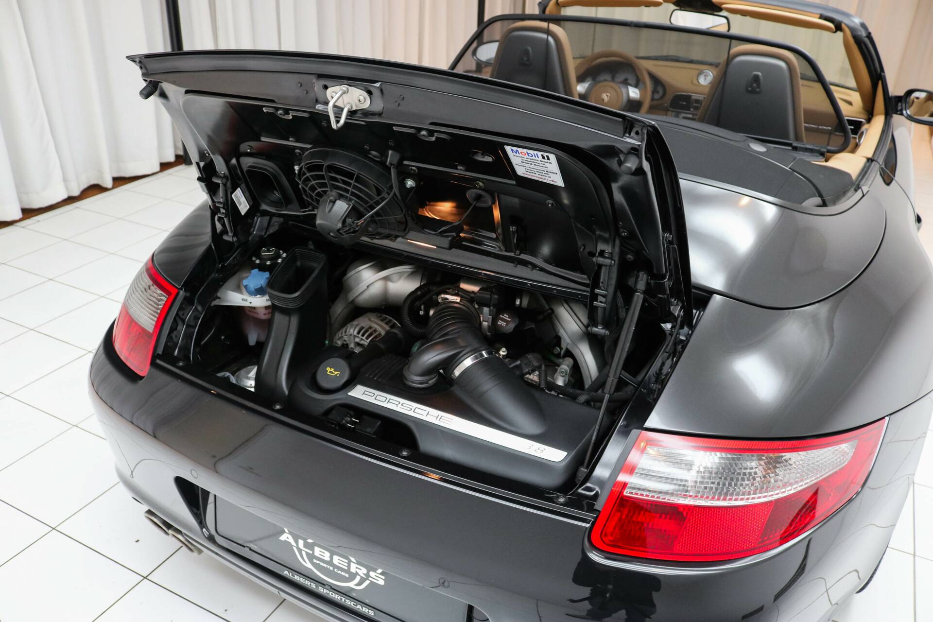 Dieser 997.1 Carrera S Cabriolet ist mit dem originalen 3,8-Liter-Sechszylinder-Boxermotor mit 355 PS ausgestattet. Die Kraft wird über ein manuelles Getriebe übertragen, was ein reines Fahrerlebnis garantiert. Der Motor läuft einwandfrei, das Schalten erfolgt geschmeidig, und das Fahrverhalten entspricht genau dem einer echten 911.