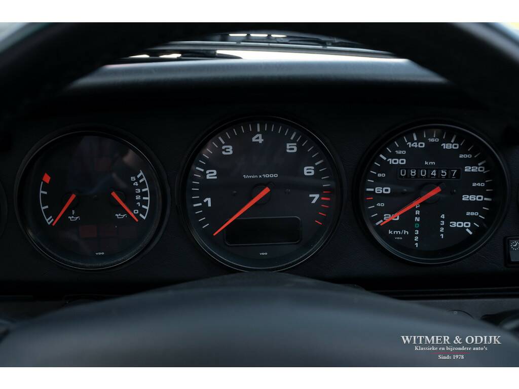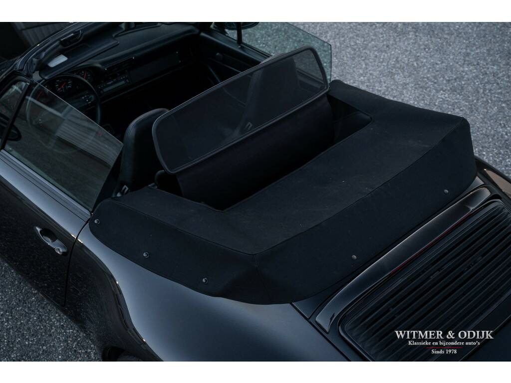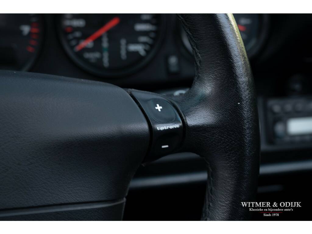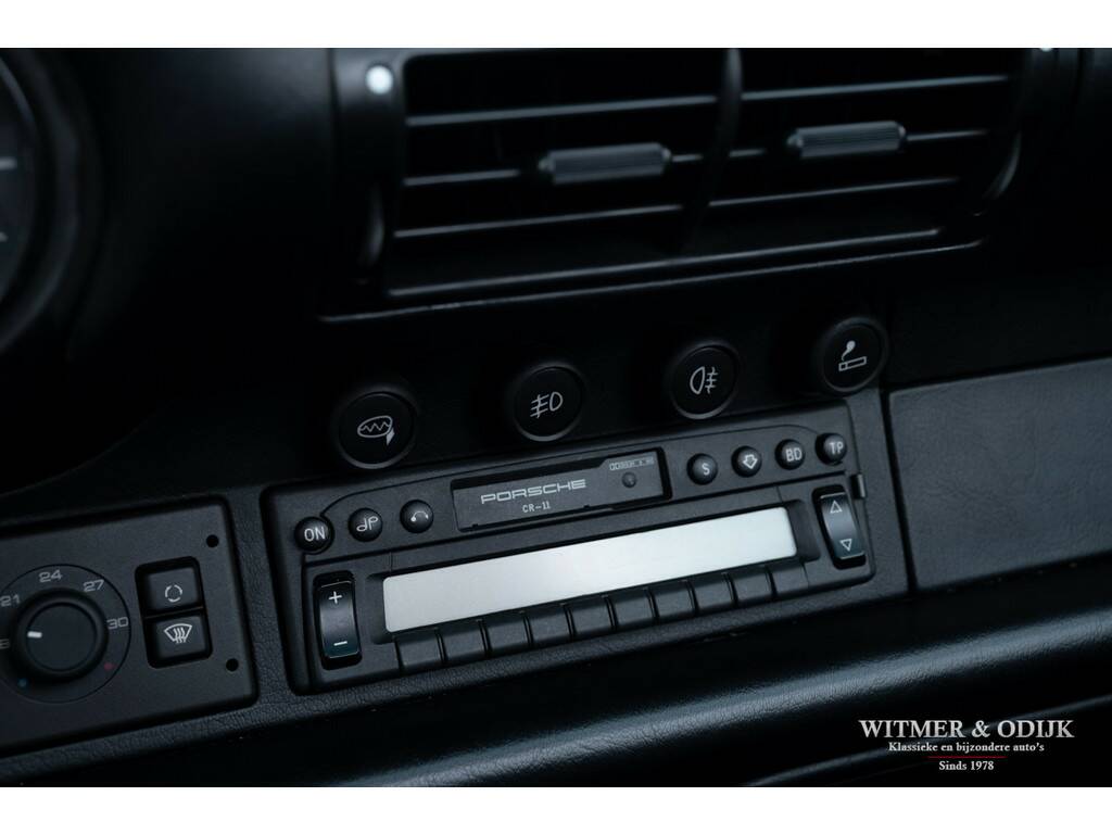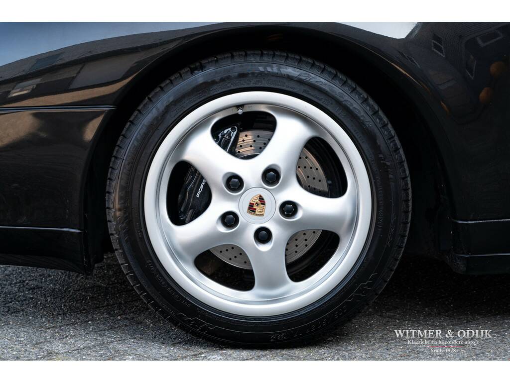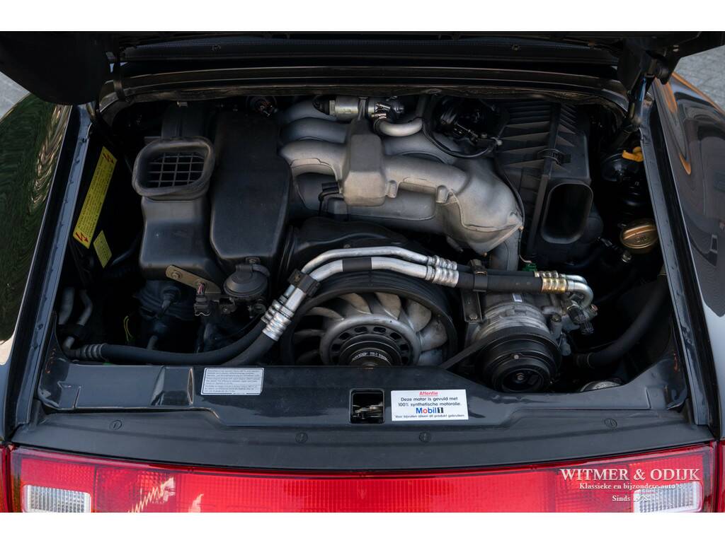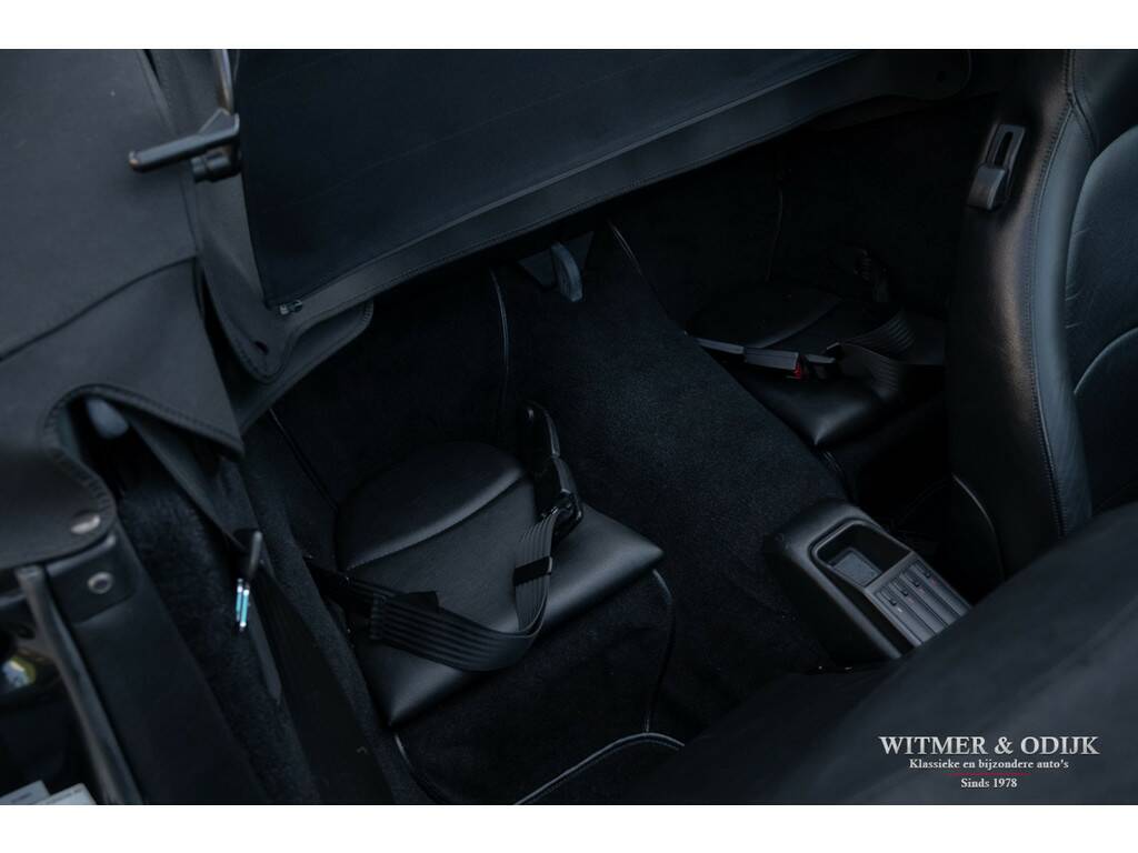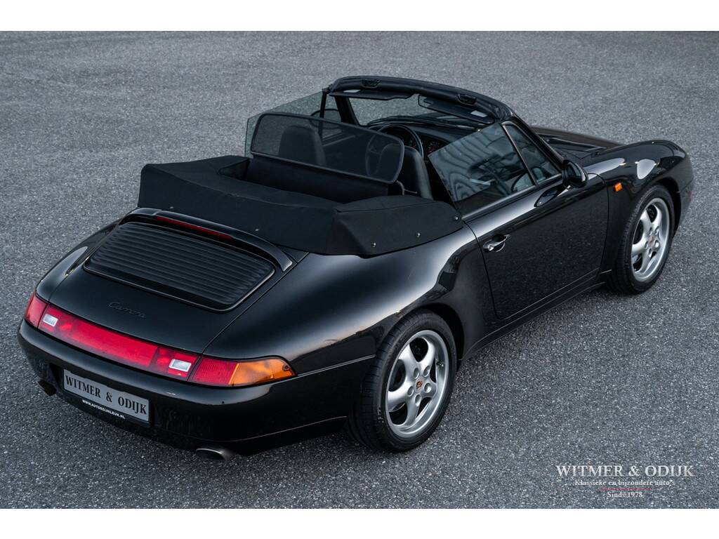 Porsche's perfectionering van de luchtgekoelde 911 is de in 1993 geintroduceerde 993. Van een ongeëvenaarde bouwkwaliteit, geweldige rijeigenschappen en dankzij de luchtgekoelde boxer een motorsound die de beleving optimaliseert. De Porsche liefhebber kent de positieve eigenschappen van de 993 maar al te goed en dat maakt dit type een zeer gezochte. Met name de zeldzame cabrioletversie heeft inmiddels een klassieker status die de waardeontwikkeling doet opstuwen. De rijeigenschappen zijn overigens zeker niet klassiek te noemen. Deze zeer precies sturende en van multilink wielophanging voorziene 911 laat zich controleren als een moderne auto die op rails lijkt te rijden. Met 285pk, dit is een exemplaar uit de tweede serie met de sterkere Varioram motor, op de achterwielen beleeft u sportief het mooiste van vrij autorijden. Genieten pur sang. Als de auto u dan als gevolg van goed onderhoud zorgeloos laat genieten en als nieuw rijdt is de pret dubbel zo groot. Dit zeldzaam mooie, complete en zorgvuldig gebruikte exemplaar is een investering met fun-factor. Er zijn slechts 17.900 cabriolet's van dit type gebouwd. In fraai strak en stijlvol Black Metallic met eveneens zwarte cabrioletkap en dito leer mag, gezien de bijzonder aantrekkelijke kilometerstand, met recht een bijzondere en zeldzame auto genoemd worden. En dat is dan weer goed voor de waardeontwikkeling. Leuker kan ik het niet maken. Compleet uitgevoerd; er zijn o.a. elektrische stoelverstelling links en rechts in hoogte verstelbaar, stoelverwarming, Tiptronic-S automatische versnelling met desgewenst stuurbediening, elektrisch cabriodak, originele Porsche CR11 radio/cassette, centrale deurvergrendeling met afstandsbediening, climat control, boordcomputer, 17 inch Porsche lichtmetalen velgen, windscherm, etc. In strak Black Metallic uitgevoerde carrosserie waarop geen krasje of zichtbare steenslag te bekennen is. Ook de bumpers zijn vrij van parkeerbeschadigingen. Goed doorzichtige achterruit in een cabrioletkap zonder beschadigingen. Deze 993 Cabriolet heeft een fraai originele uitstraling. Het betreft uiteraard een 993 die altijd schadevrij is gebleven. Het interieur verdient een bijzondere vermelding, een 993 is geen jonge auto en toch is het interieur vrij van zichtbare gebruikssporen. Dit is uiteraard afhankelijk van de wijze waarop deze auto werd gebruikt en de aantrekkelijk lage kilometerstand. Mooi soepel en sterk leer op de stoelen, er is ook geen slijtage aan de instapzijde van de linkerstoel. Alles mooi schoon en onbeschadigd. Vloerbekleding mooi schoon. Het met leer beklede stuur is mooi glad. Nooit in gerookt. Deze van oorsprong Belgische 993 Cabriolet kwam al in 2001 naar Nederland. Bij de auto aanwezig is een uitgebreid dossier waarvan zelfs de originele aankoopfactuur uit 1996 nog onderdeel uitmaakt. De onderhoudshistorie is dan ook volledig en keurig afgestempeld door de Porsche dealer en -specialist. Het eigenaren verleden is compleet, werkelijk het gehele leven van de auto is navolgbaar. De techniek is up-to-date, keurig uitgevoerd de laatste jaren door een bij ons bekende Porsche specialist. Wij leveren deze Porsche af inclusief nieuwe APK, garantie en onderhoudsbeurt.