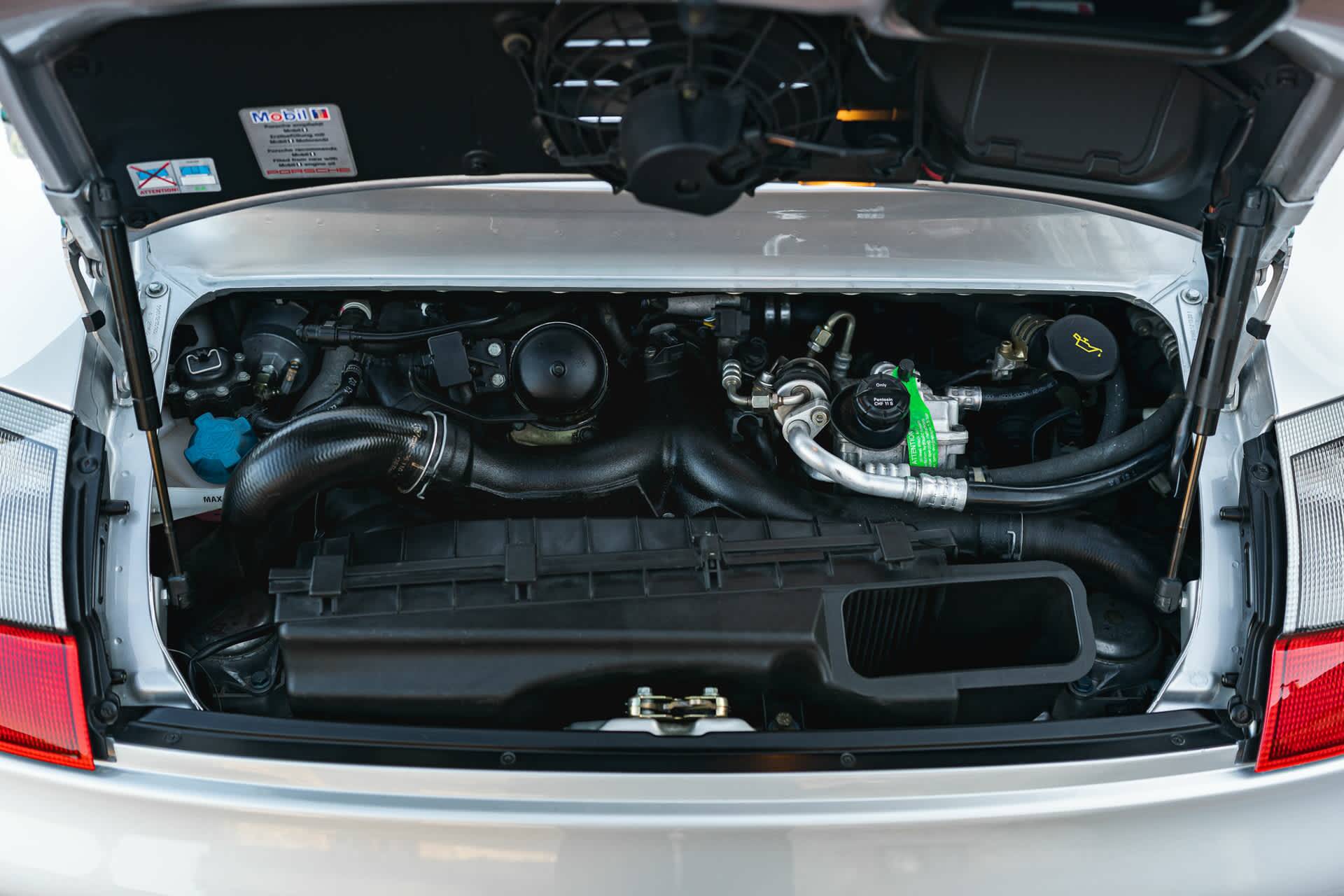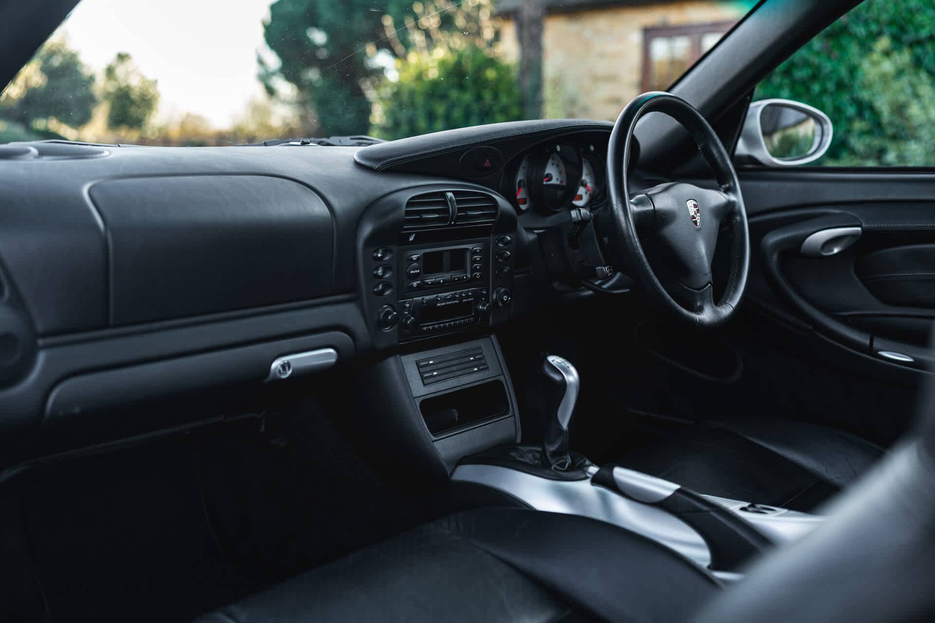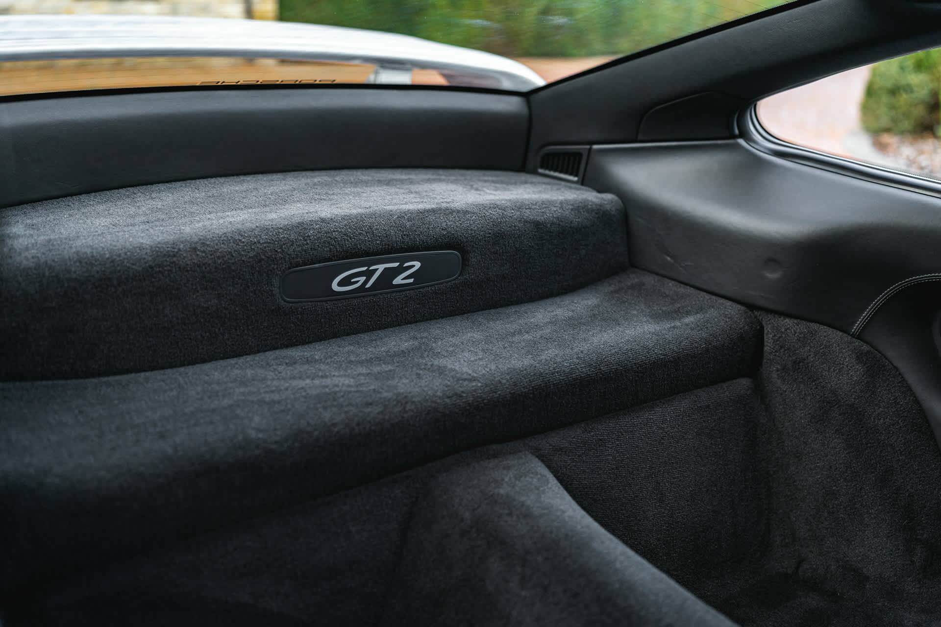 The right-hand-drive comfort-specification Porsche 911 996 GT2 we’re delighted to be offering rolled off the Zuffenhausen production line in May of 2003, finished in the classic colour combination of Arctic Silver over a Black leather interior. The first owner specified Alcantara headlining, electric adjustable sport seats, air-conditioning, a heated rear screen, and a colour-coded centre console. It’s worth noting that the GT2 was the first production Porsche fitted with carbon-ceramic brakes as standard.
