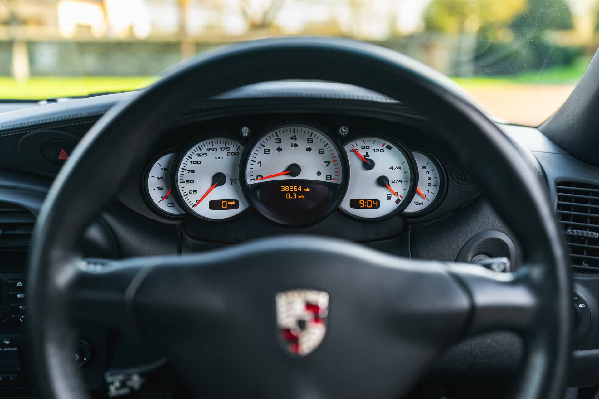 One of 32 GT2s sold new to the United Kingdom in 2003, it’s covered just 38,100 miles and always been maintained by Official Porsche Service Centres. You can find the complete maintenance history listed below, the most recent entry for which was a major service at Porsche Service Centre Brooklands in June of 2025. This service included the replacement of the turbo boost actuator.