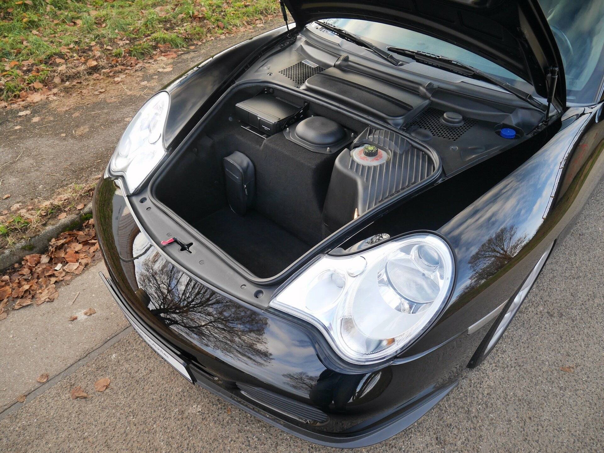 Dieser tiefschwarze Porsche 996 Turbo mit originaler Werks-Leistungssteigerung auf 450 PS präsentiert sich in einem erstaunlich frischen, unverbrauchten Gesamtzustand.