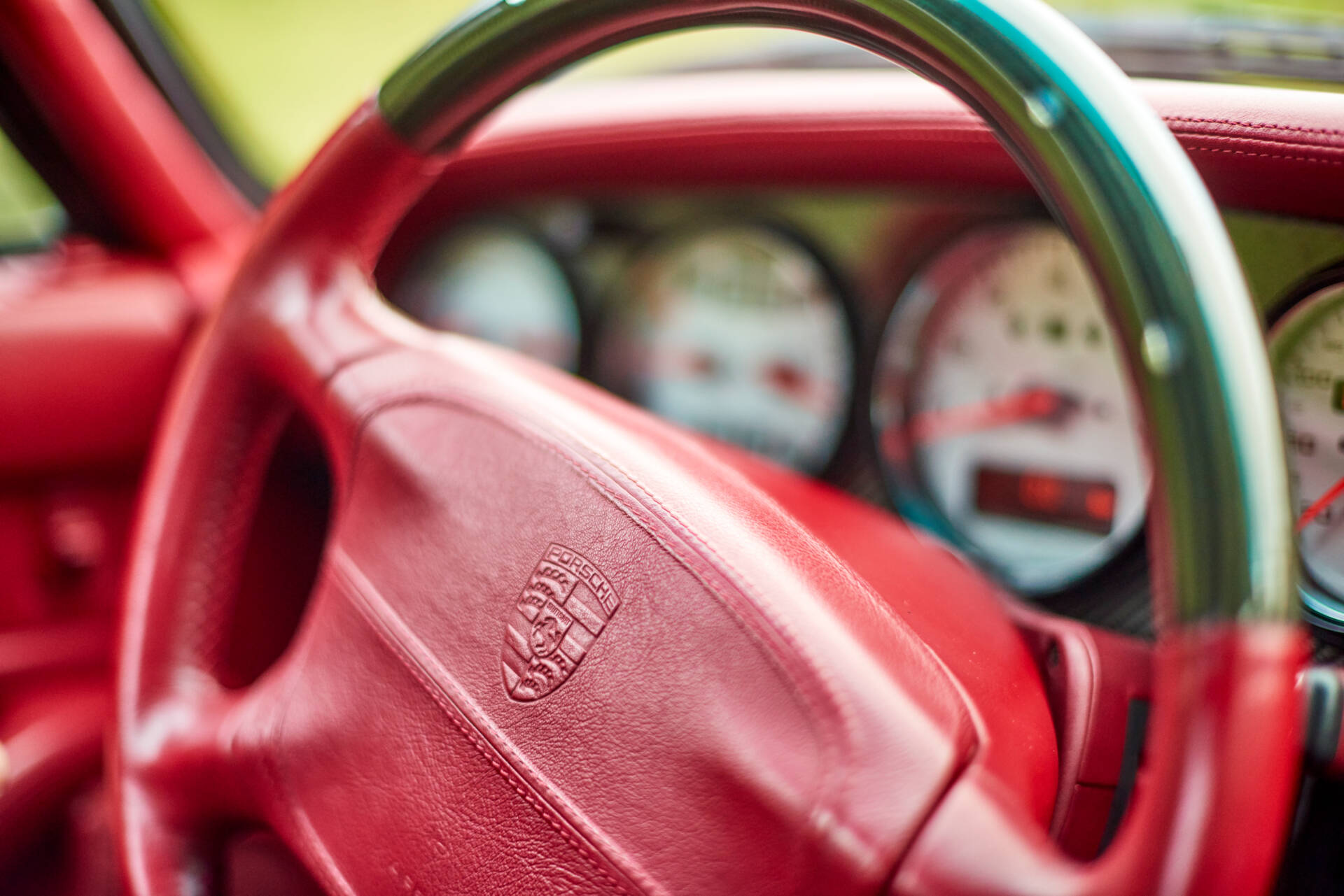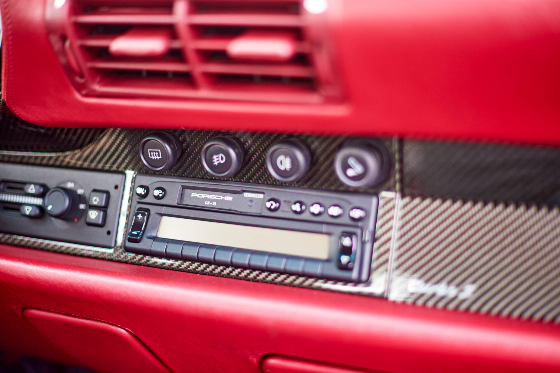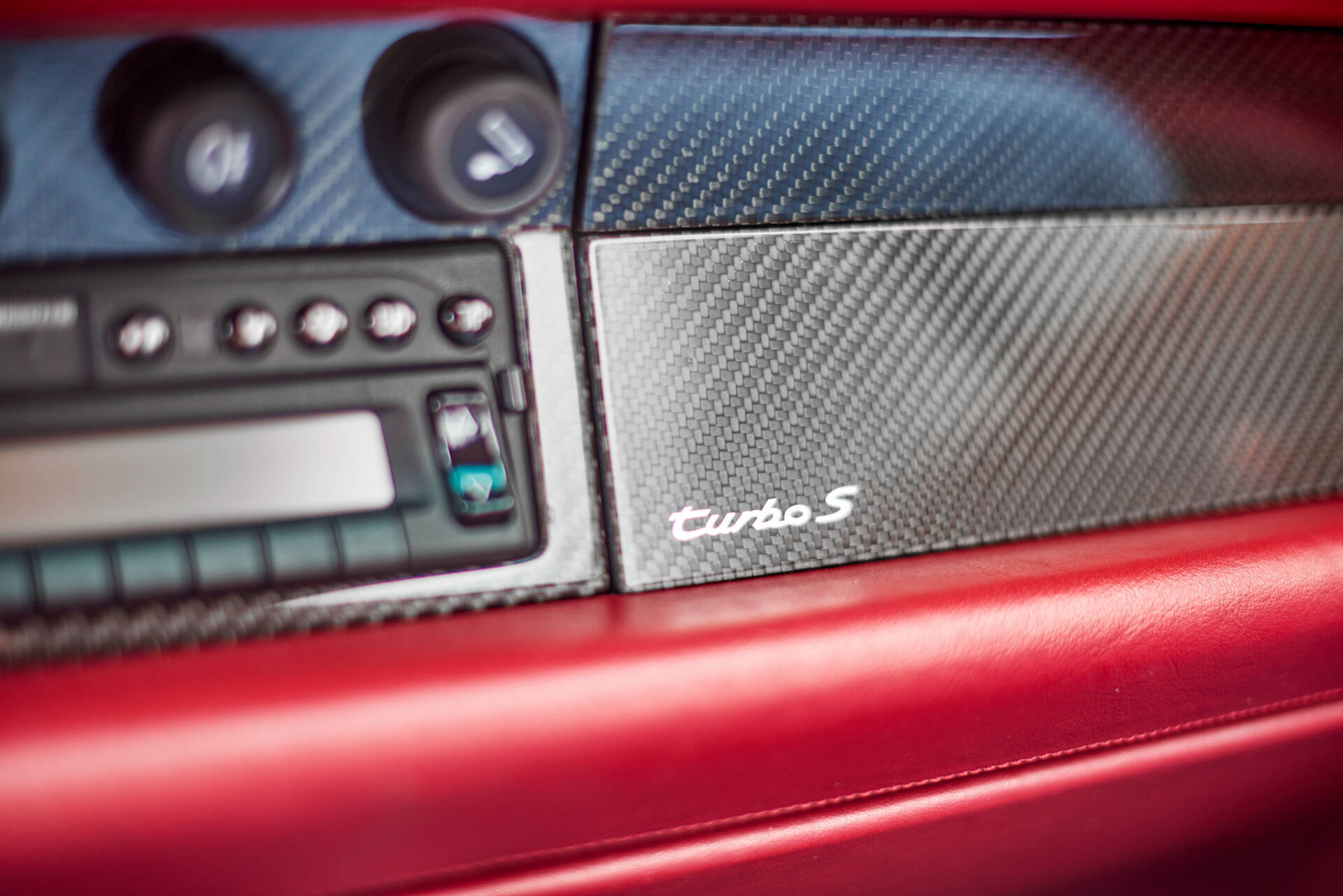 Anschließend wurde der 993 nach Belgien verkauft und lief dort bis ins Jahr 2012 die nächsten knapp 55.000 km. Der damalige Besitzer führte einige Arbeiten im Interieur durch und fügte dabei diverse Teile in Turbo S-Carbon-Optik im Fahrzeuginneren hinzu (z.B. Handschuhfach, Einstiegsleisten und Türgriffe). Auch das Lenkrad bekam eine zusätzliche Carbon-Komponente. Das originale Lenkrad ist aber ebenfalls noch vorhanden. Die Teile-Upgrades lassen sich jederzeit auch wieder zurück rüsten.