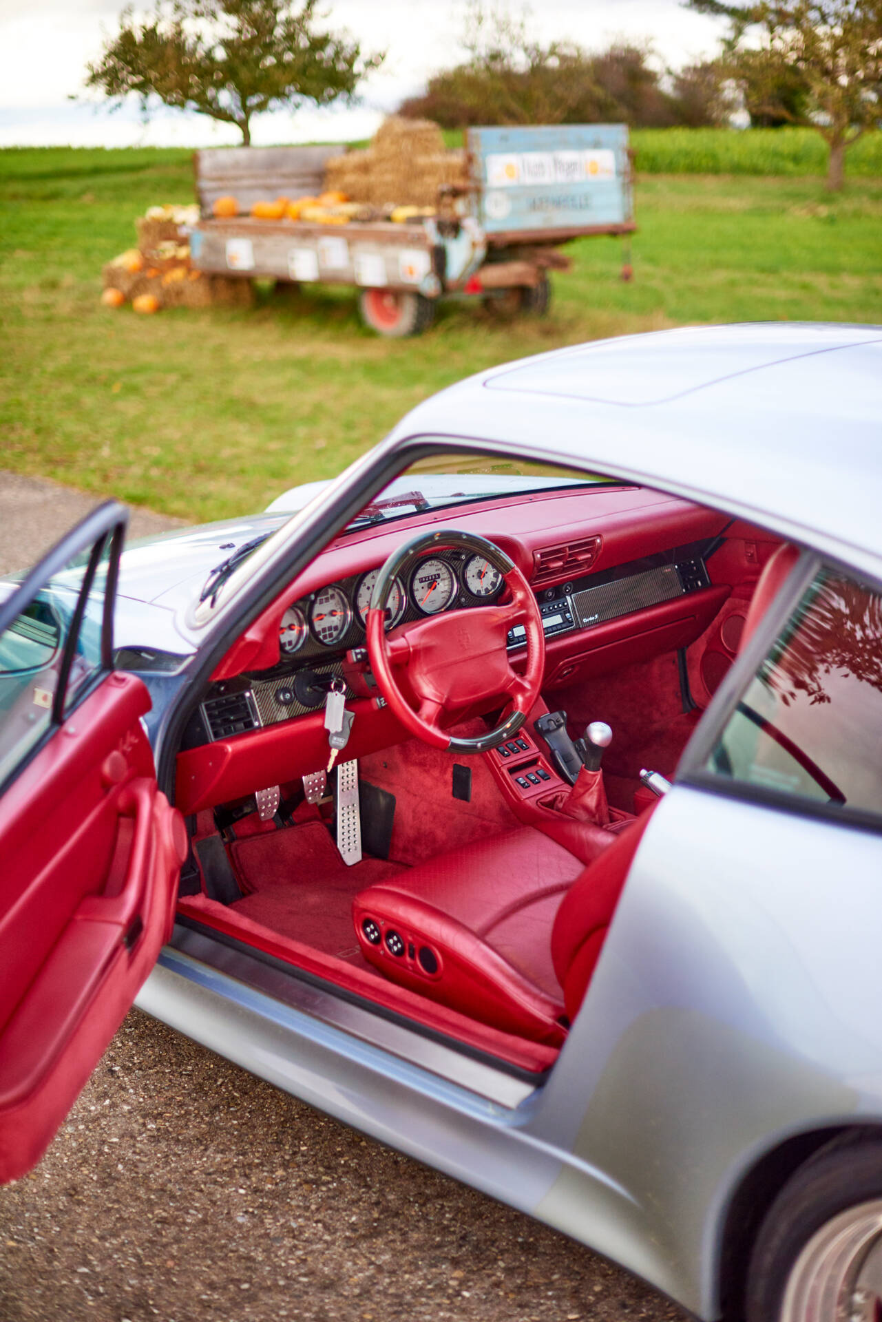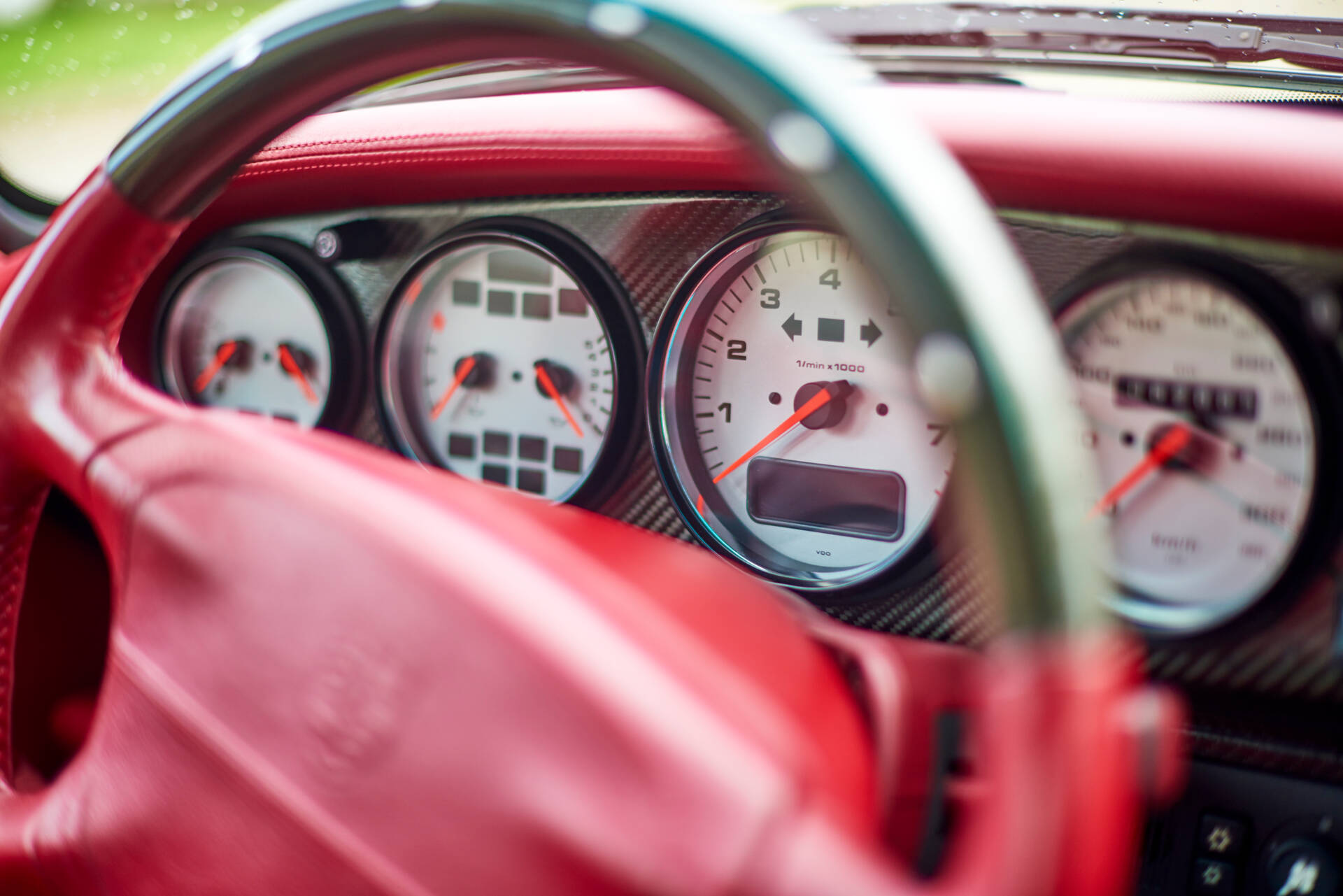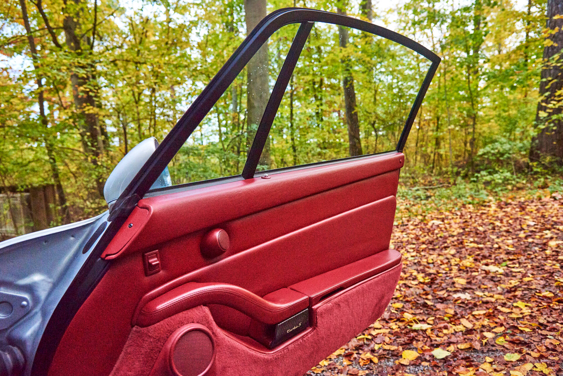 Anschließend wurde der 993 nach Belgien verkauft und lief dort bis ins Jahr 2012 die nächsten knapp 55.000 km. Der damalige Besitzer führte einige Arbeiten im Interieur durch und fügte dabei diverse Teile in Turbo S-Carbon-Optik im Fahrzeuginneren hinzu (z.B. Handschuhfach, Einstiegsleisten und Türgriffe). Auch das Lenkrad bekam eine zusätzliche Carbon-Komponente. Das originale Lenkrad ist aber ebenfalls noch vorhanden. Die Teile-Upgrades lassen sich jederzeit auch wieder zurück rüsten.
