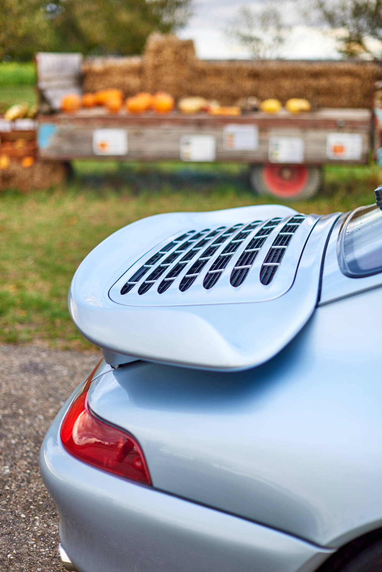 Für viele Enthusiasten ist der Porsche 993 der letzte „echte“ 911er, endete mit ihm doch die Ära der luftgekühlten Porsche. Dem Nachfolger des Porsche 964 wird damit eine große Bedeutung in der Porsche-Firmengeschichte zuteil. Der Porsche 993 wurde in den Versionen Carrera, Targa und Turbo angeboten. Letzterer kam im Jahr 1995 als Topmodell der Baureihe auf den Markt und war serienmäßig mit Allradantrieb ausgerüstet. Im Modelljahr 1997, aus welchem auch dieser 993 Turbo stammt, entstanden so insgesamt 1.775 Turbo-Fahrzeuge.